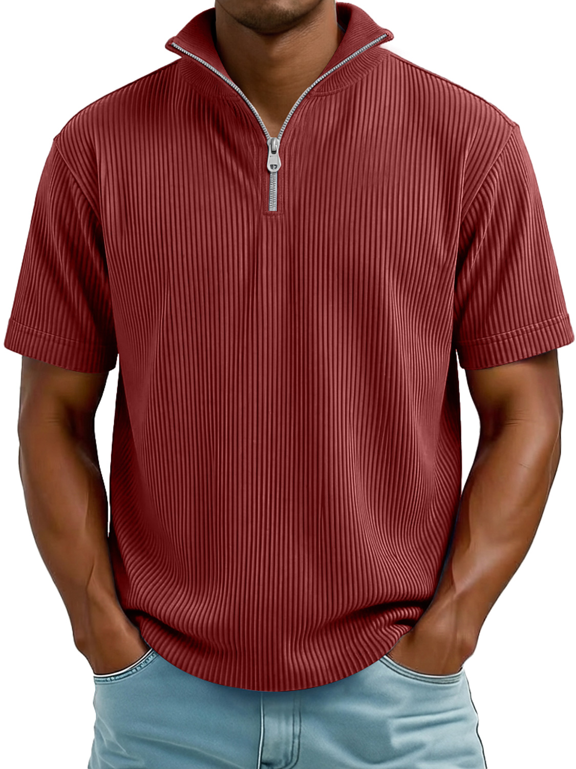 Men's Everyday Ribbed Stand-collar Zip-up Casual Short-sleeved T-shirt