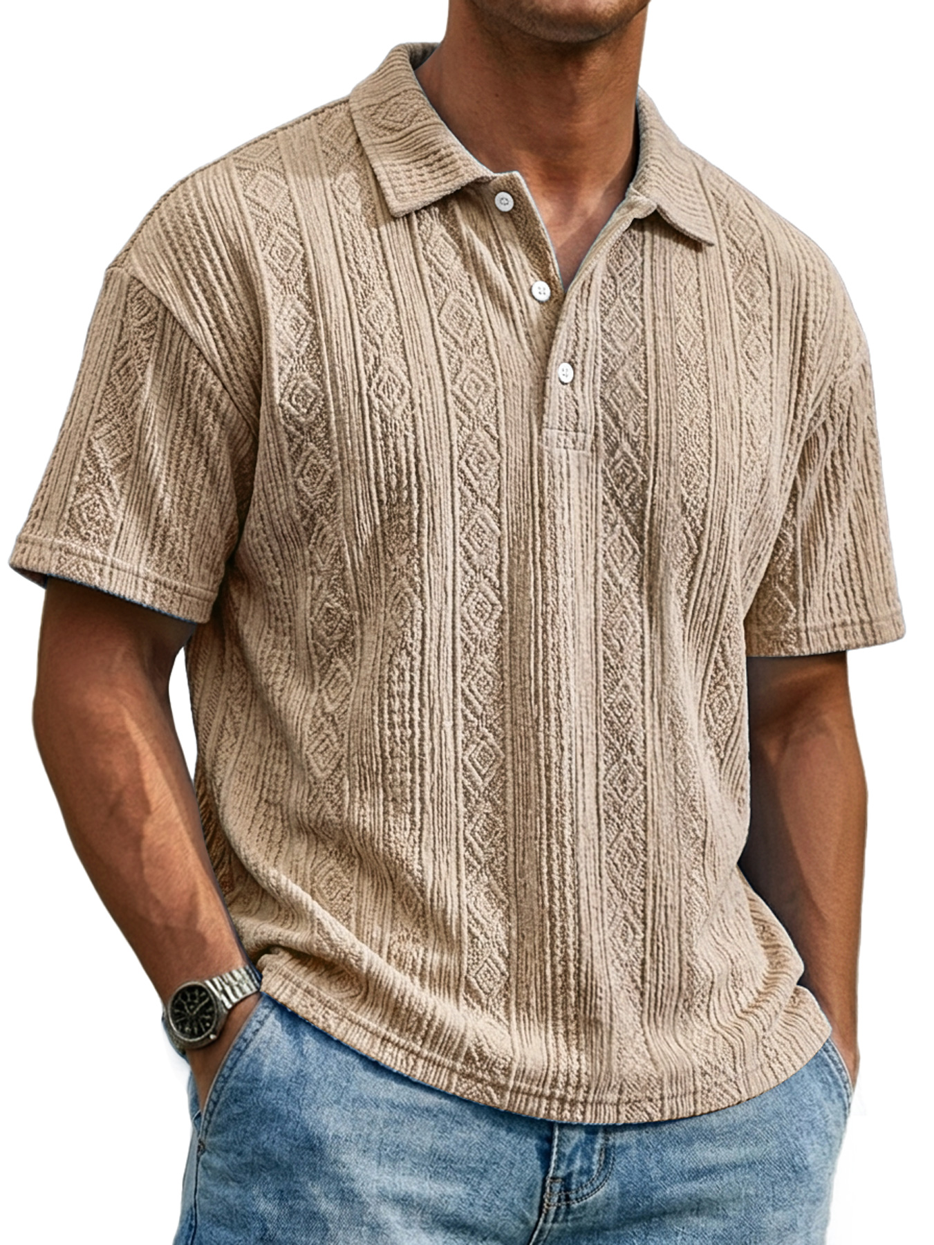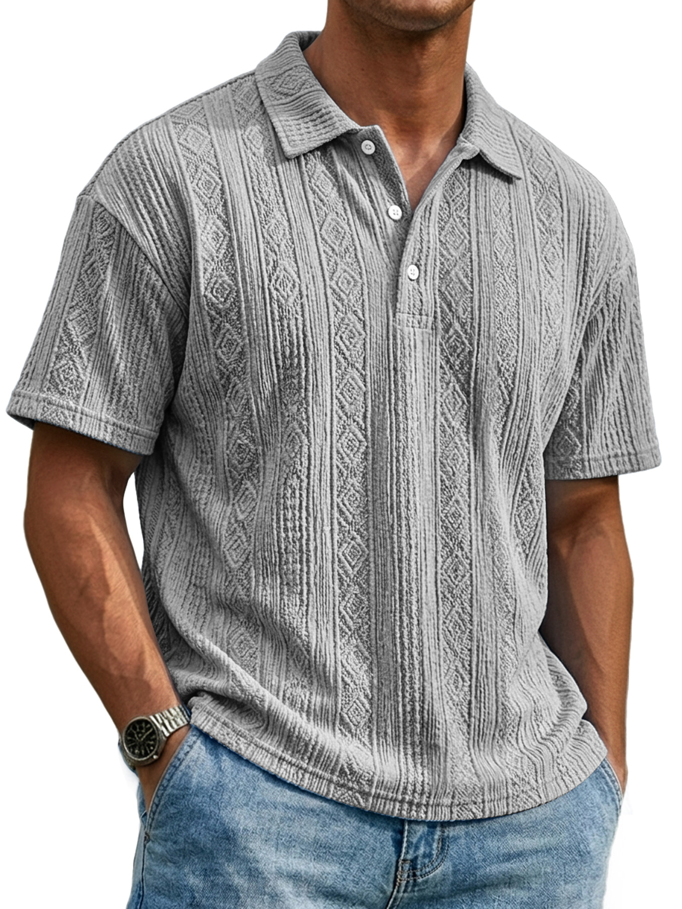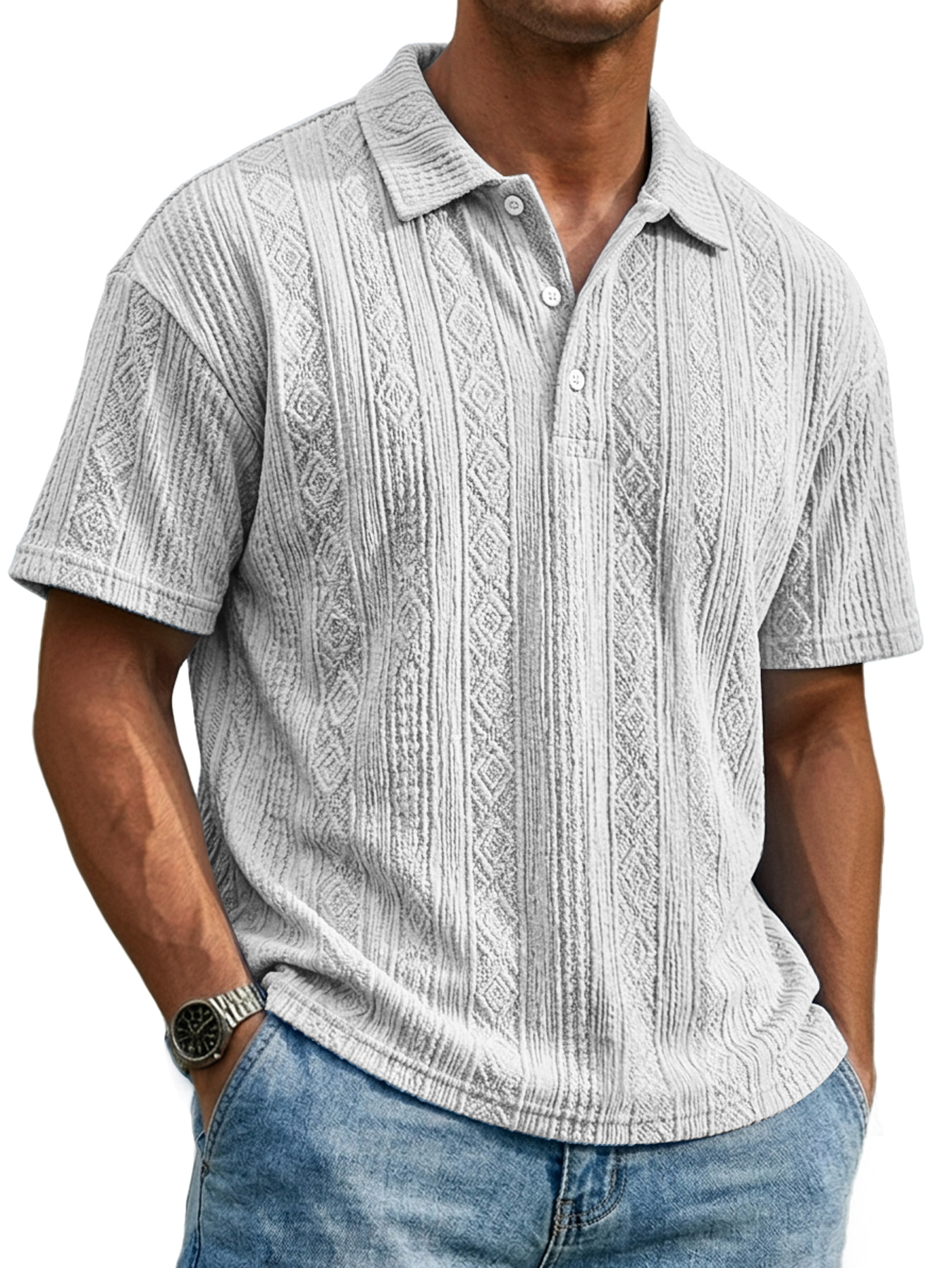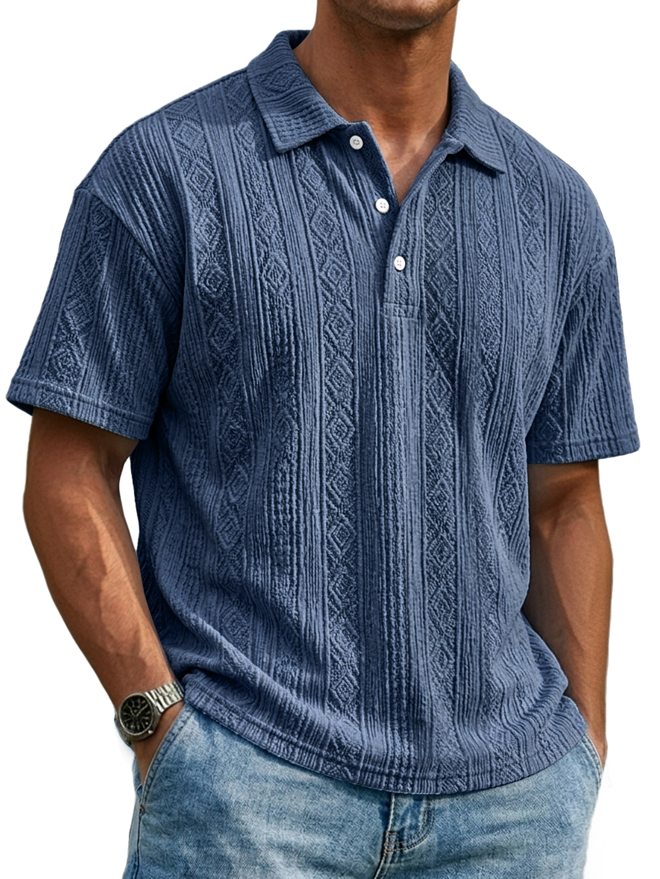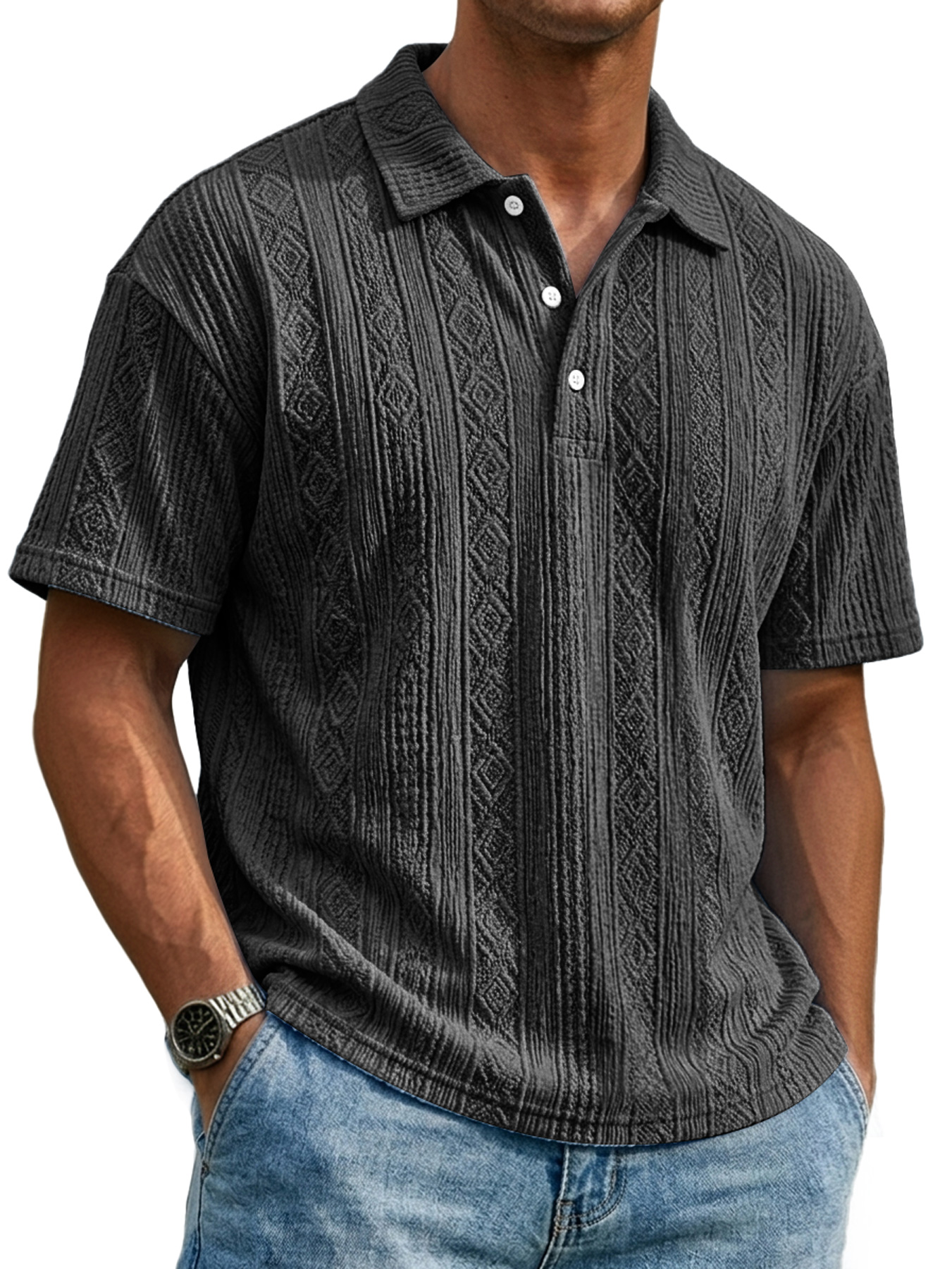 Men's Everyday Textured Collar Button-down Casual Short-sleeved Polo Shirt