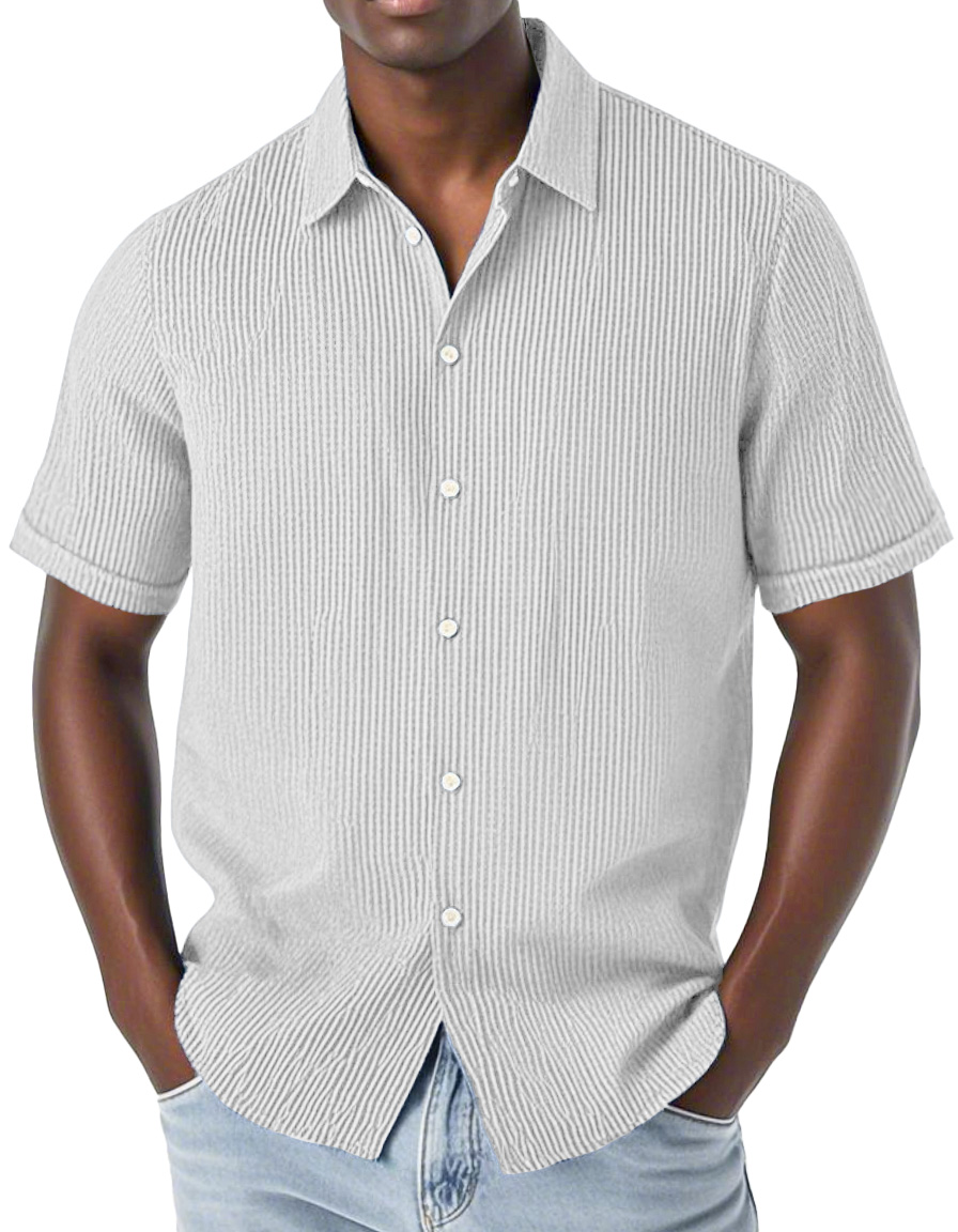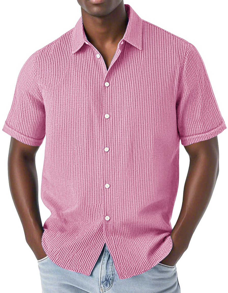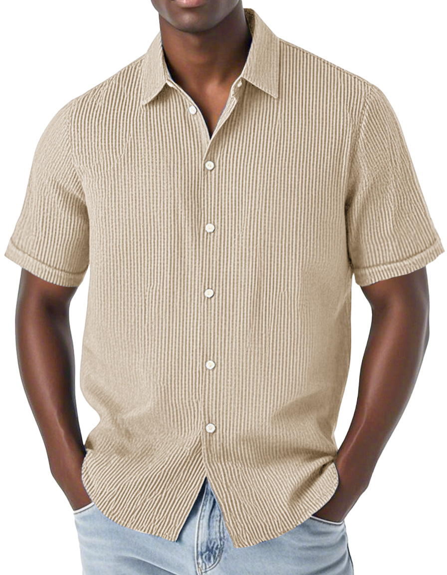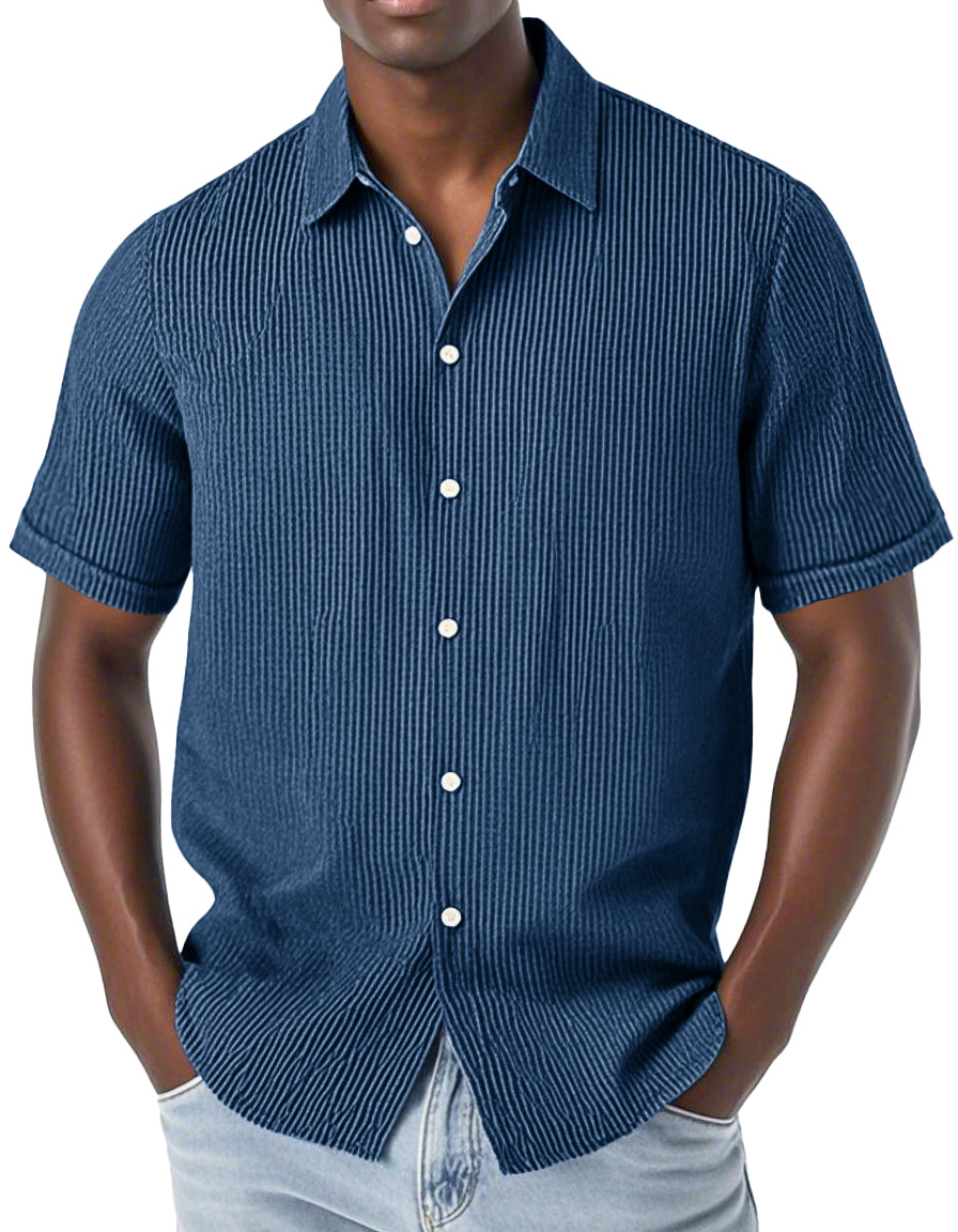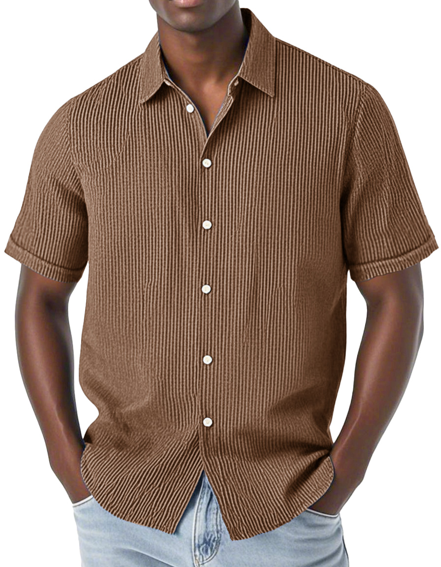 Men's Fashion Casual Corduroy Fabric Lapel Short Sleeve Shirt
