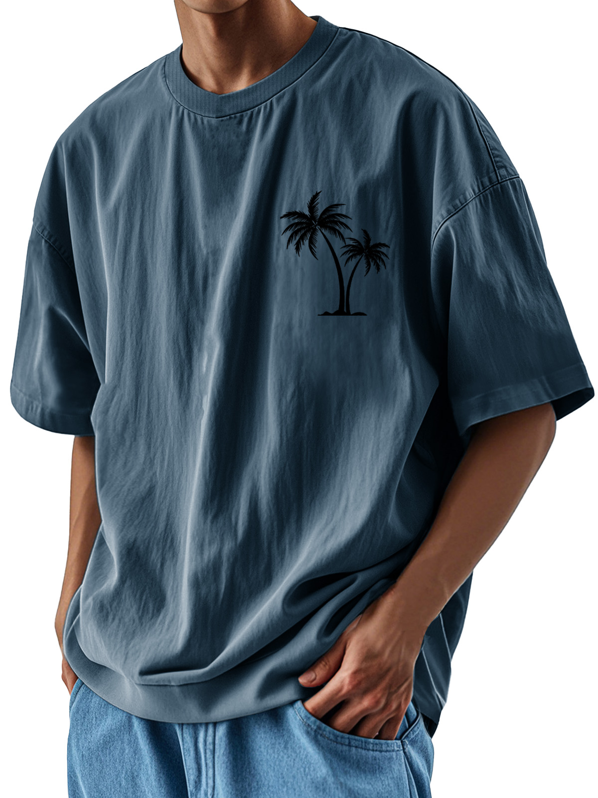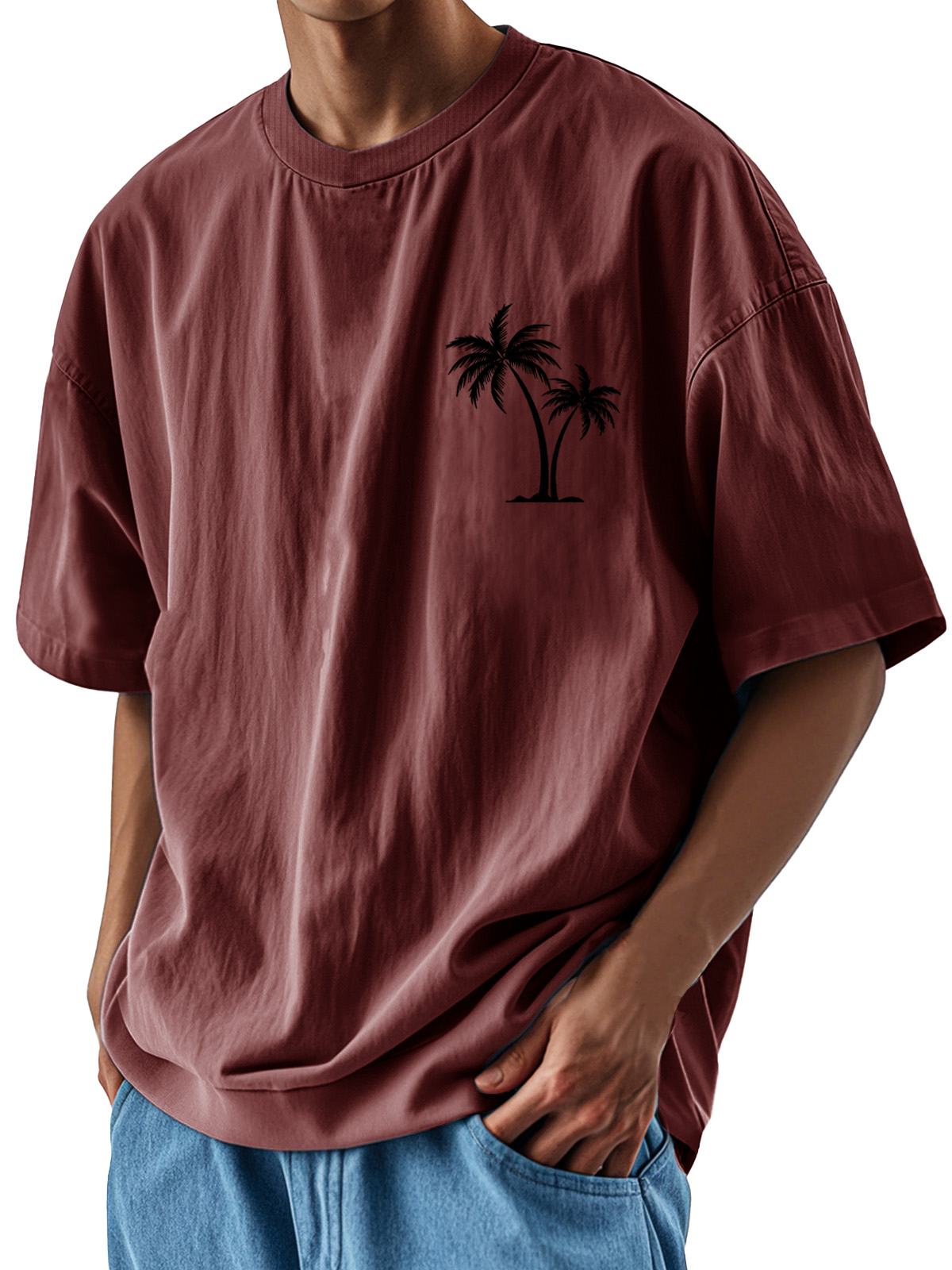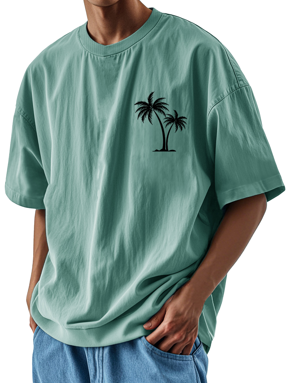 Men's Fashion Casual Loose Pocket Coconut Print Short Sleeve T-Shirt