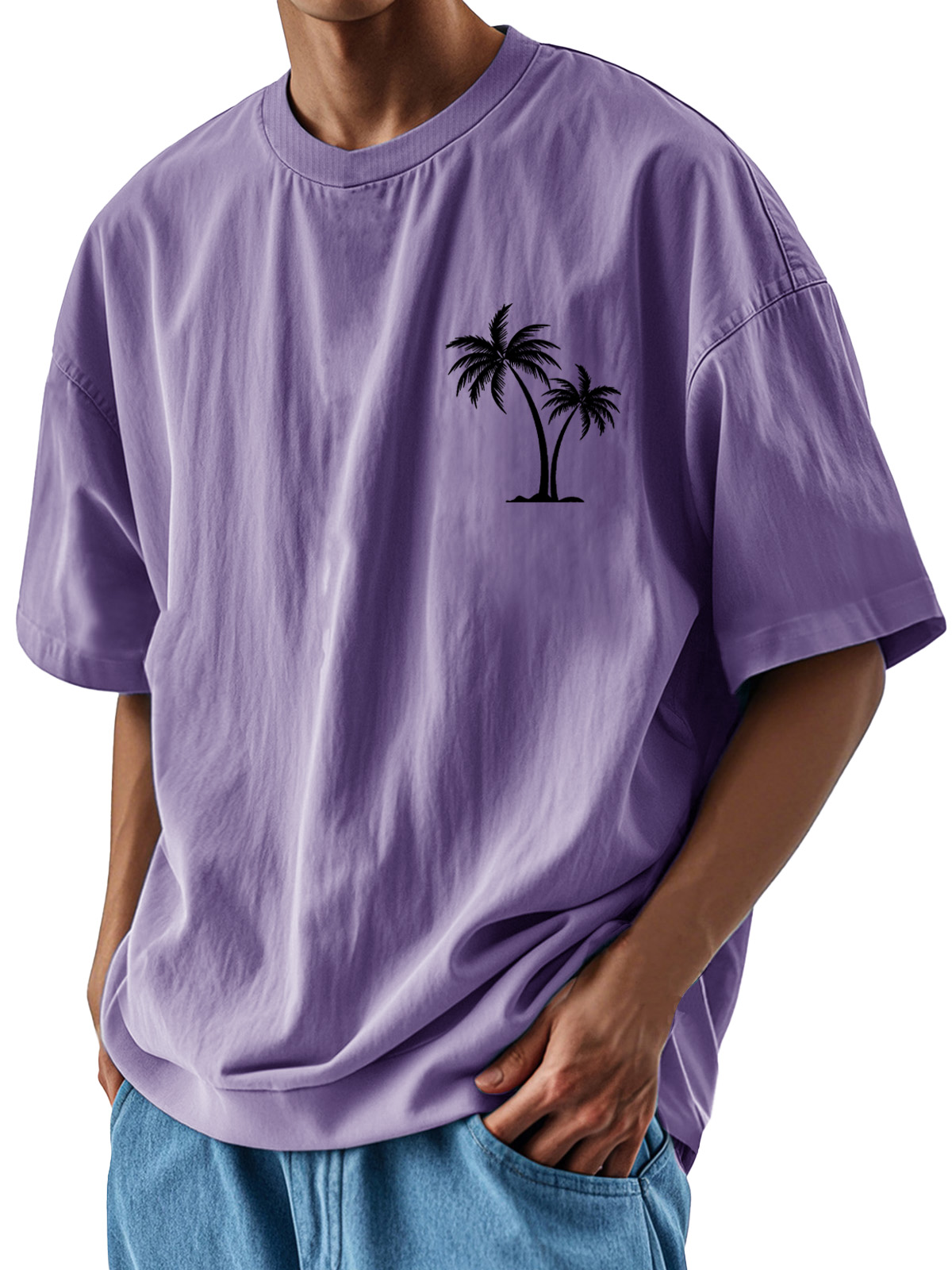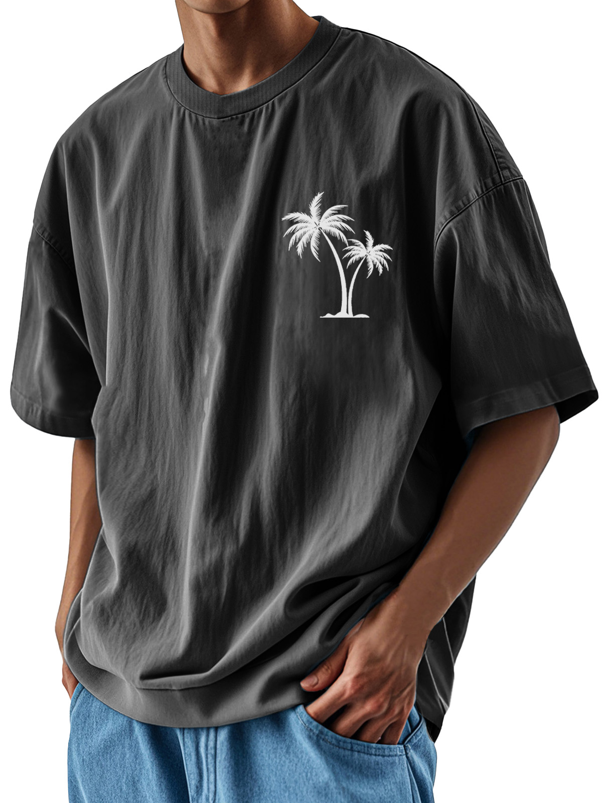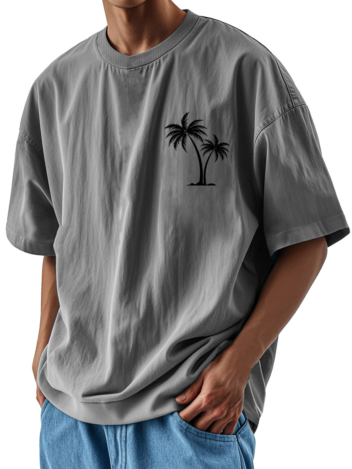 Men's Fashion Casual Loose Pocket Coconut Print Short Sleeve T-Shirt