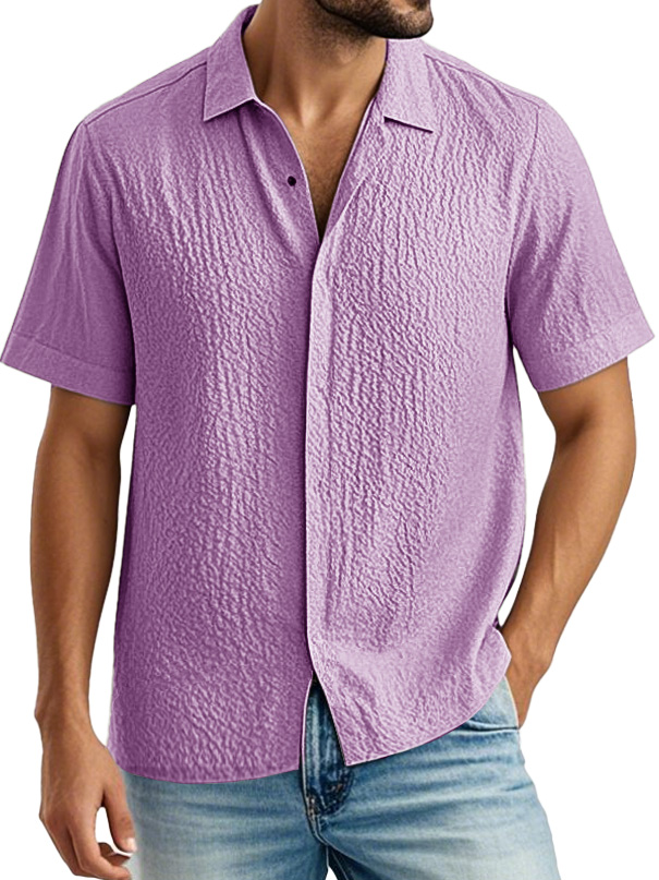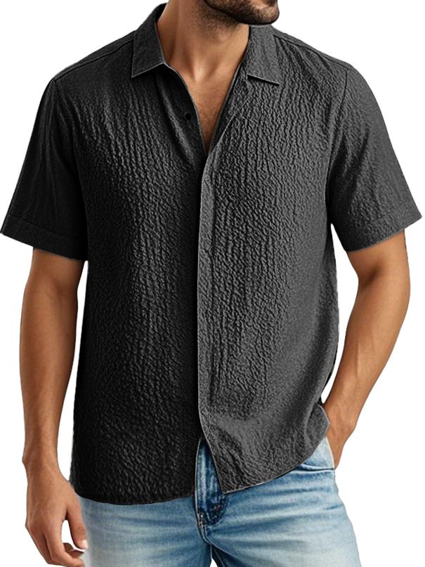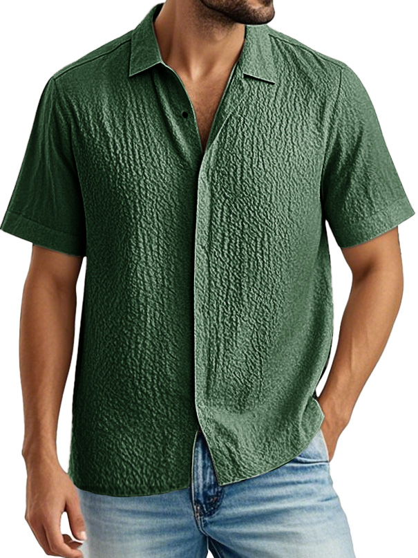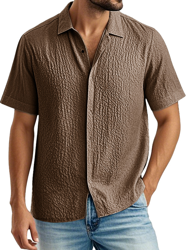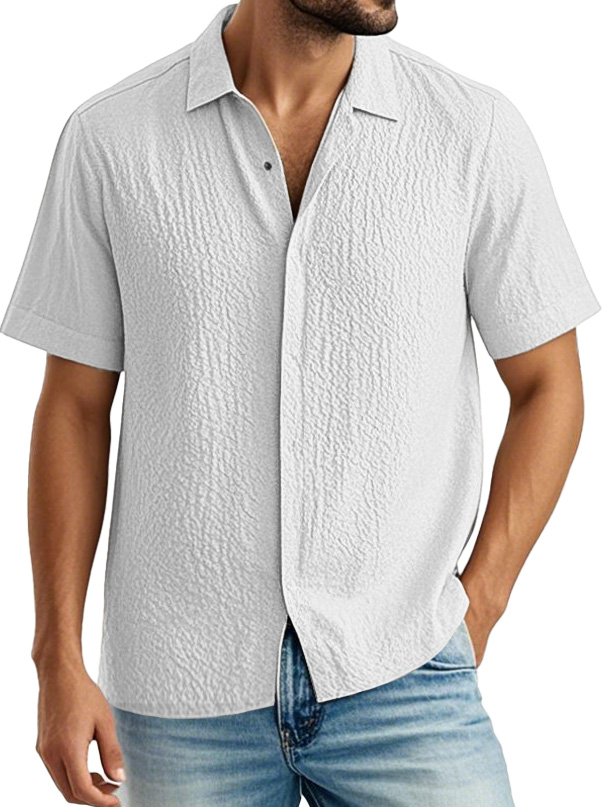 Men's Fashion Casual Pleated Fabric Lapel Short Sleeve Shirt