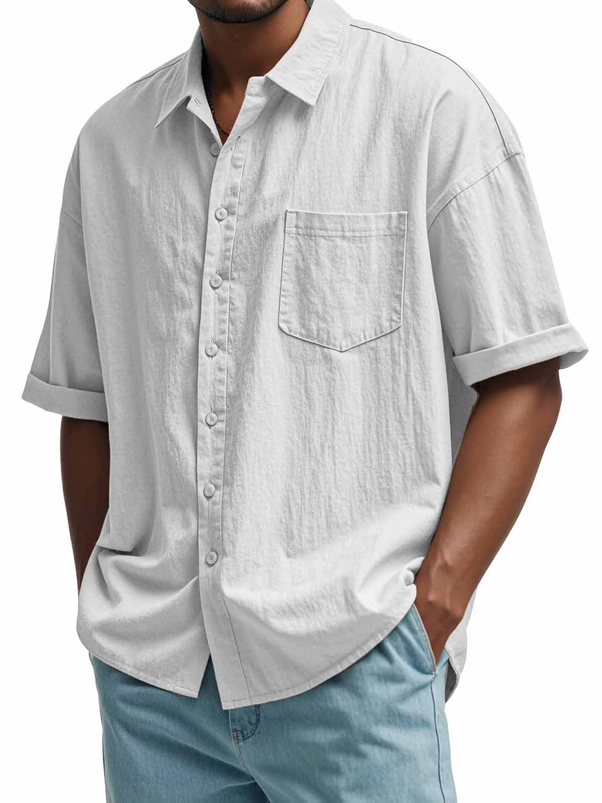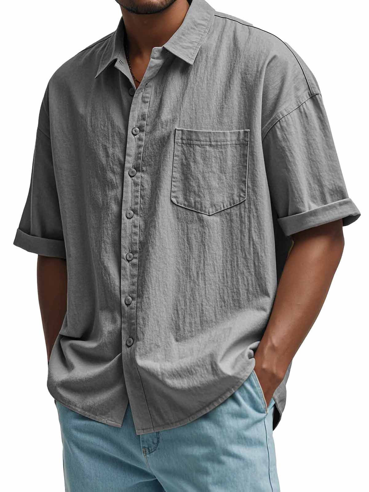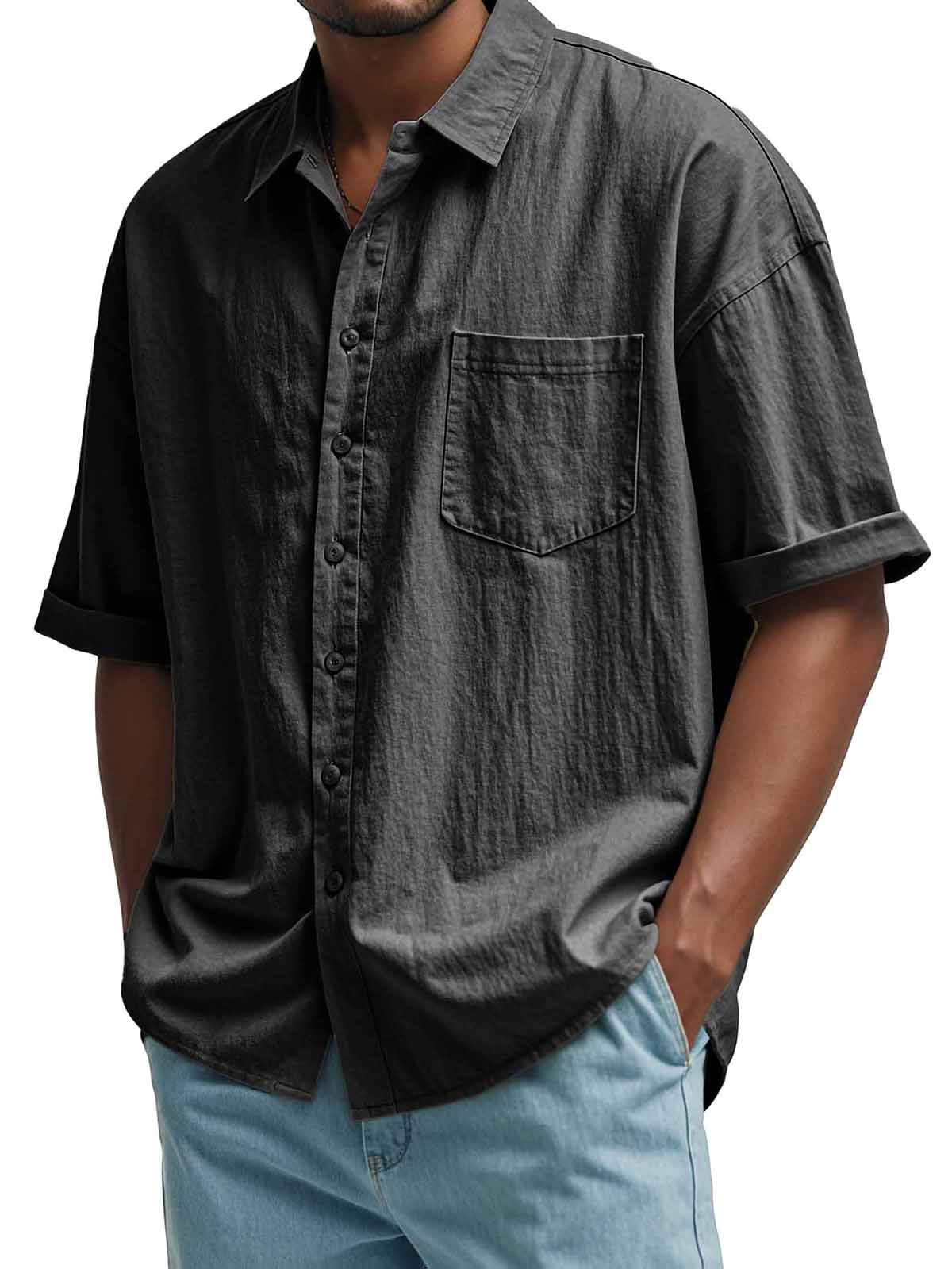 Men's Fashion Casual Pleated Fabric Short Sleeve Shirt