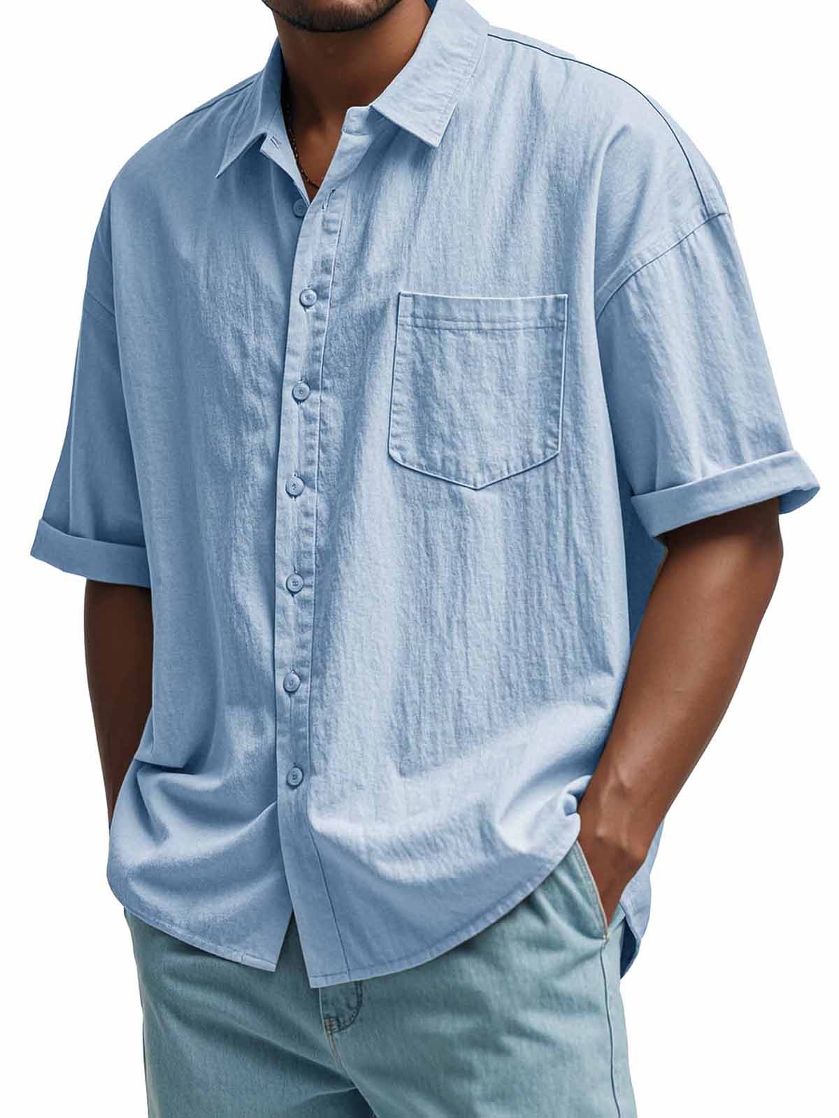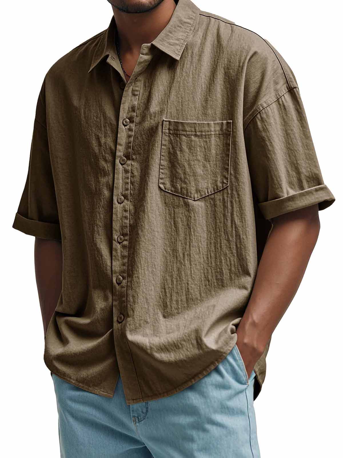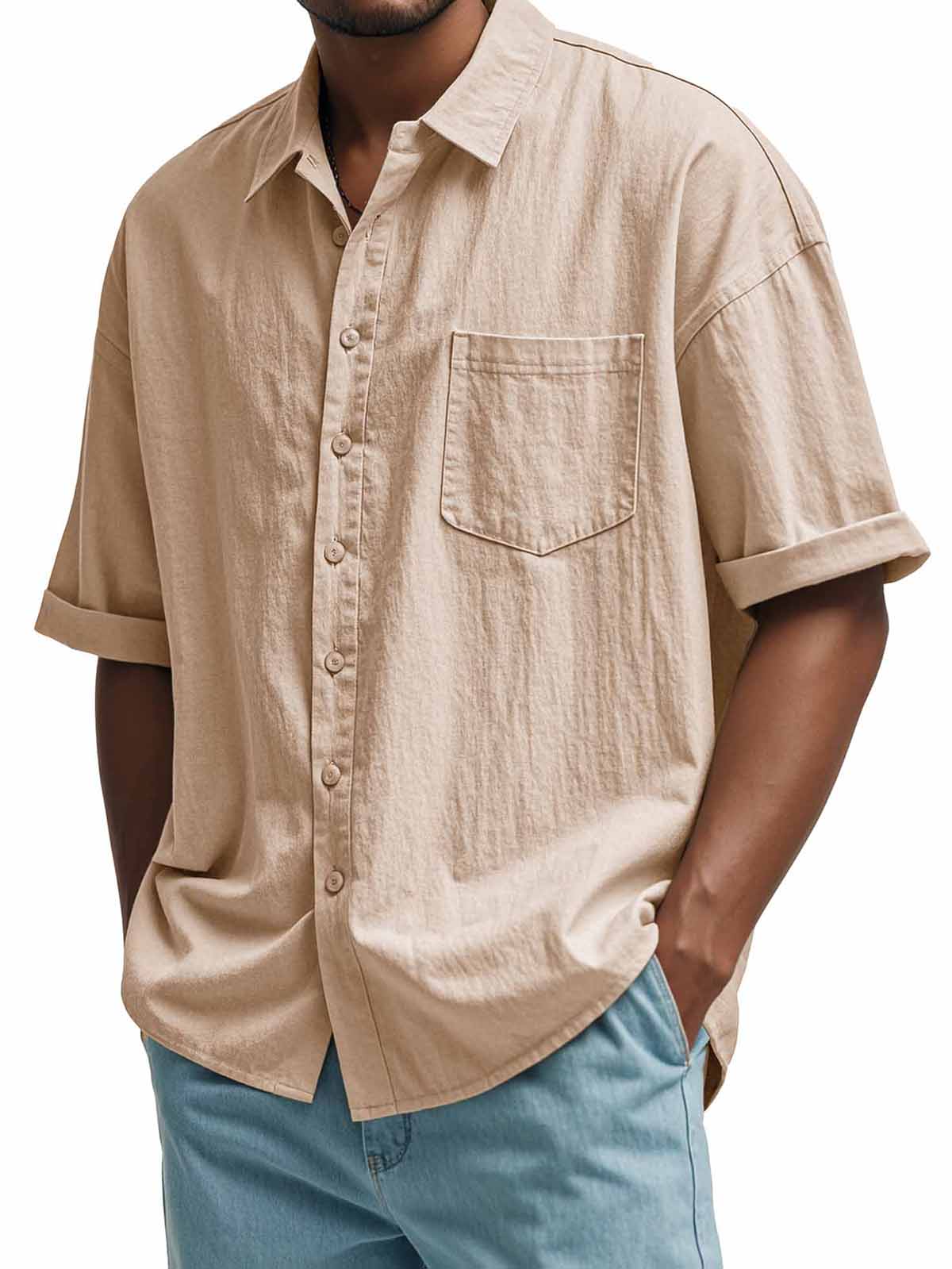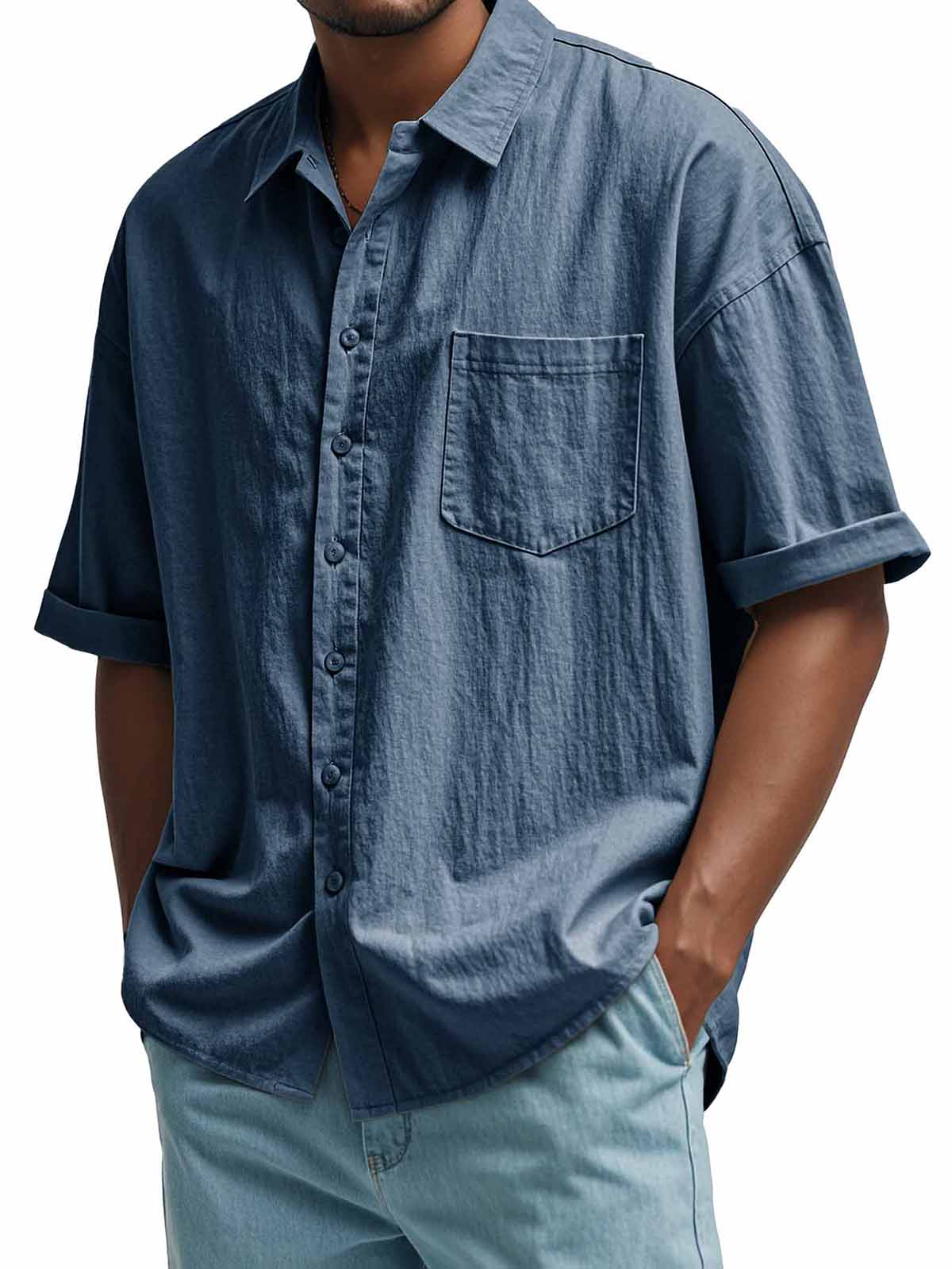 Men's Fashion Casual Pleated Fabric Short Sleeve Shirt