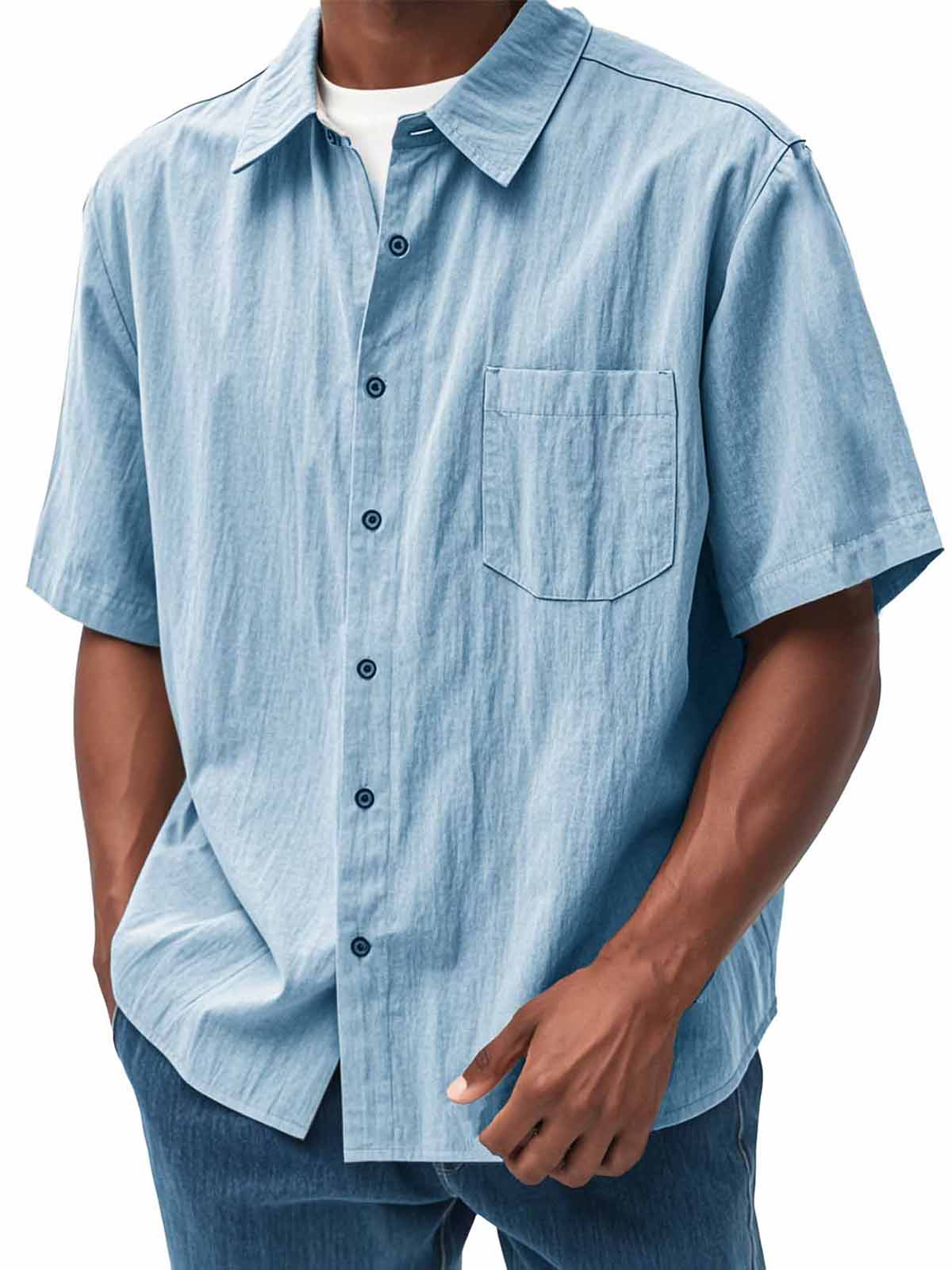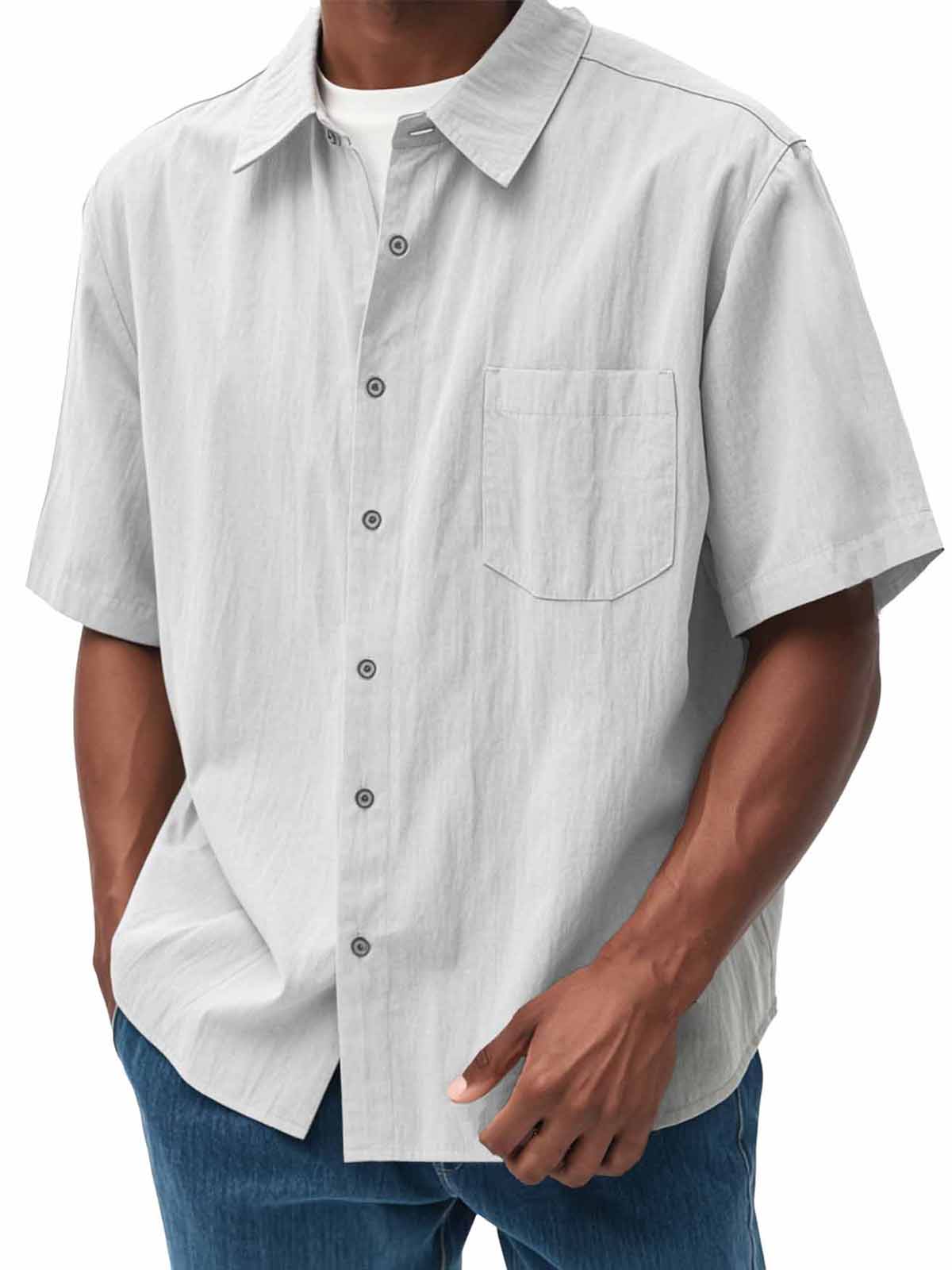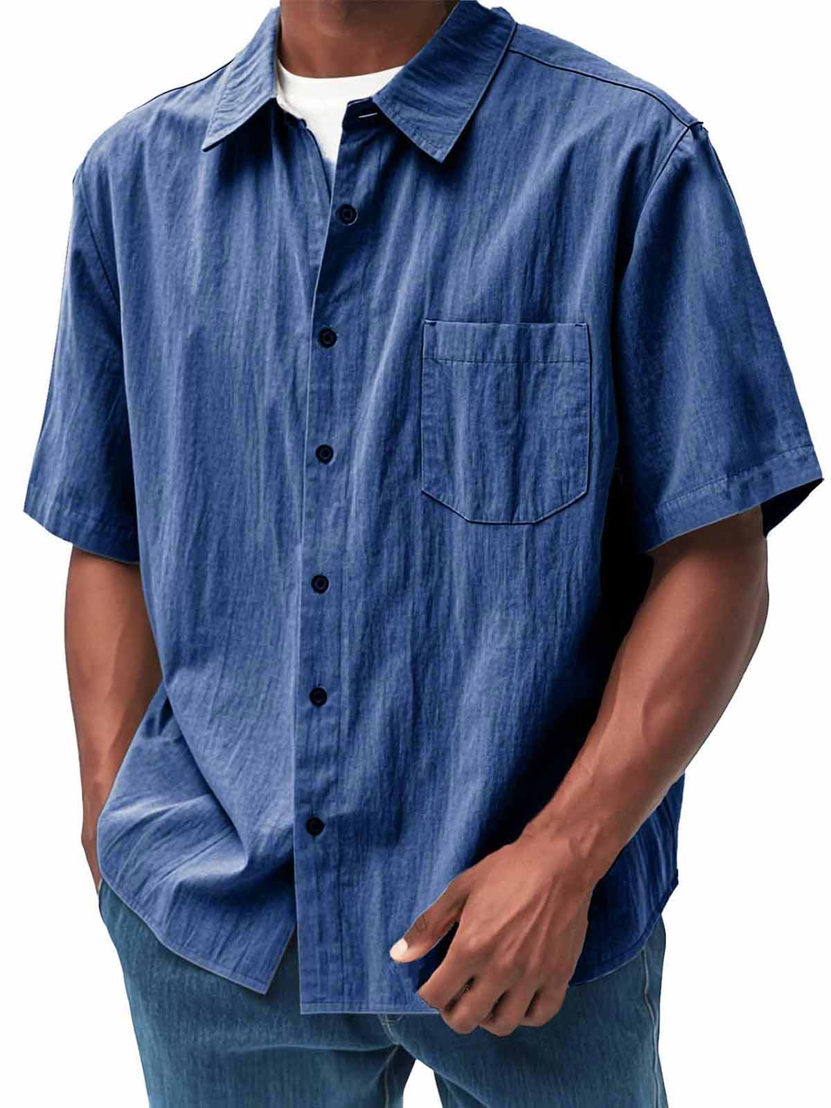 Men's Fashion Casual Pleated Fabric Short Sleeve Shirt