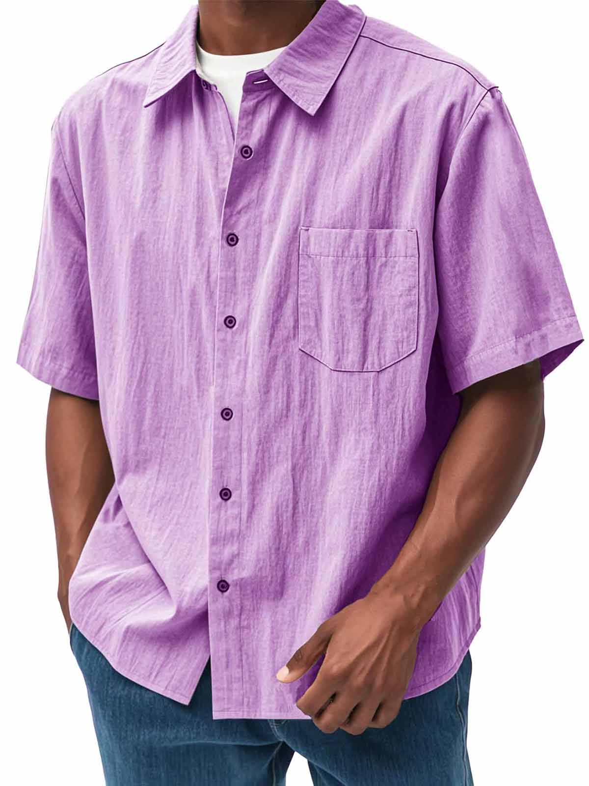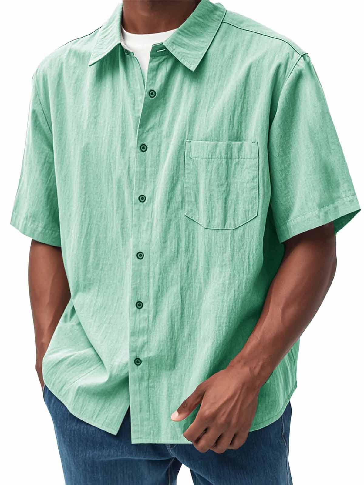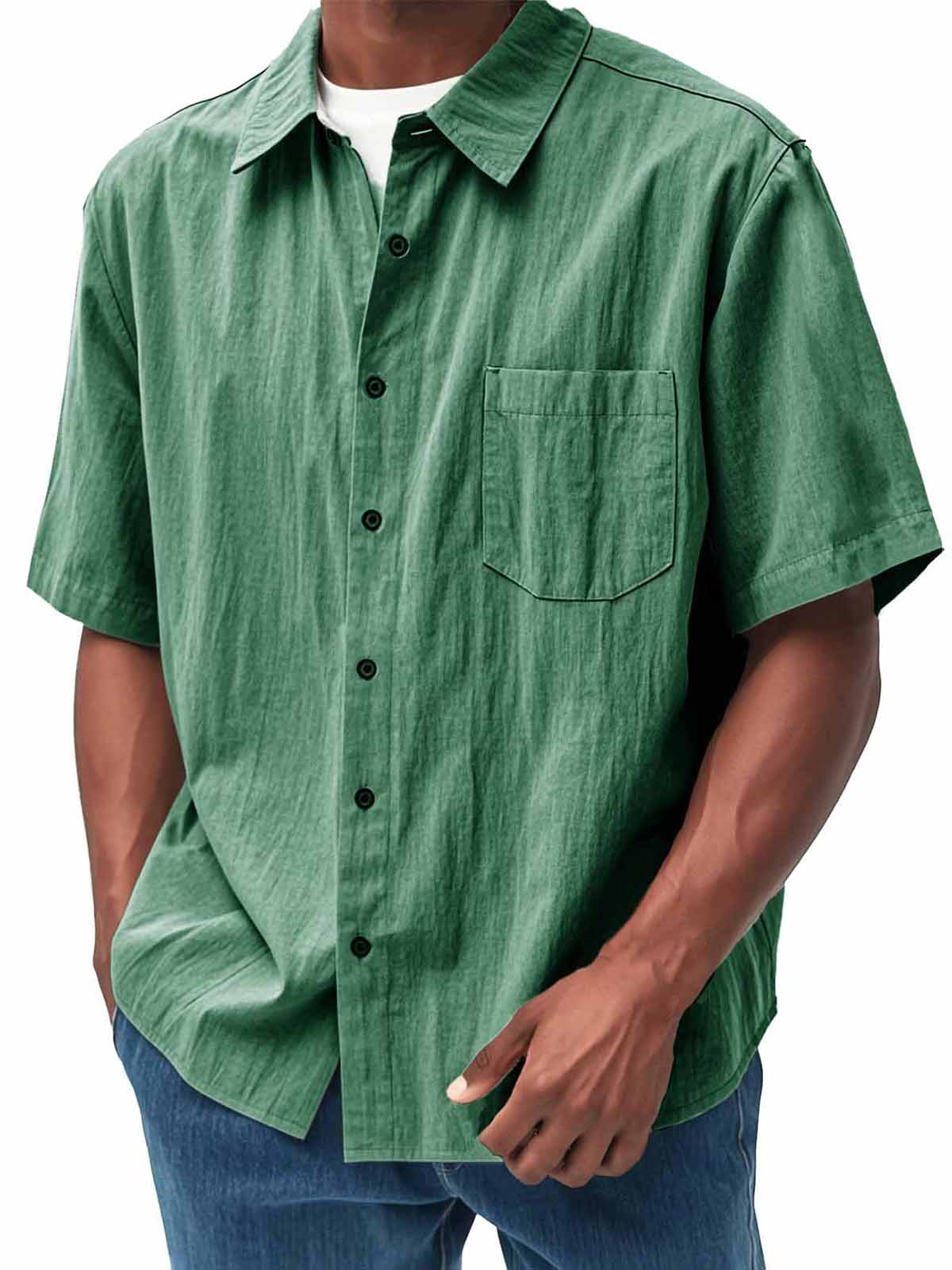 Men's Fashion Casual Pleated Fabric Short Sleeve Shirt
