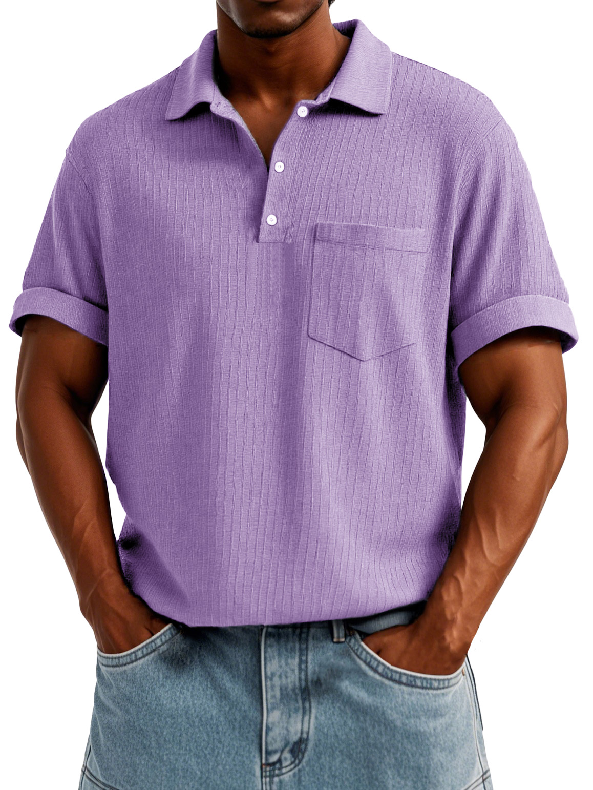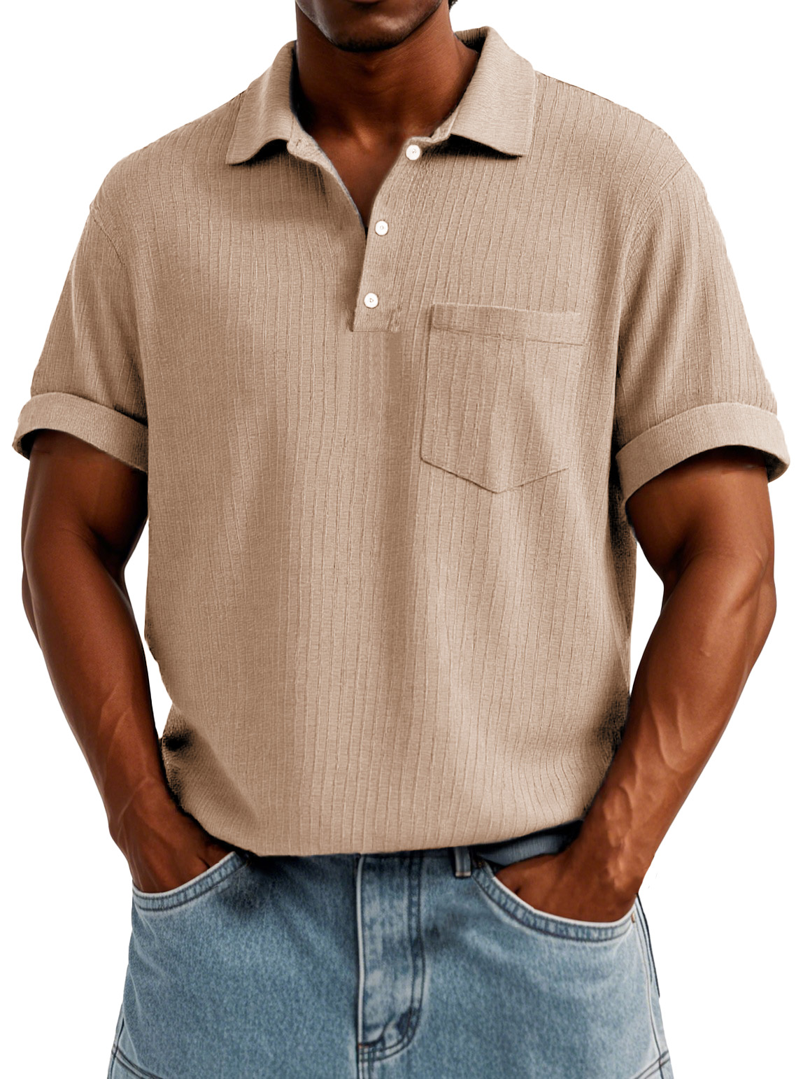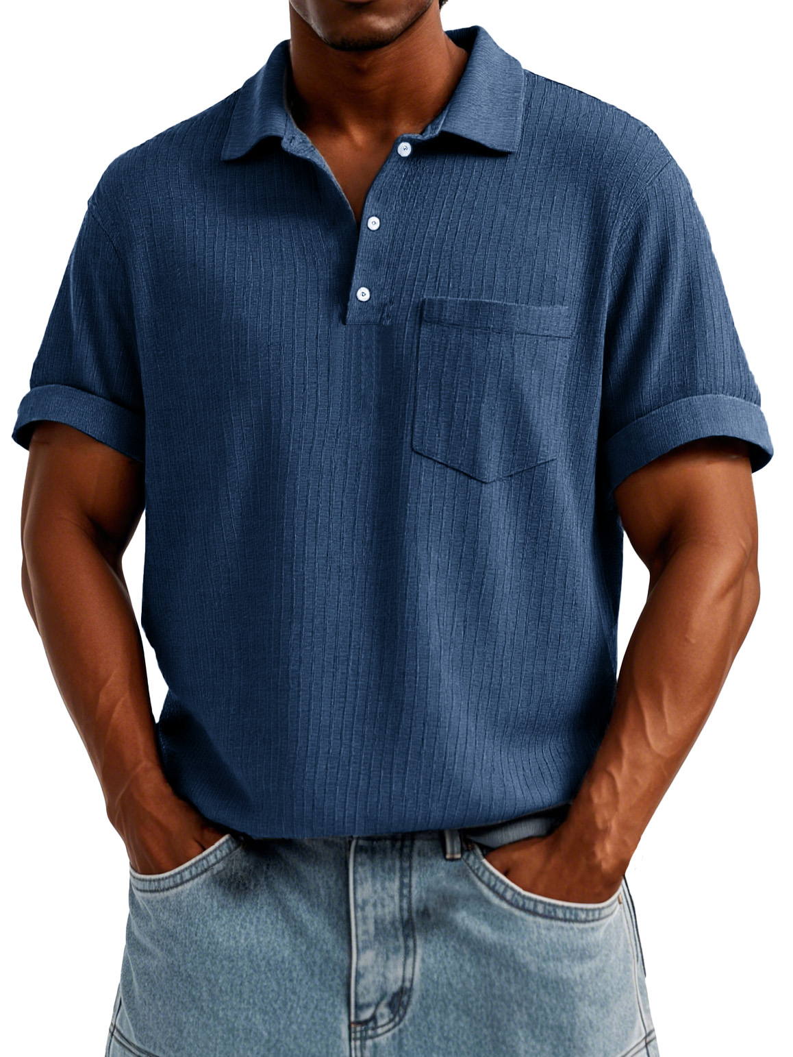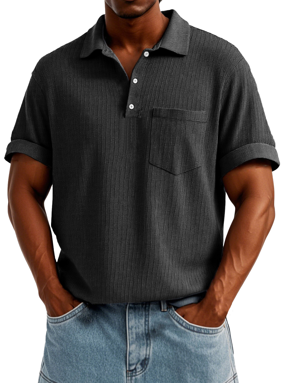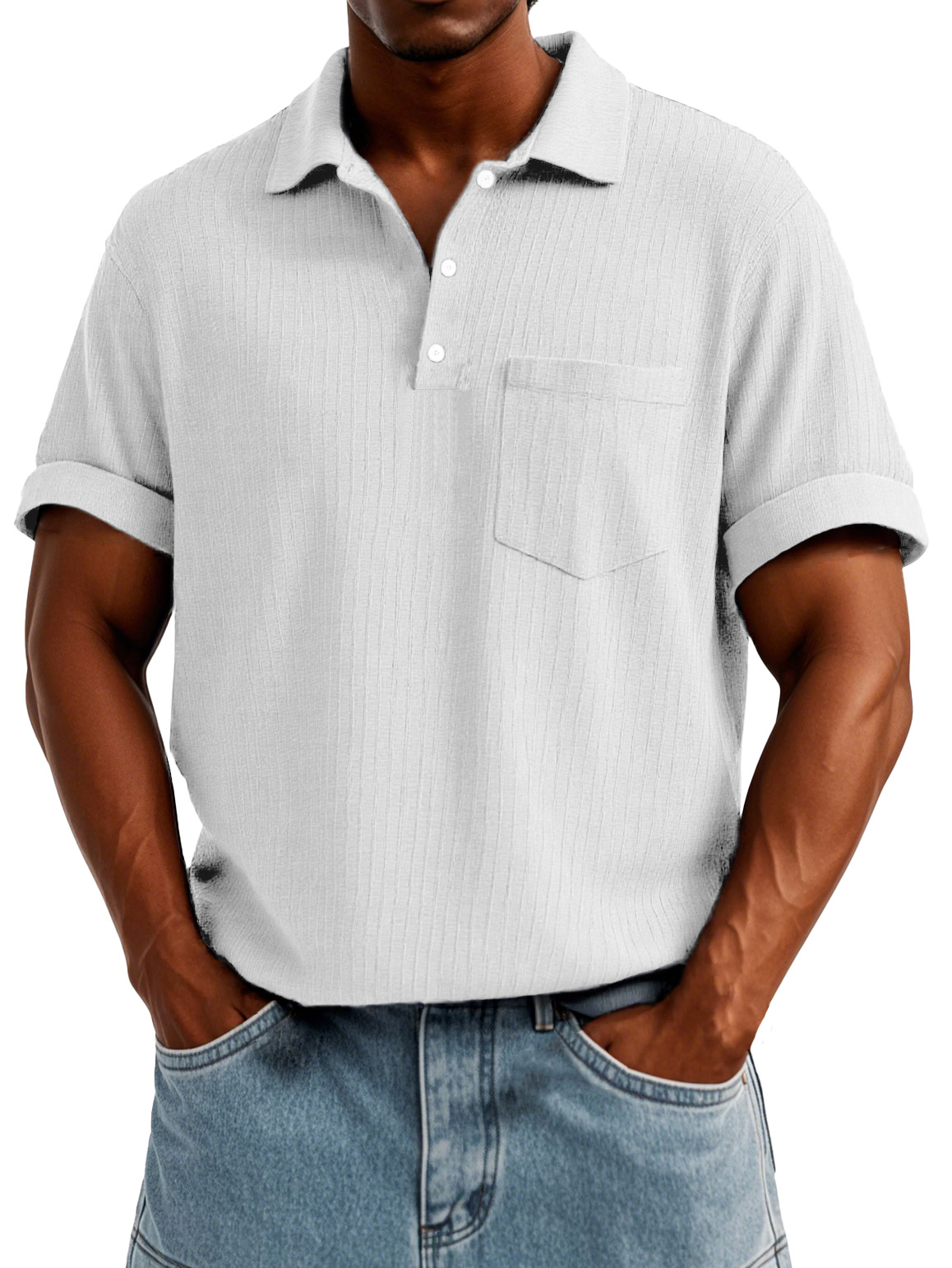 Men's Fashion Casual Short-sleeved Shirt With Pockets Made Of Ribbed Fabric