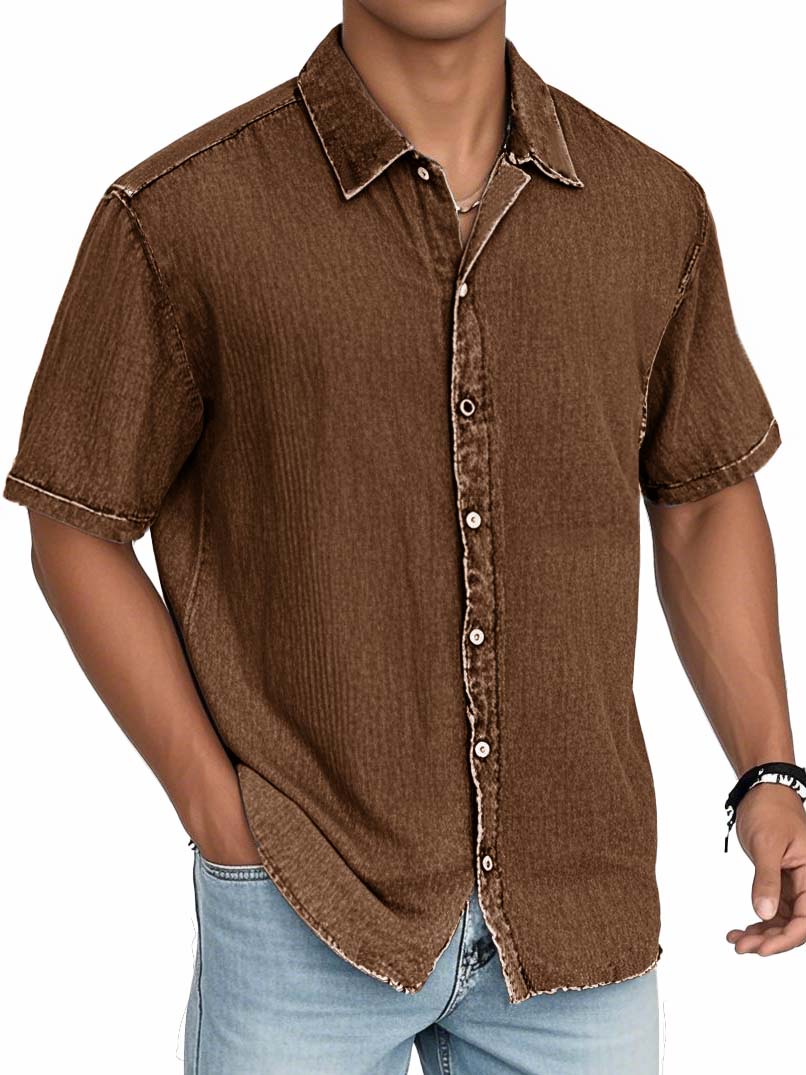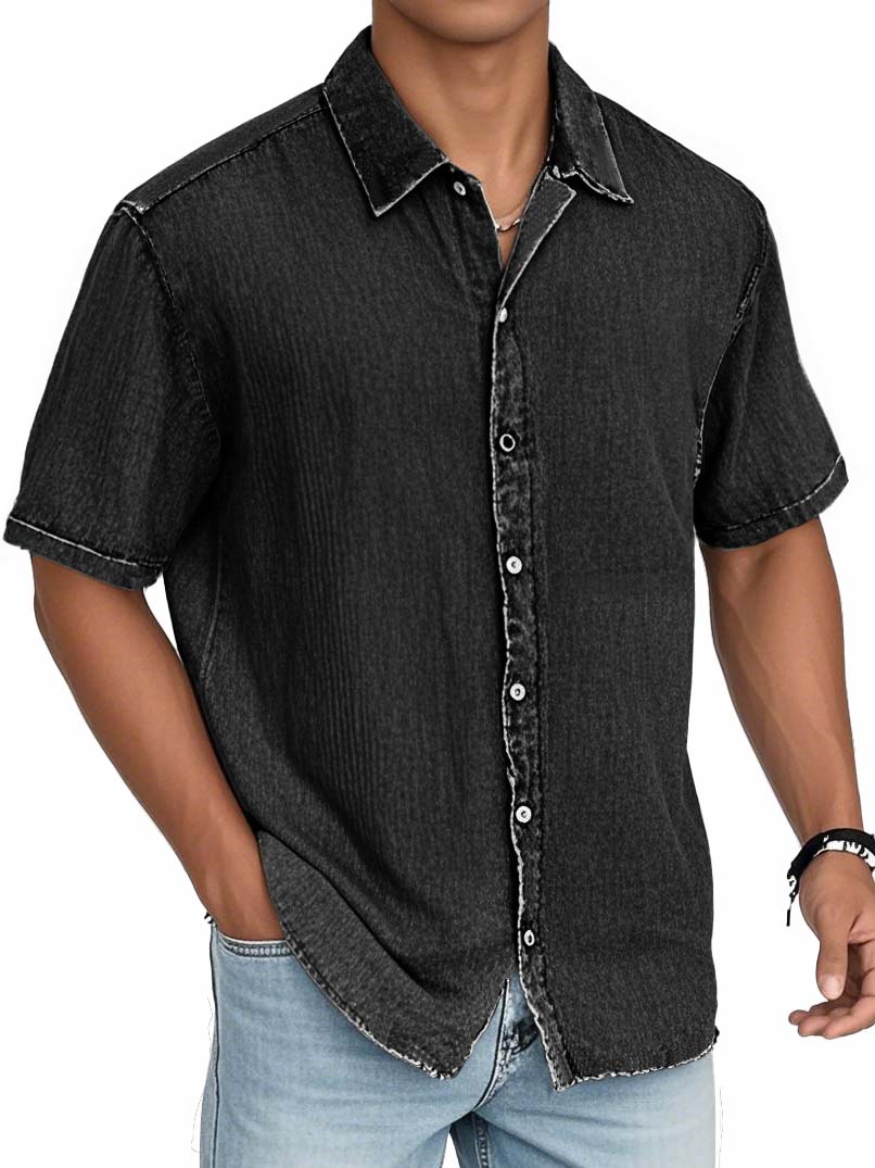 Men's Fashion Casual Textured Fabric Short-sleeved Shirt