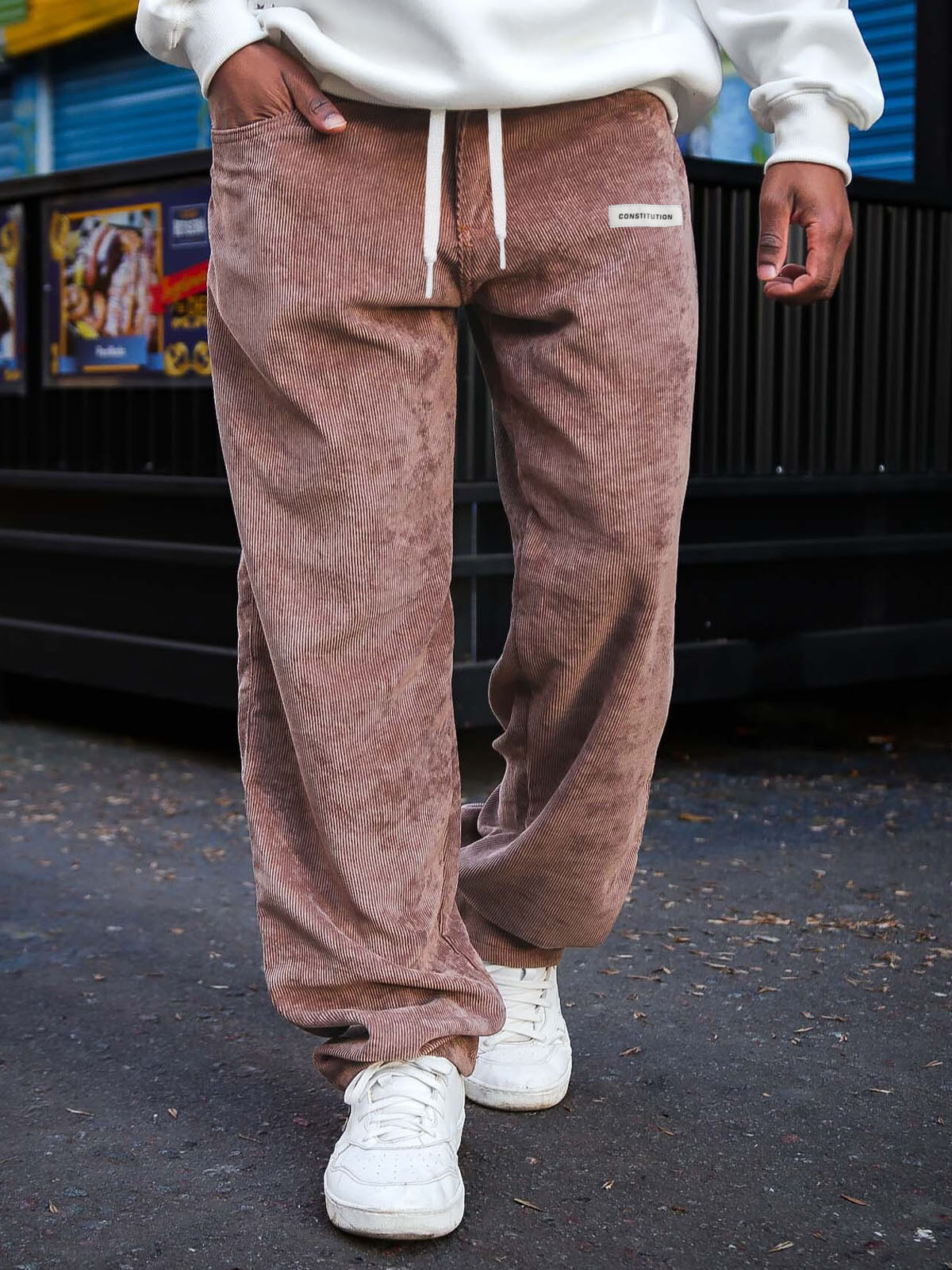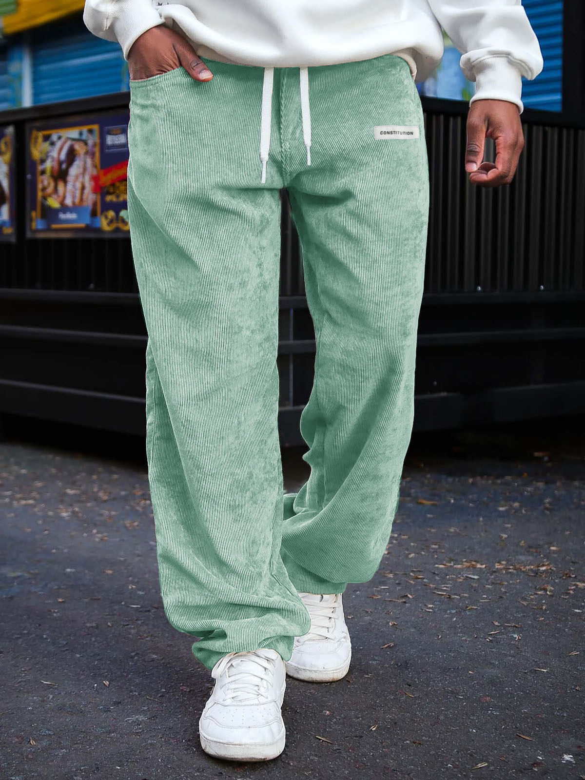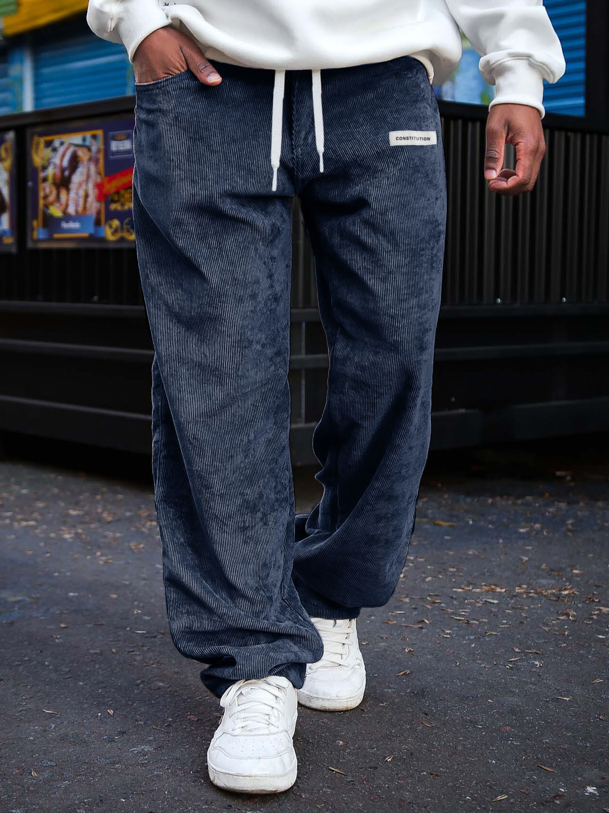 Men's Fashion Daily Corduroy Ribbed Fabric Embroidered Logo Elastic Waist Trousers