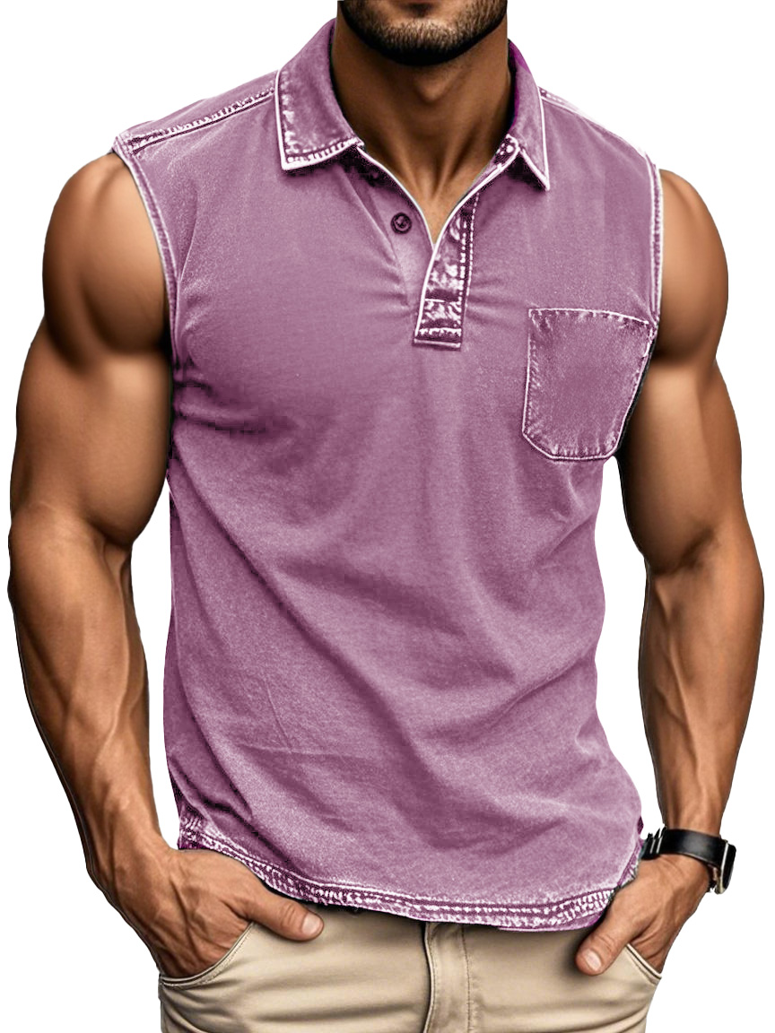 Men's Fashion Daily Distressed Fabric Pocket Sleeveless Polo Shirt