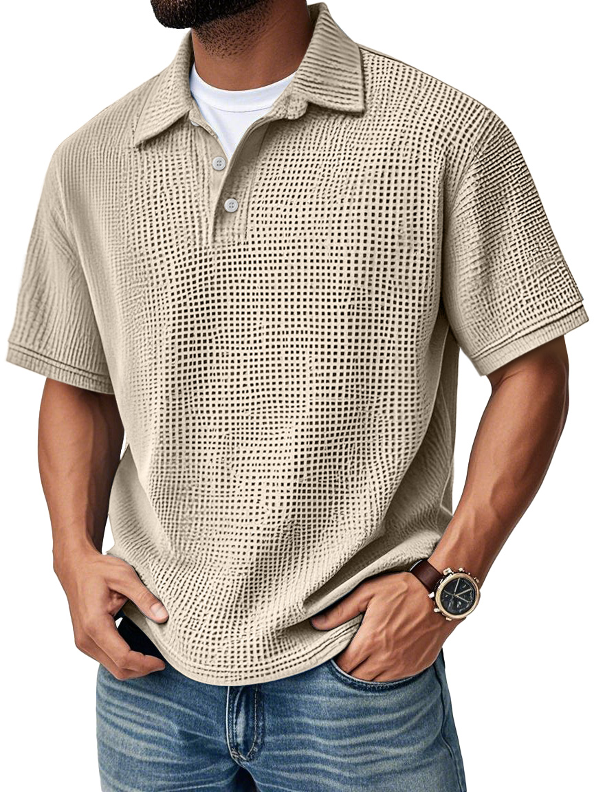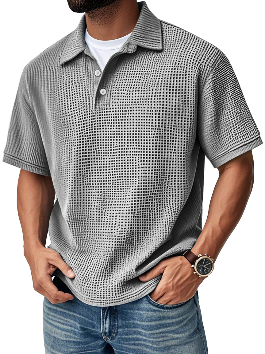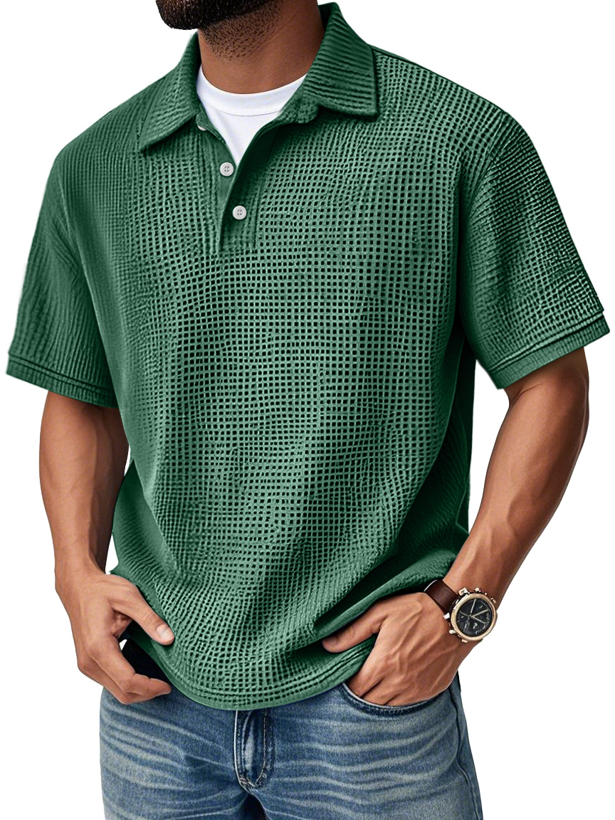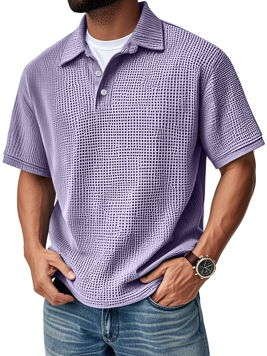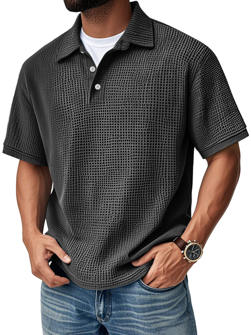 Men's Fashion Daily Waffle Lapel Casual Short Sleeve POLO Shirt