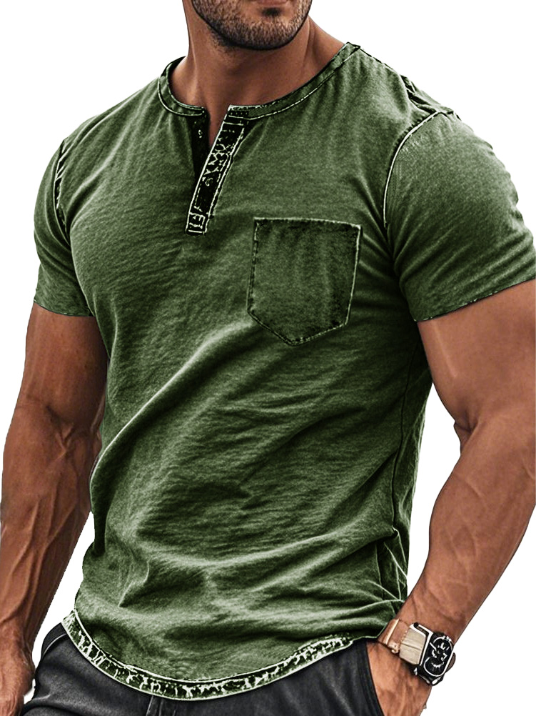 Men's Fashion Retro Distressed Pocket Short-sleeved Henley Shirt