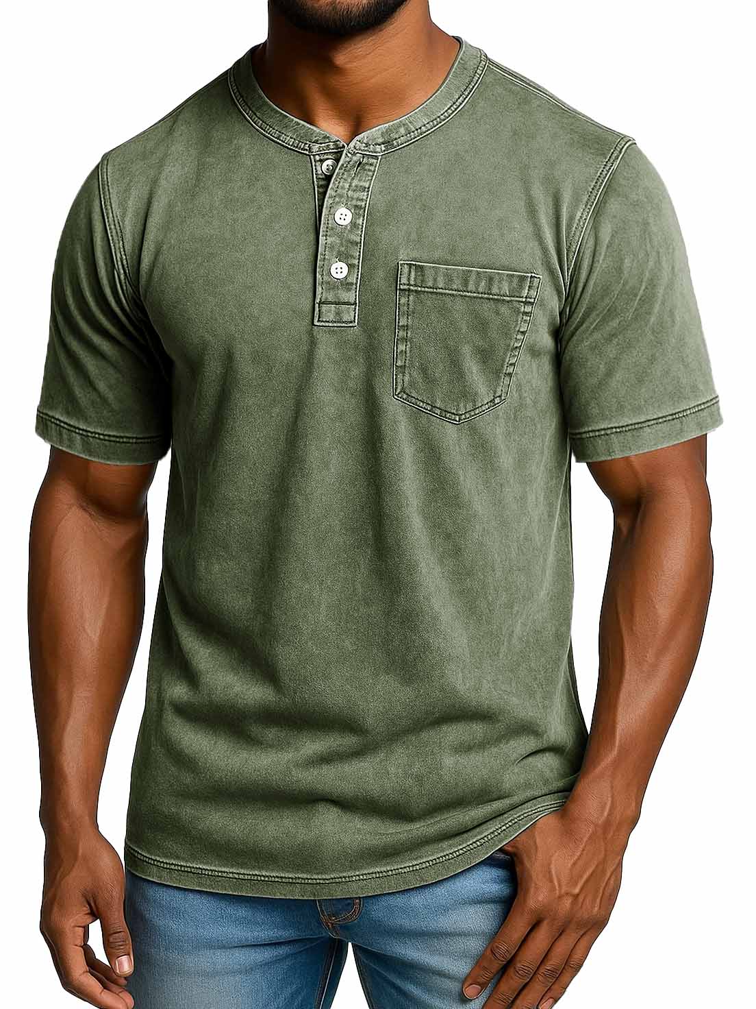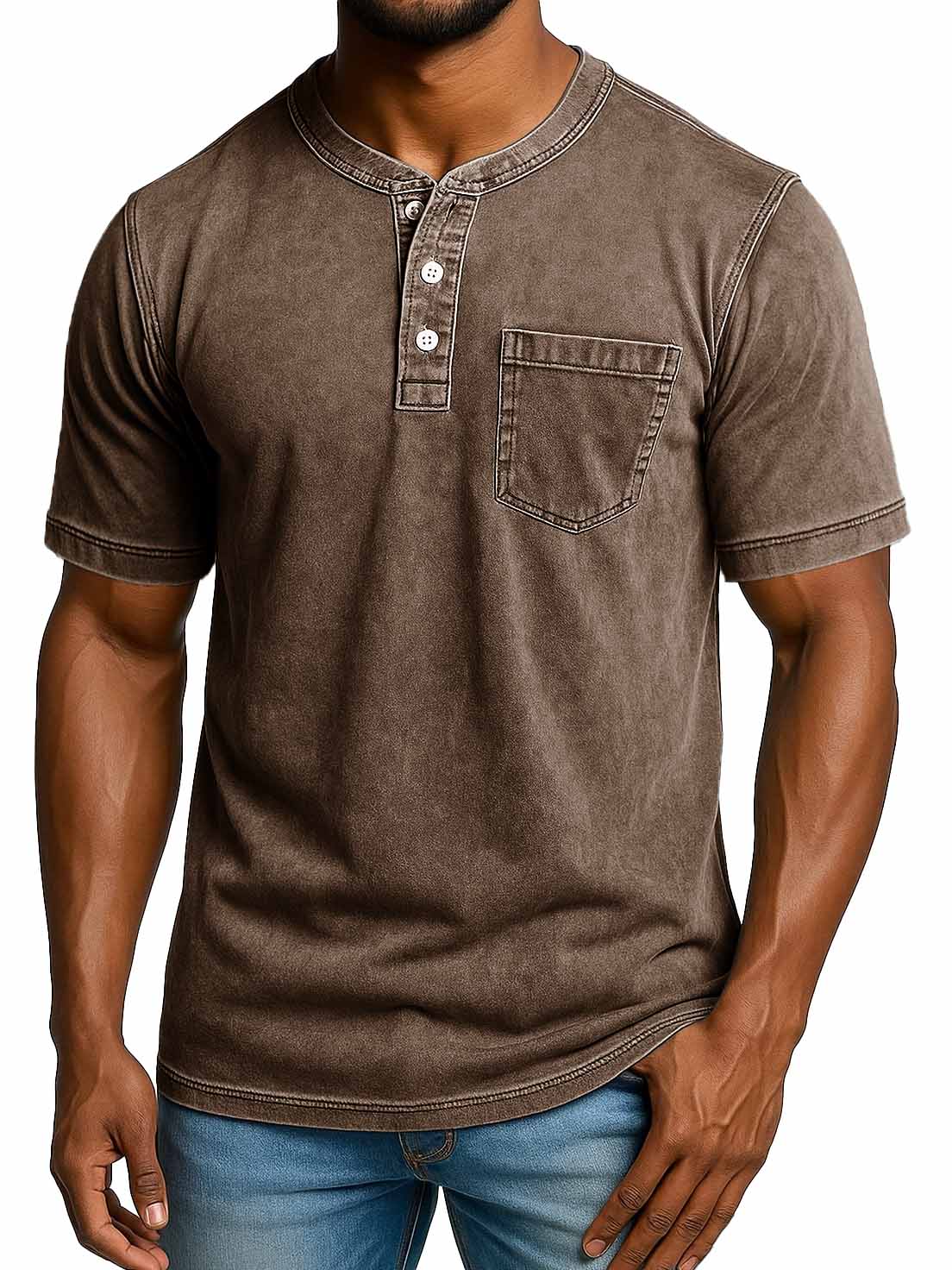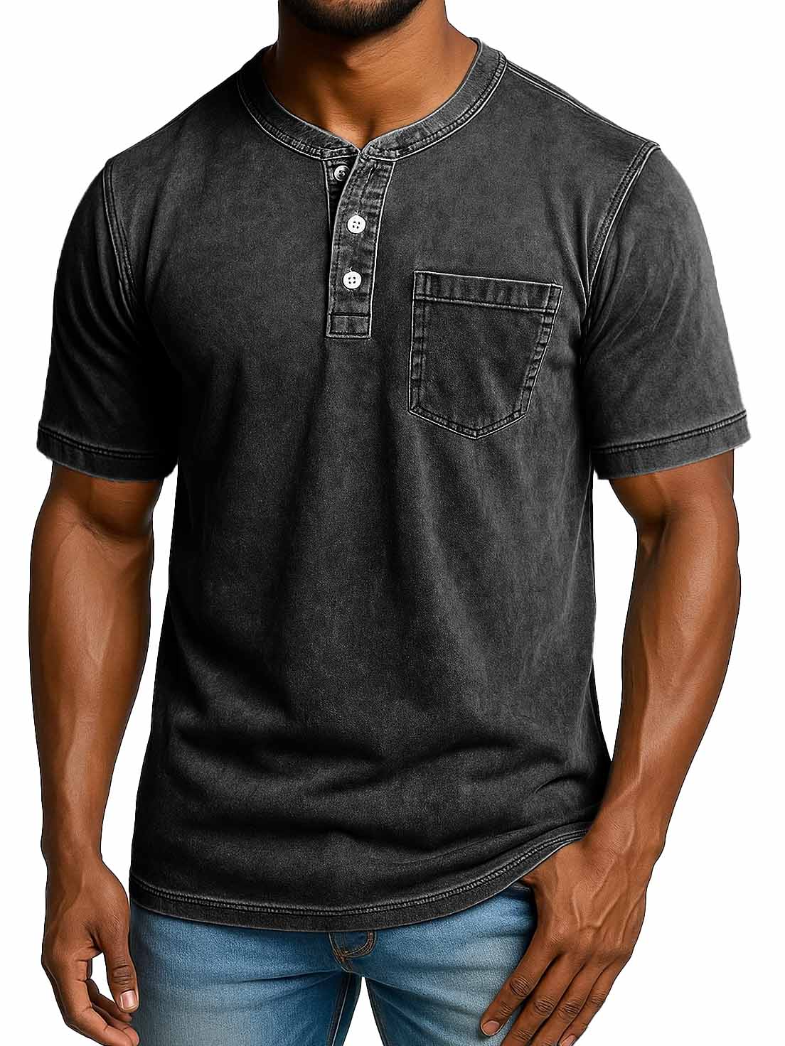 Men's Fashion Retro Distressed Short-sleeved Pocket Henley Shirt