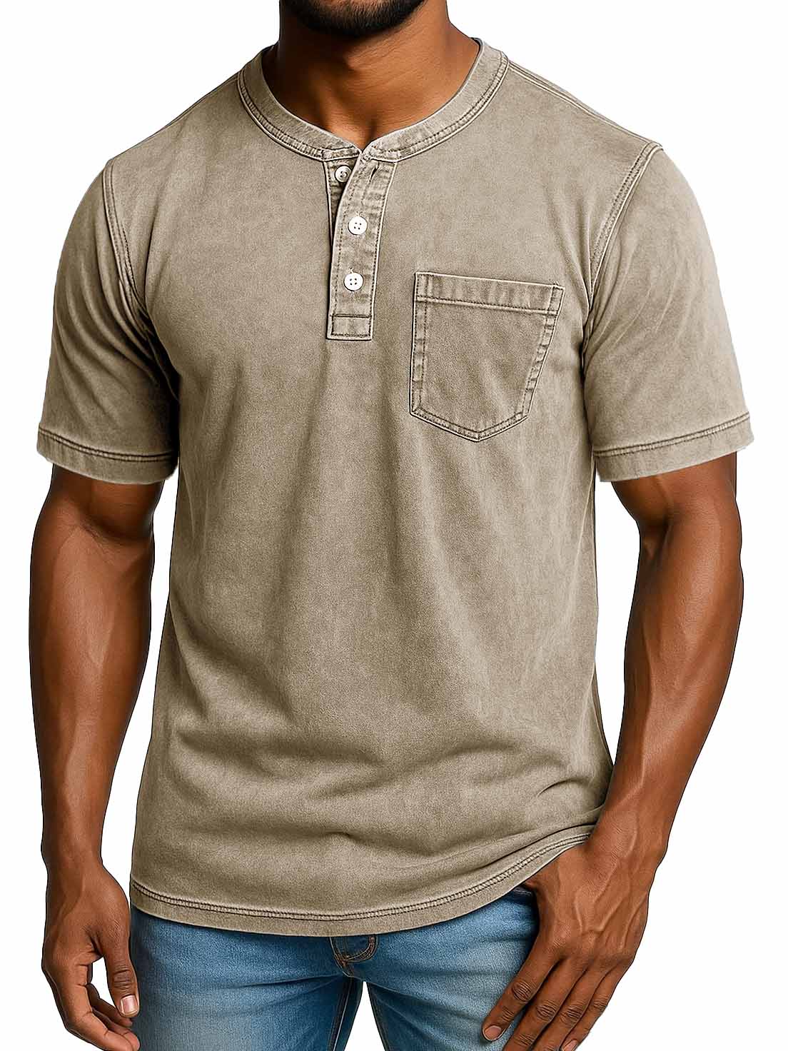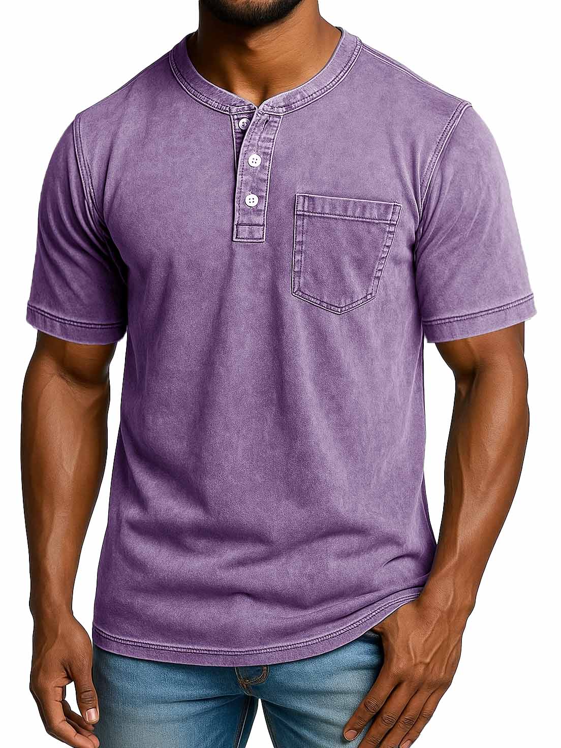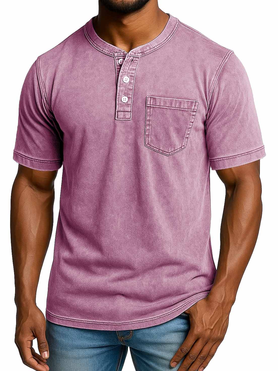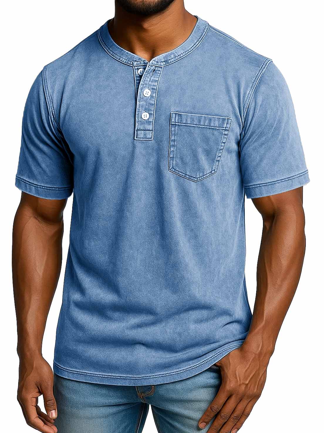 Men's Fashion Retro Distressed Short-sleeved Pocket Henley Shirt