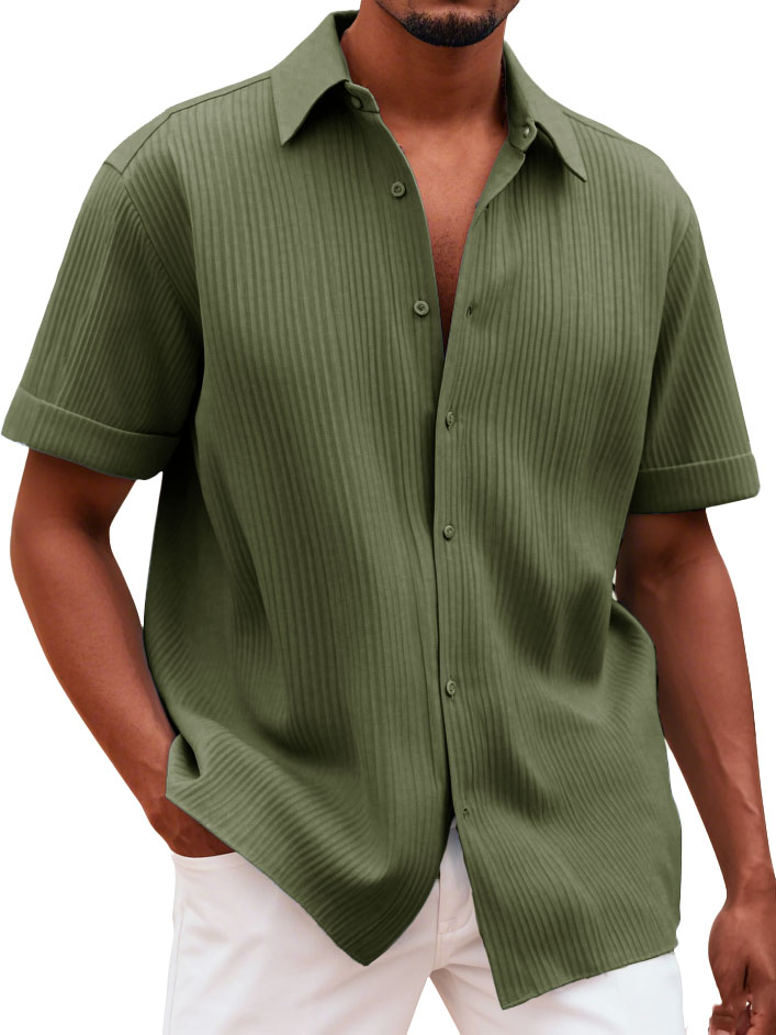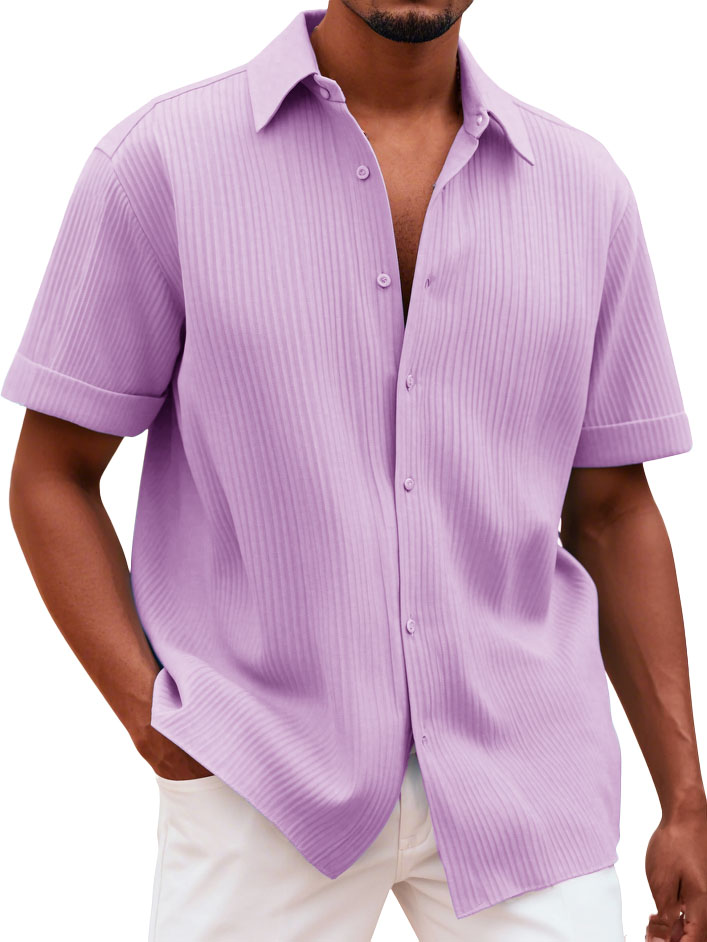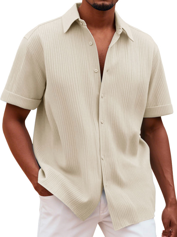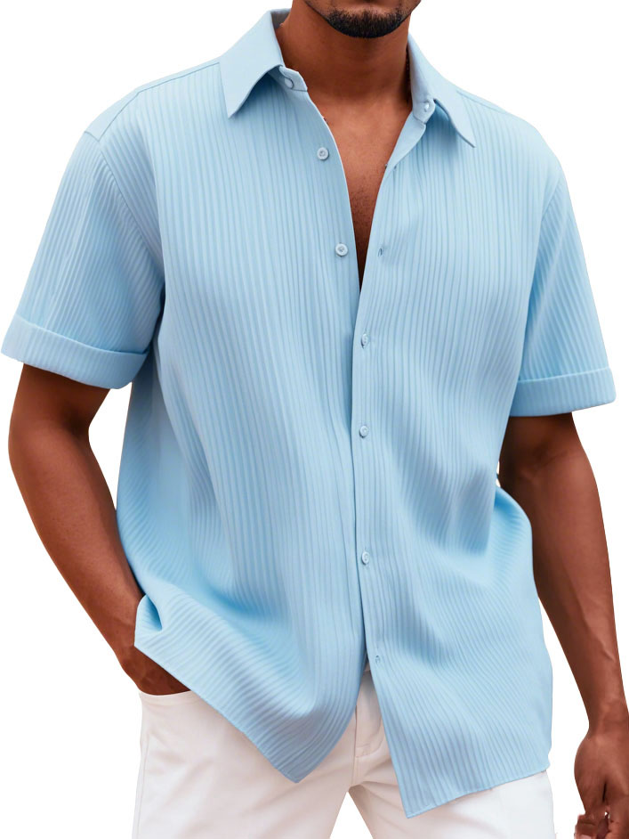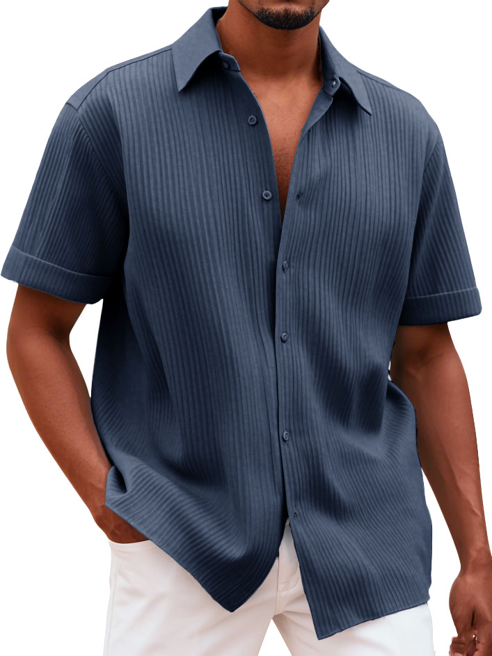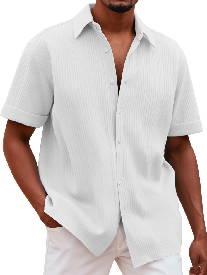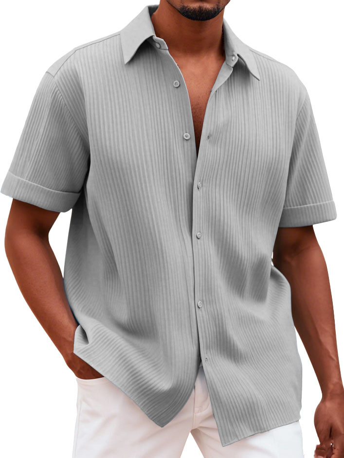 Men's Fashionable Casual Pitted Fabric Short-Sleeved Shirt