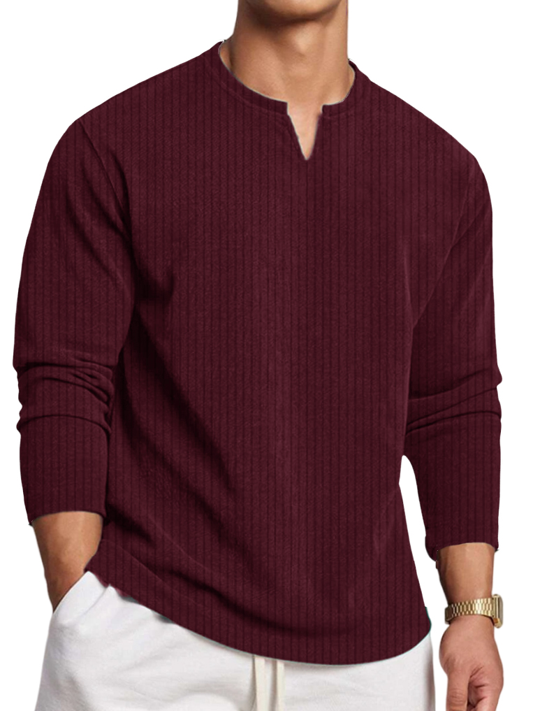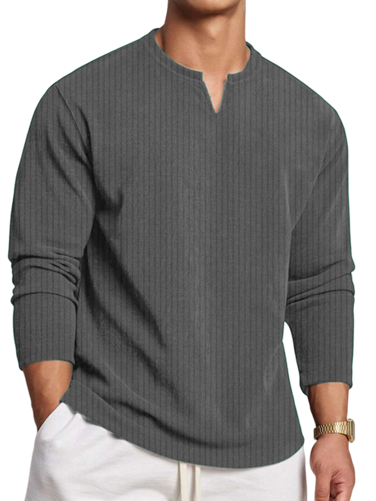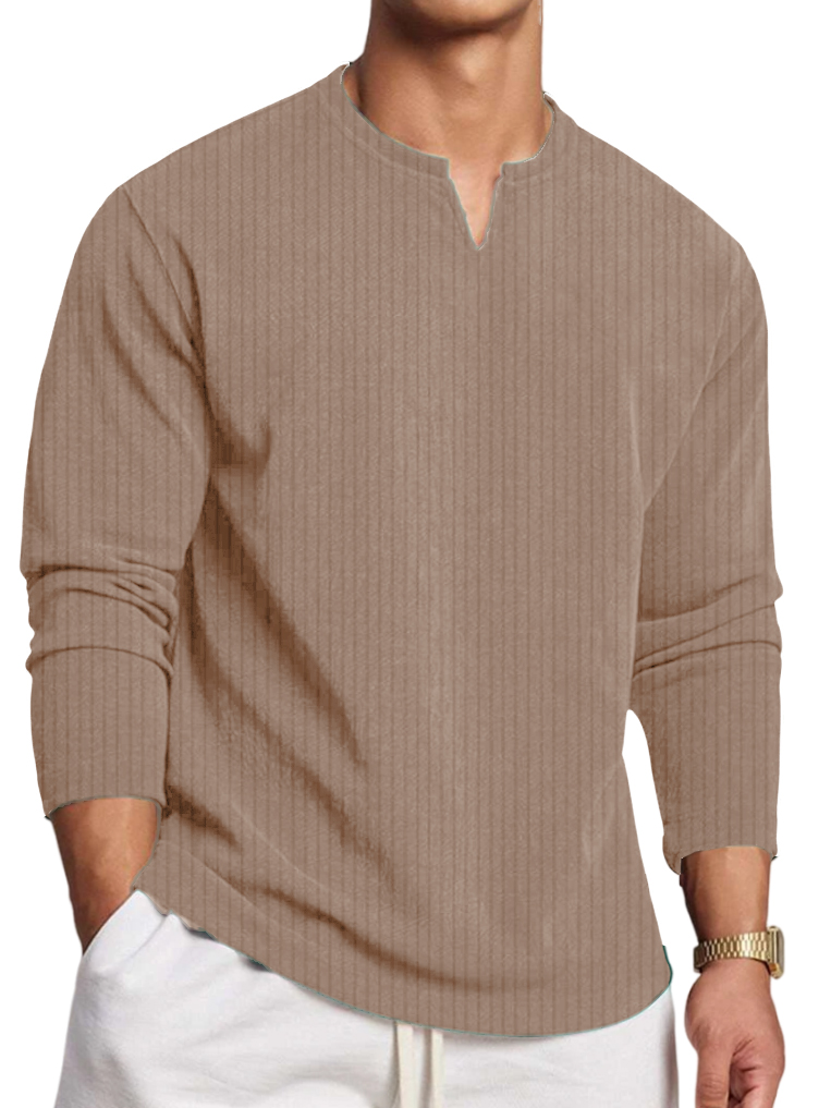 Men's Fashionable Casual Trench Fabric V-neck Long-Sleeved T-shirt