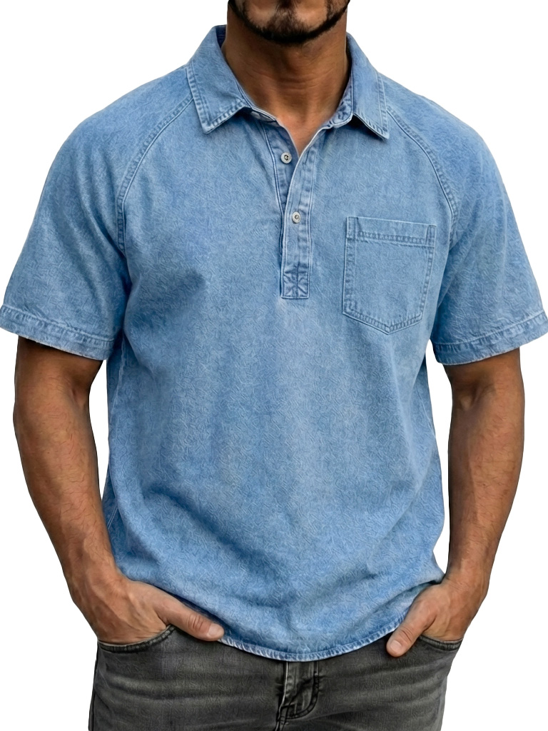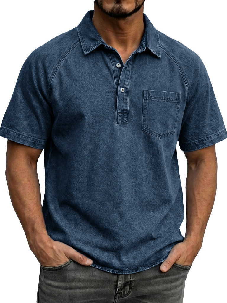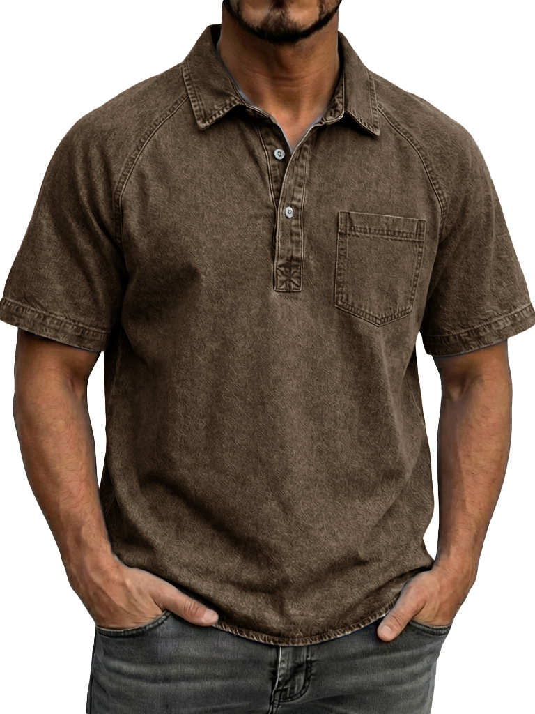 Men's Fashionable Retro Distressed Lapel Short-sleeved Polo Shirt