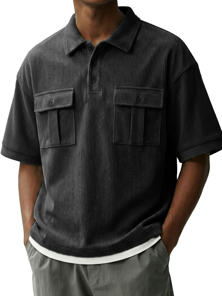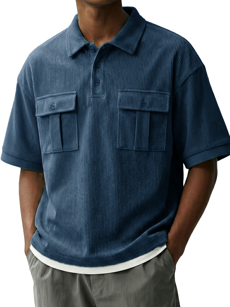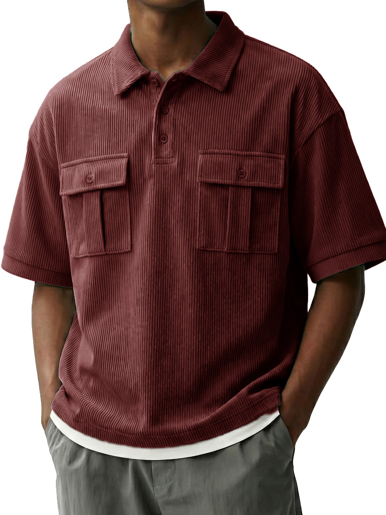Men's Fashionable Retro Workwear Pocket Short-sleeved Polo Shirt with Lapel