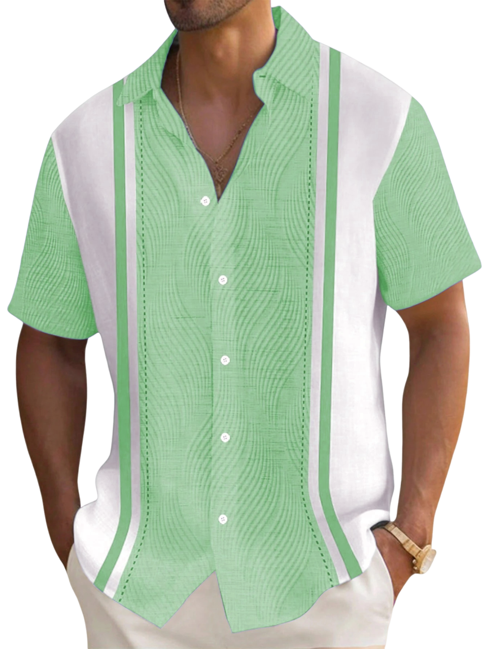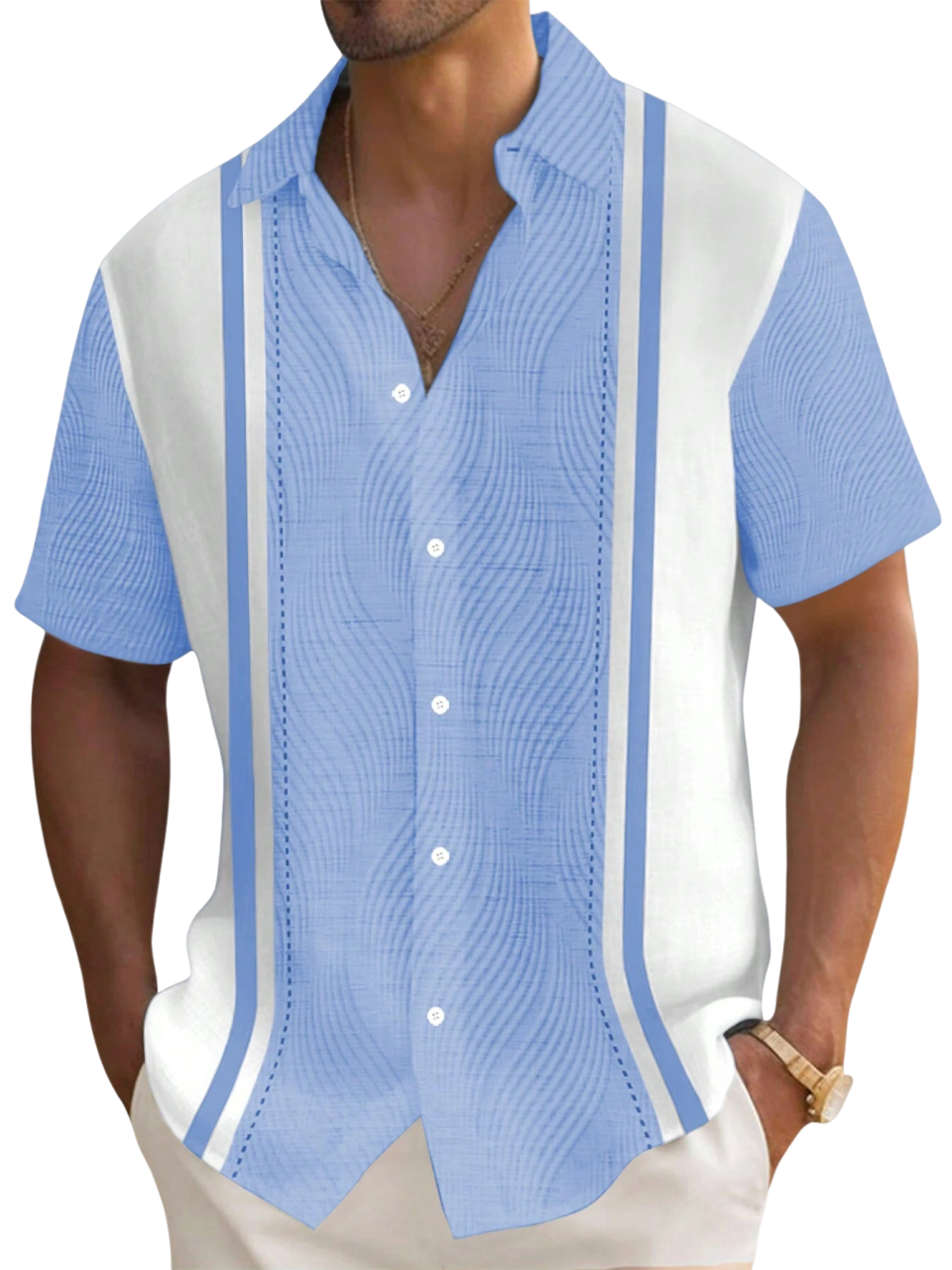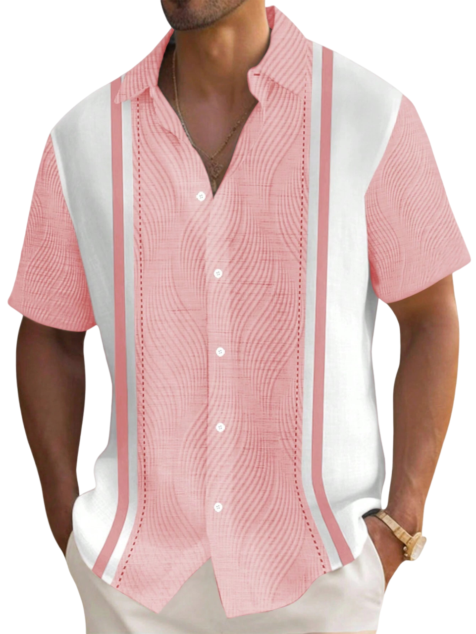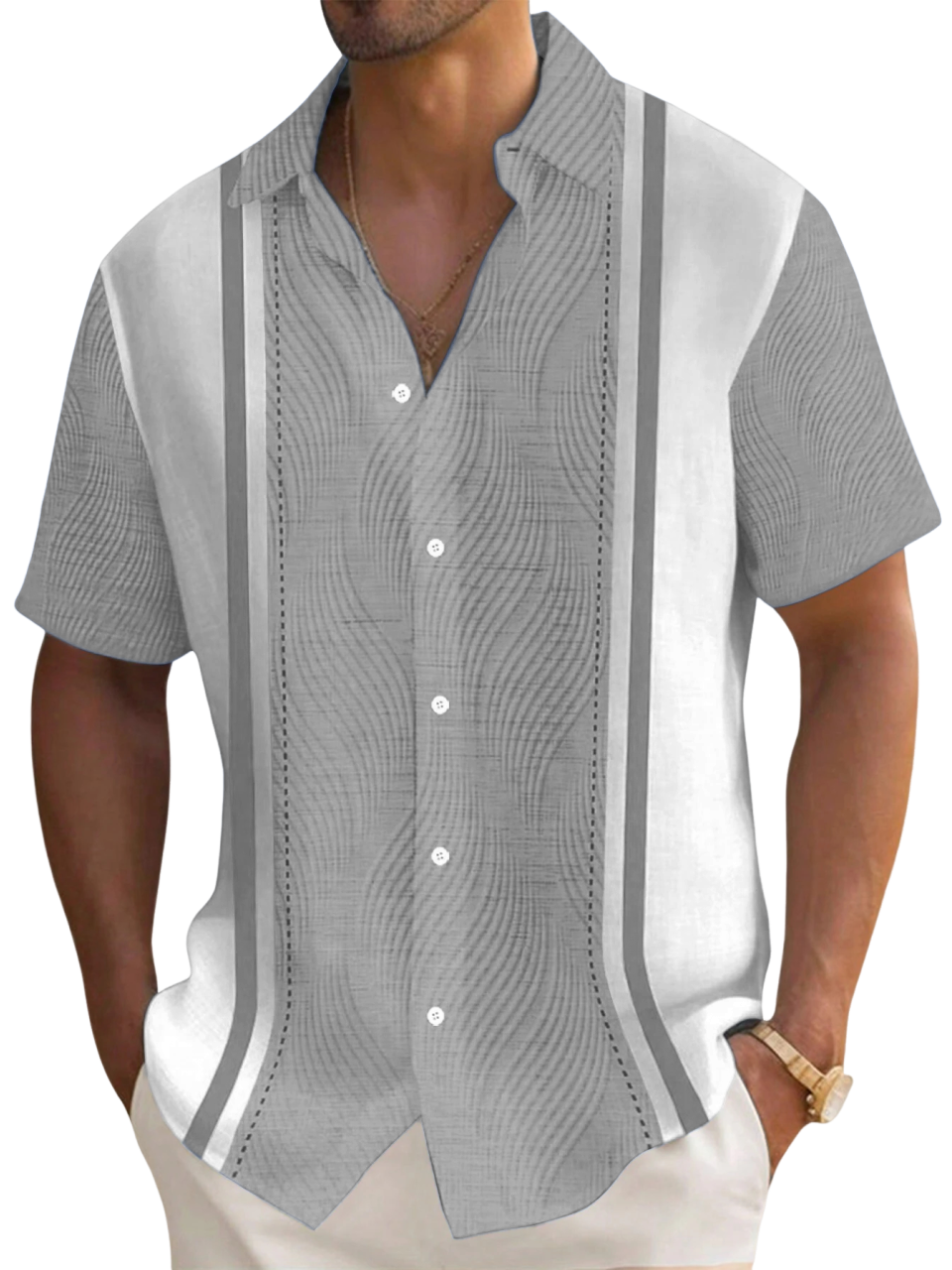 Men's Hawaiian Textured Print Short Sleeve Shirt