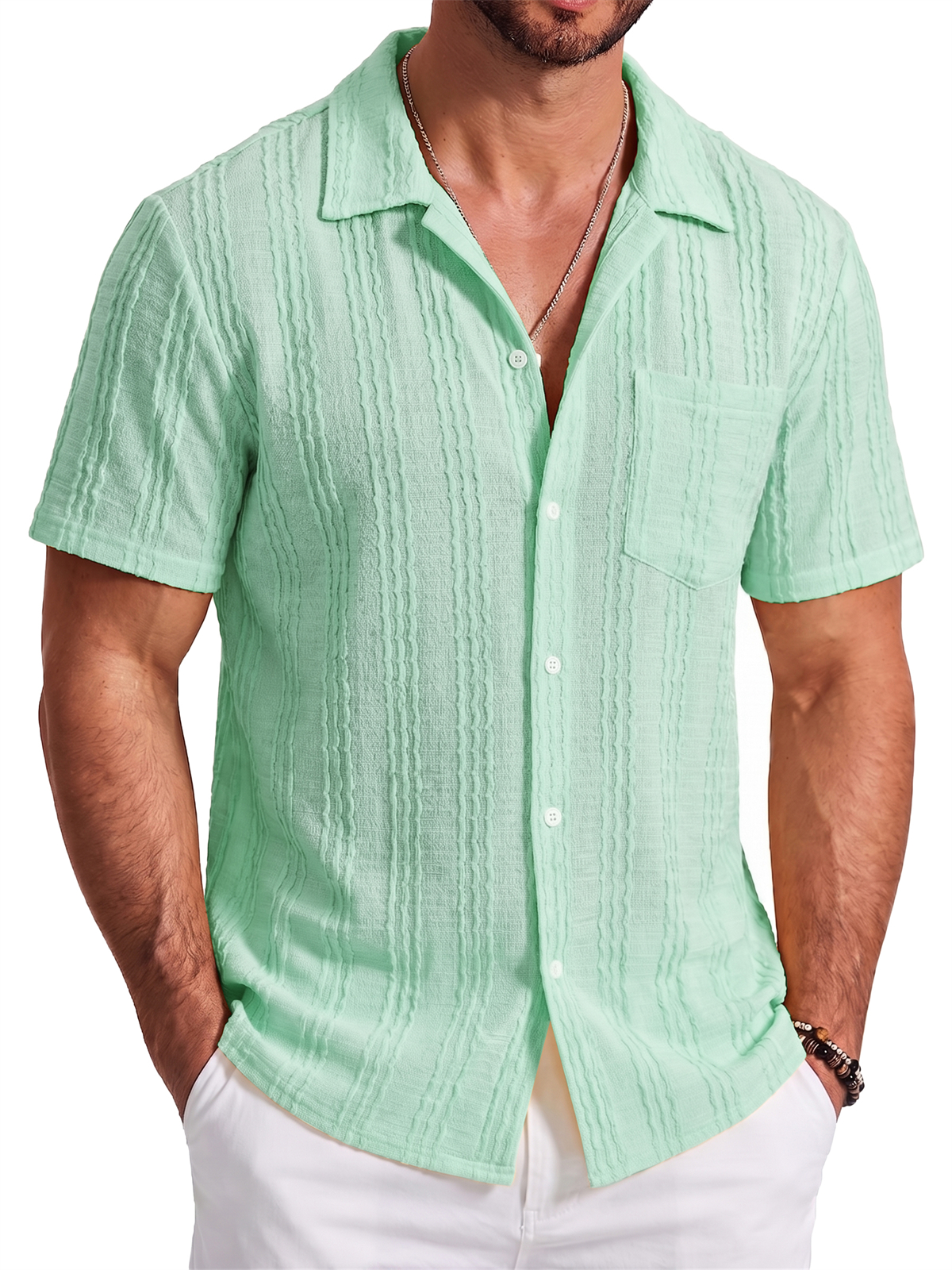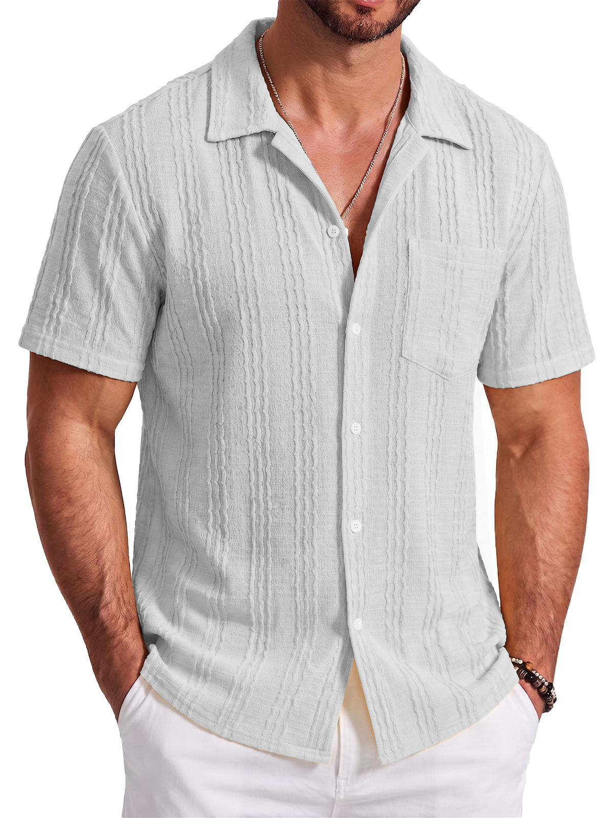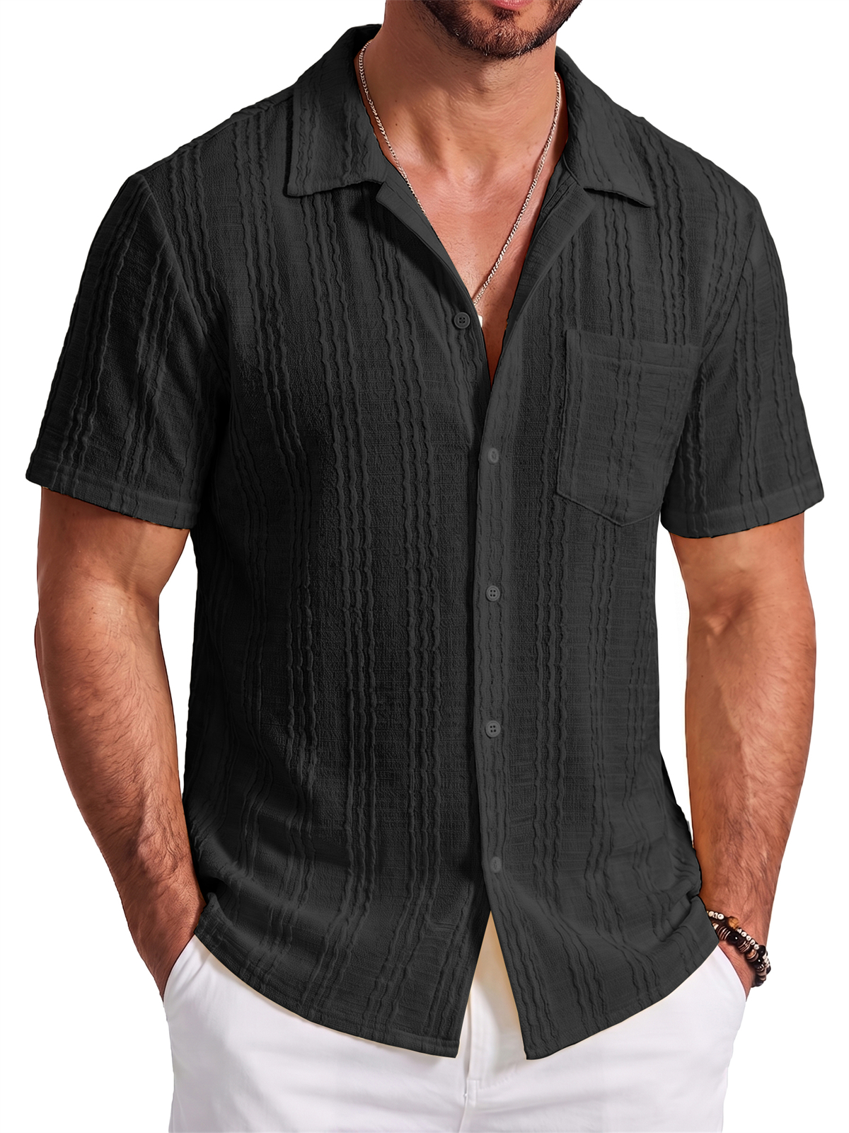 Men's Jacquard Striped Short Sleeve Shirt