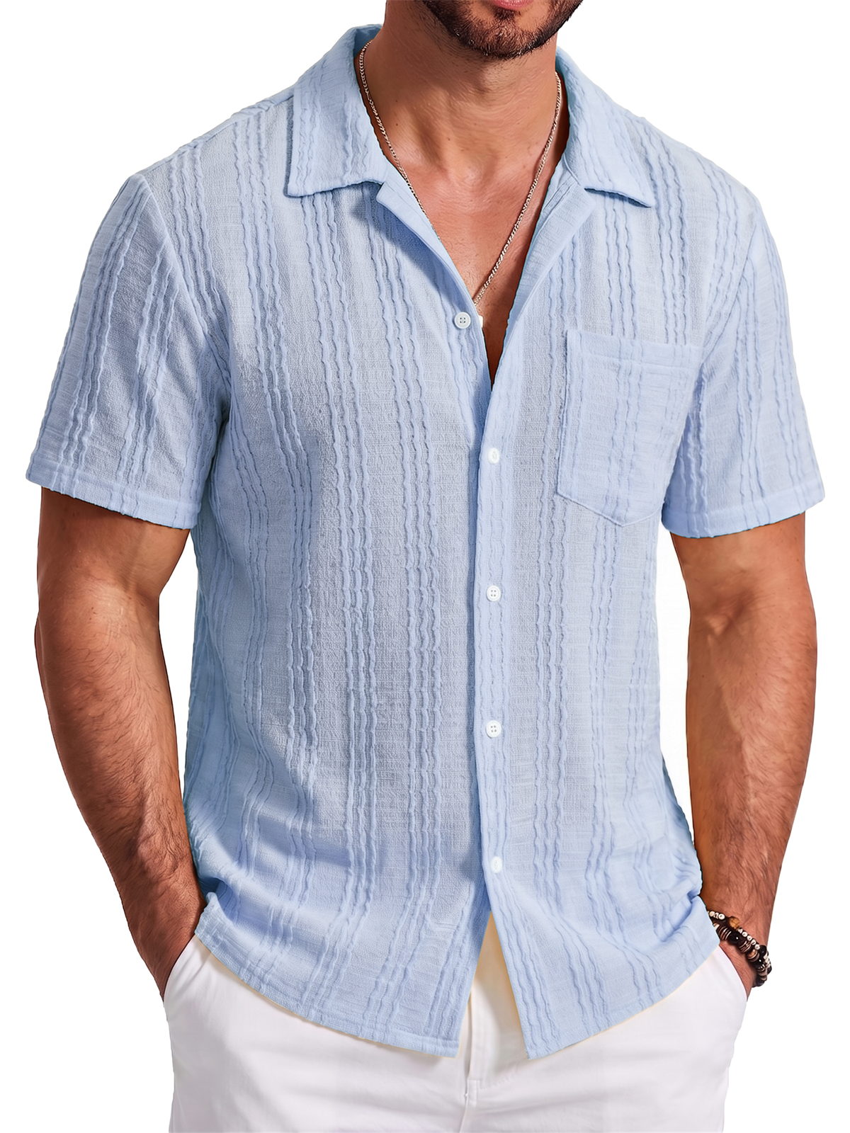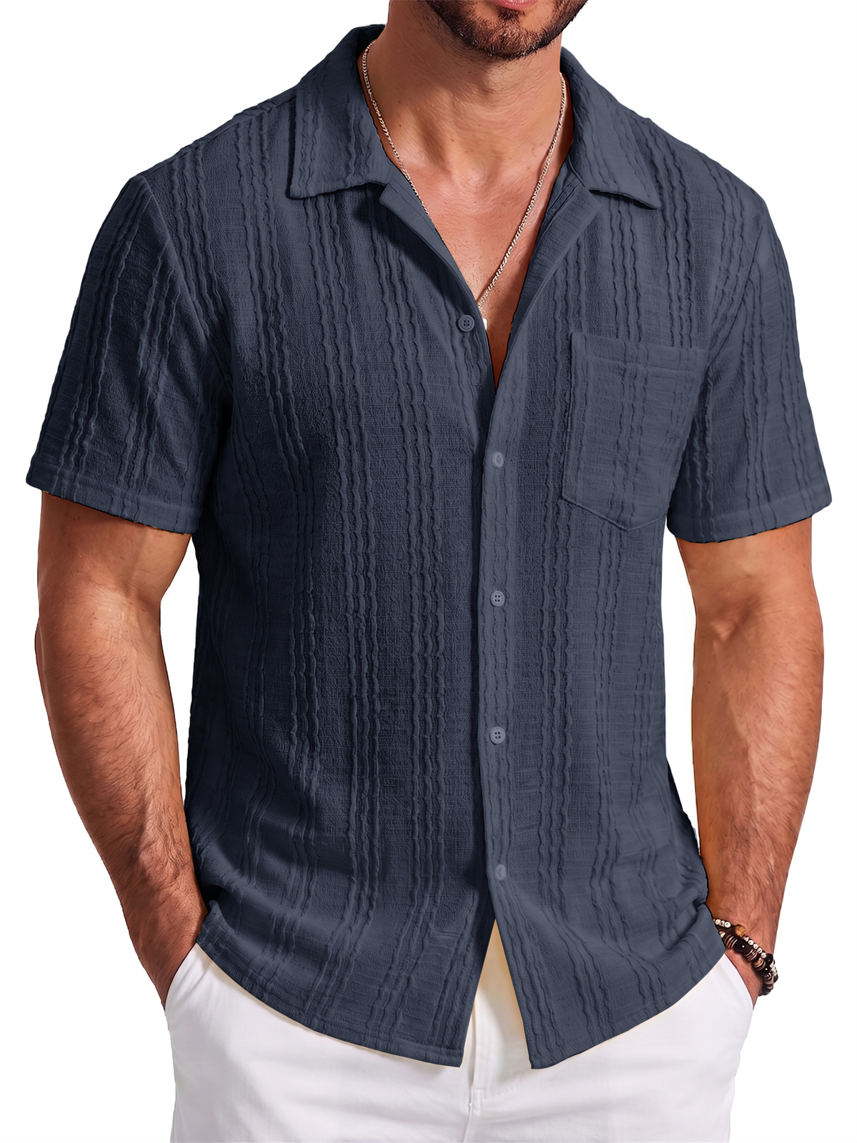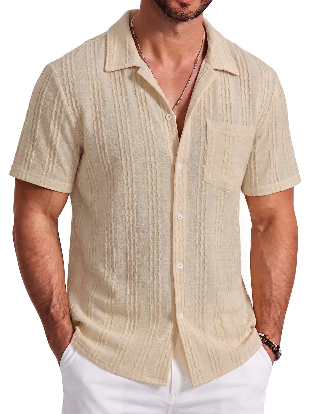 Men's Jacquard Striped Short Sleeve Shirt