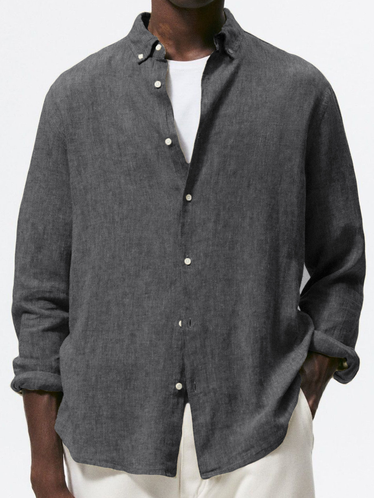 Men's Linen Vintage Cotton Basic Loose Long Sleeve Everyday Shirt