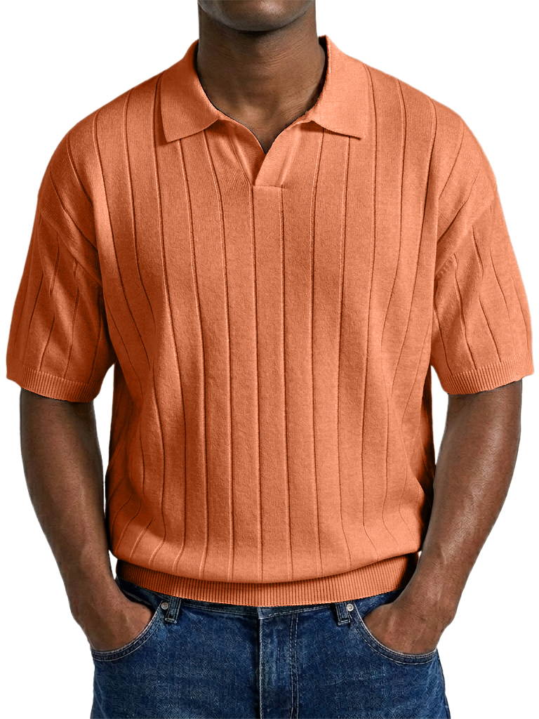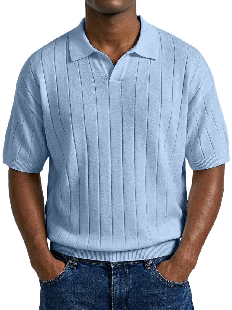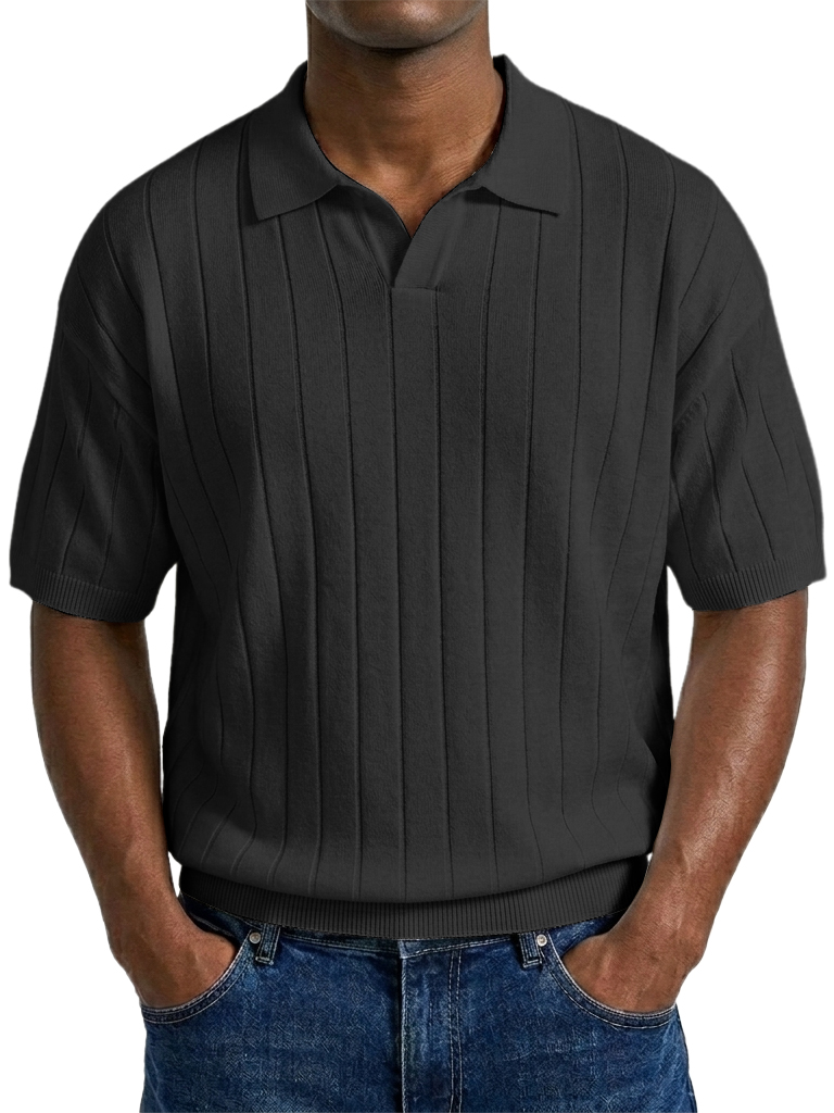 Men's "Old Money" Style Solid Color Light Luxury Commuter Short Sleeve Striped Knit Shirt