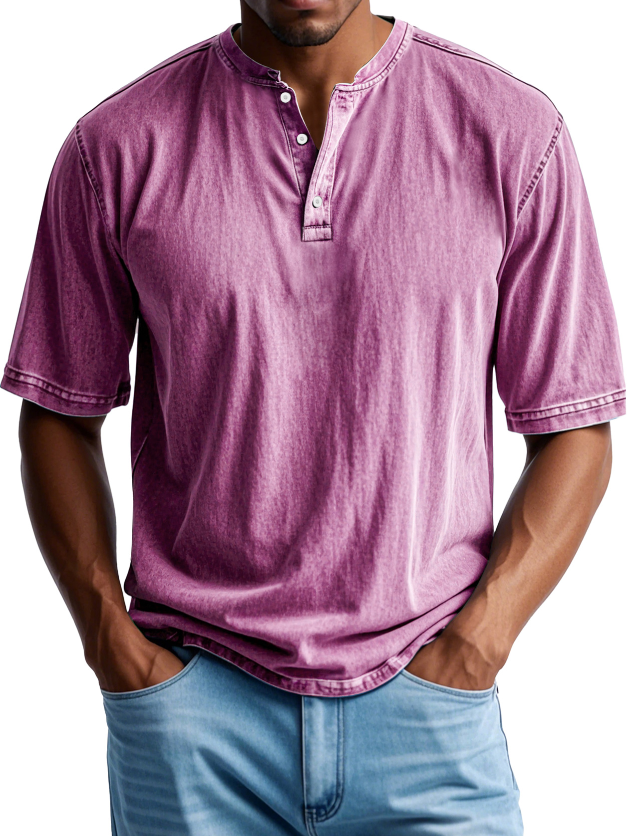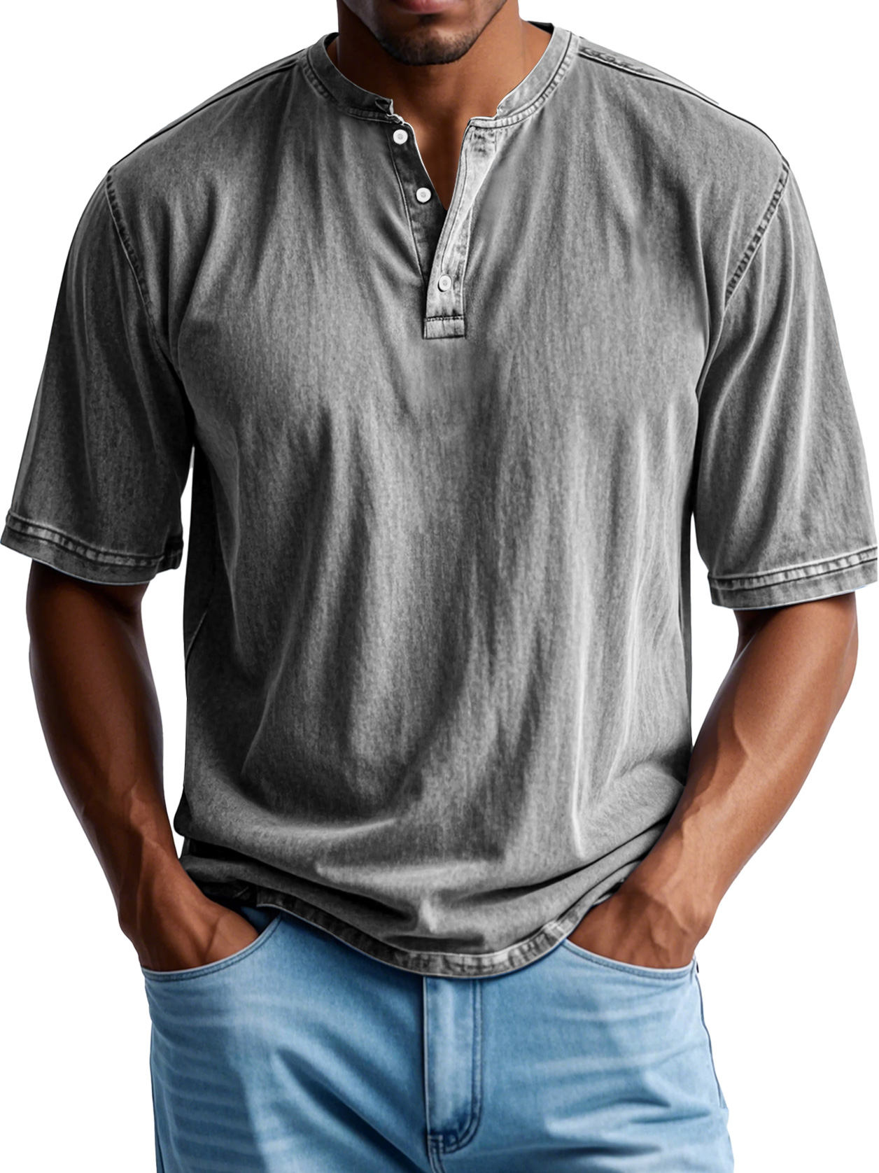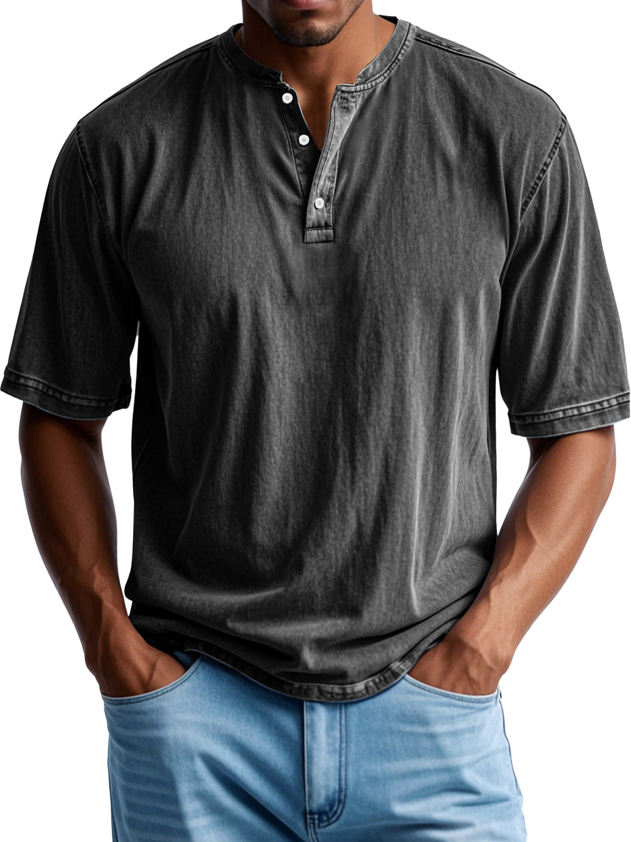 Men's Retro Casual Button Up Comfortable Solid Color Short Sleeve Henley Shirt