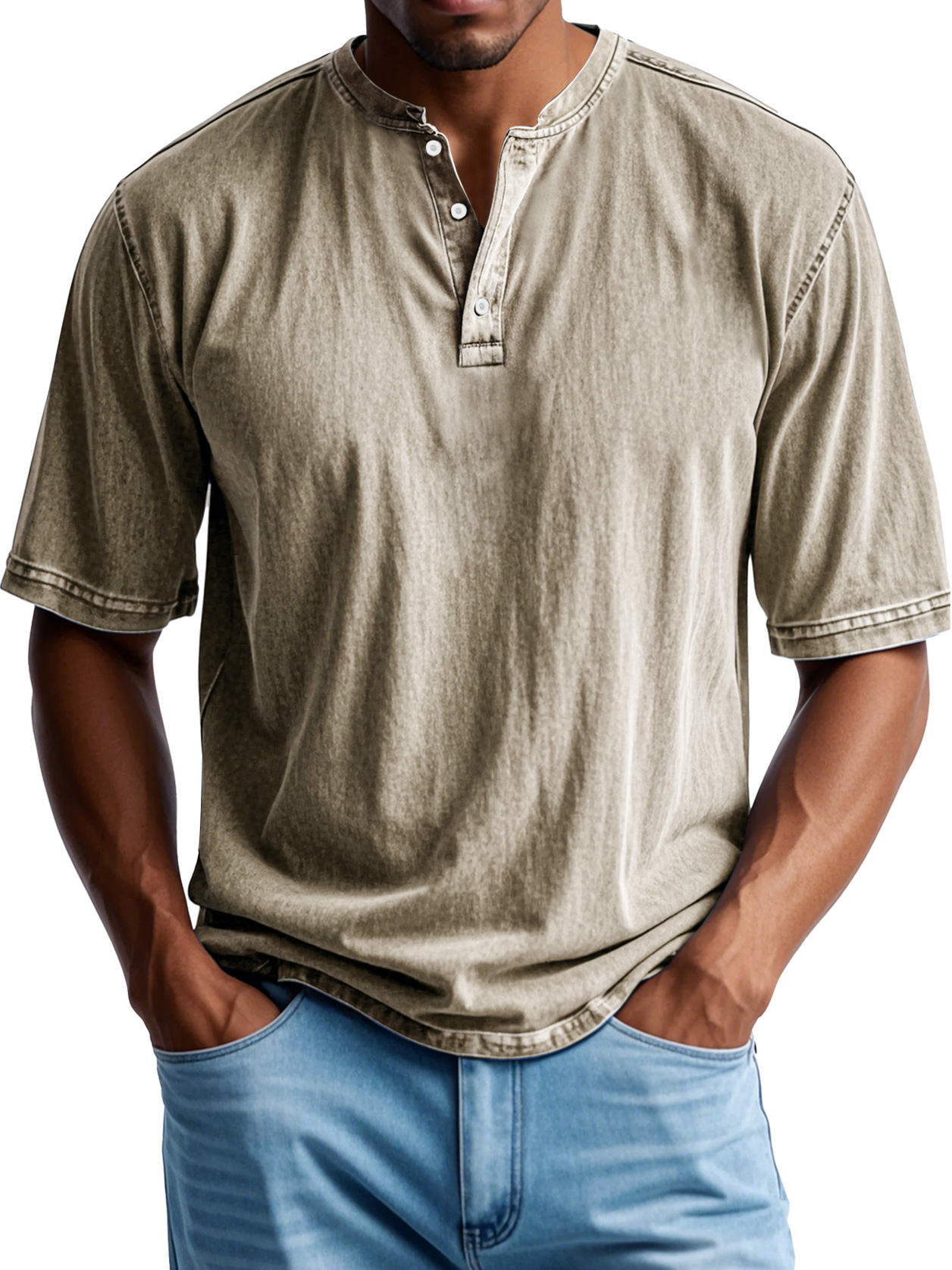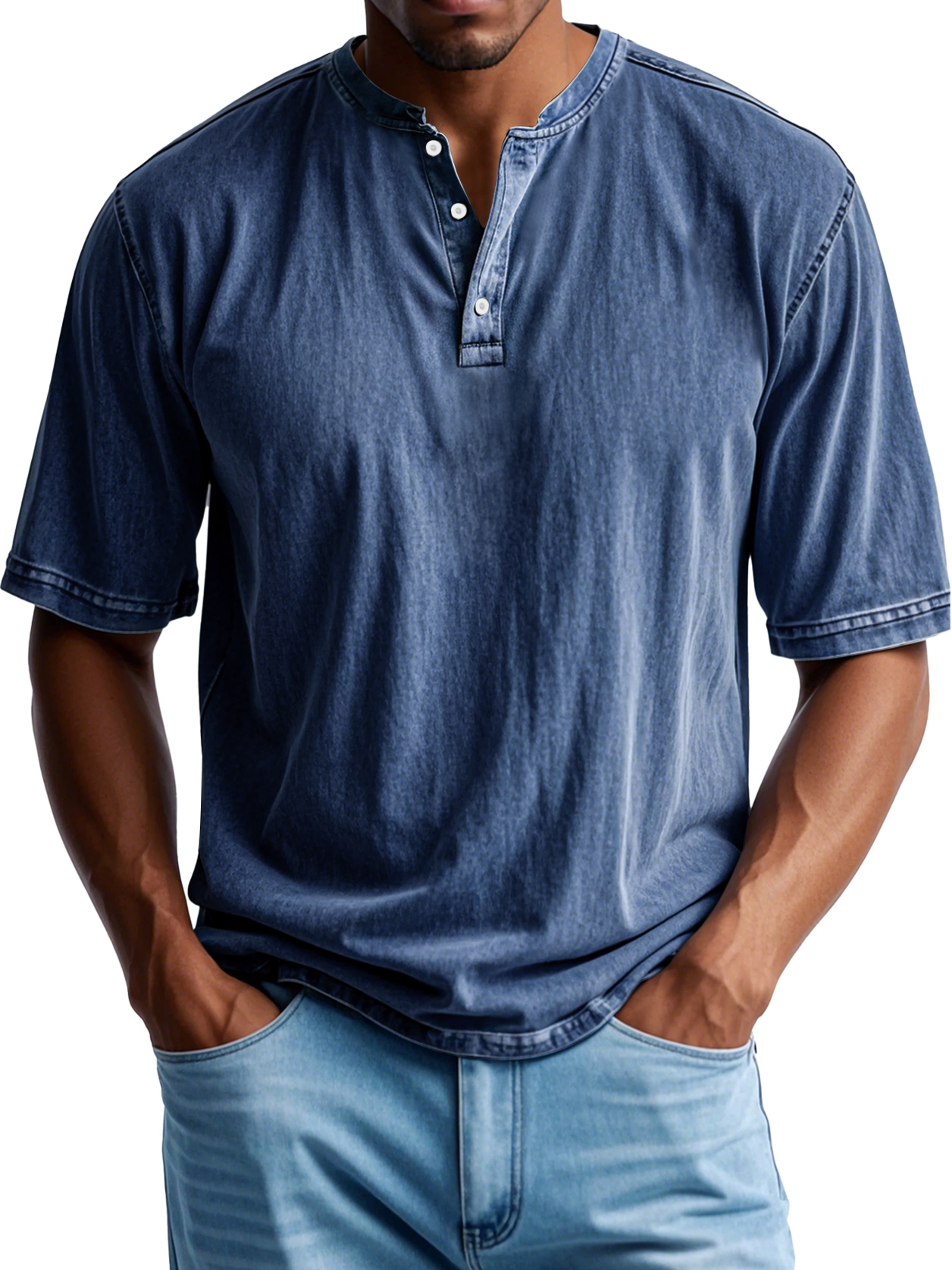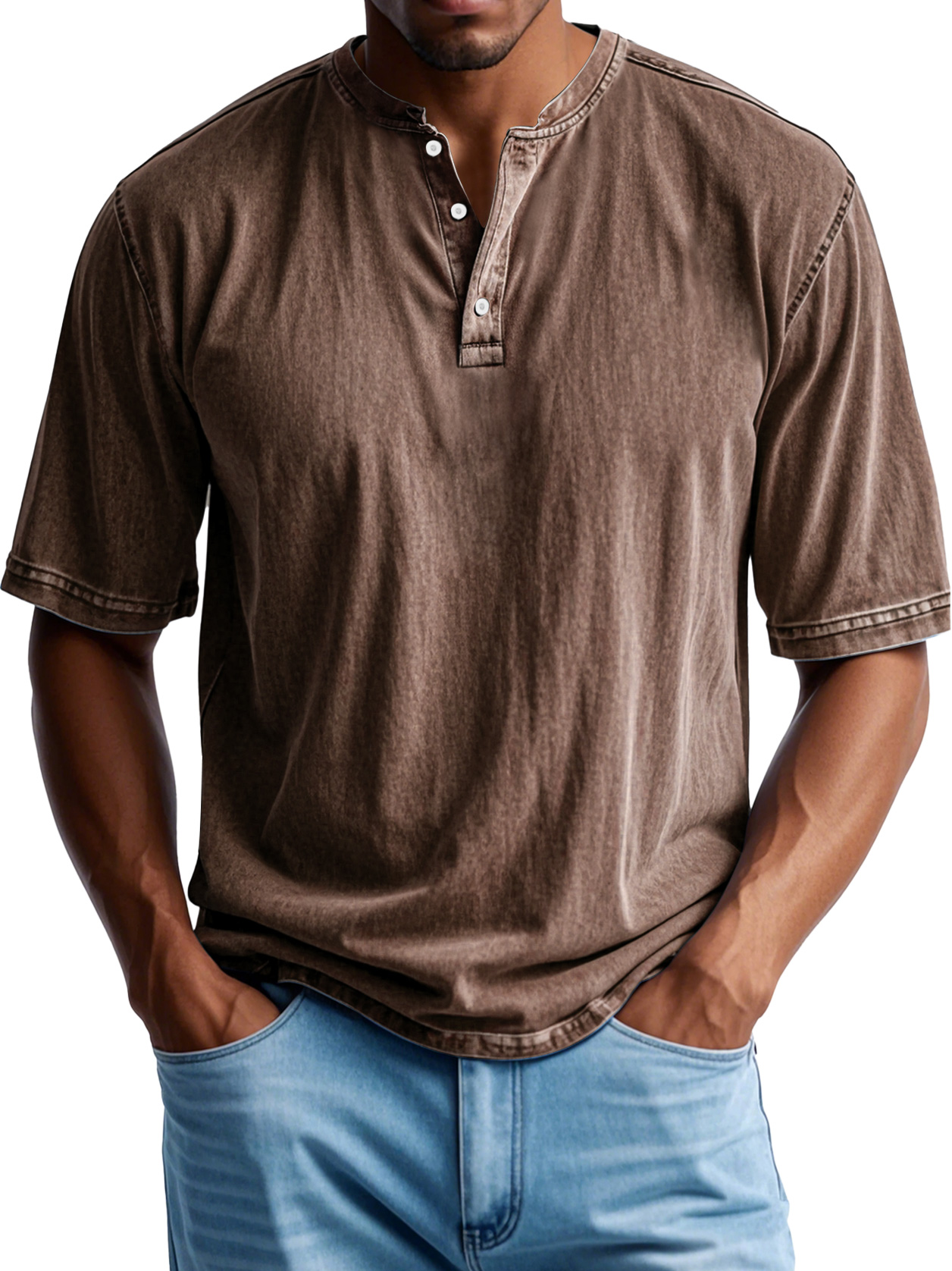 Men's Retro Casual Button Up Comfortable Solid Color Short Sleeve Henley Shirt