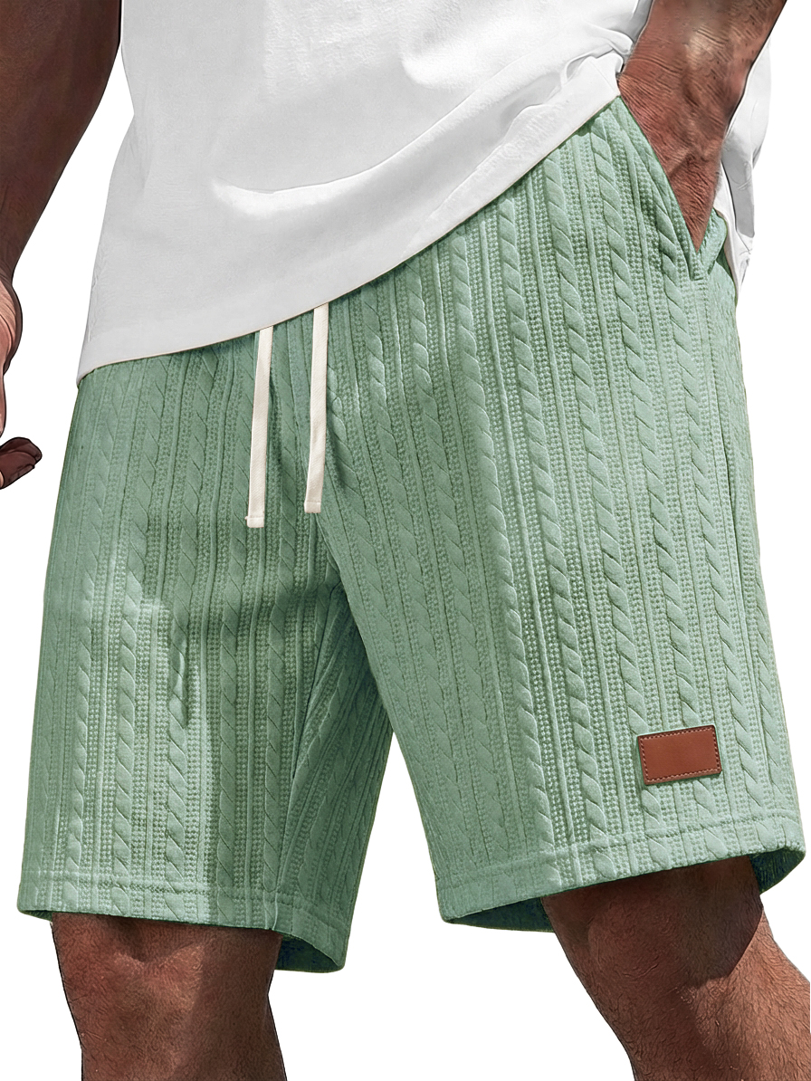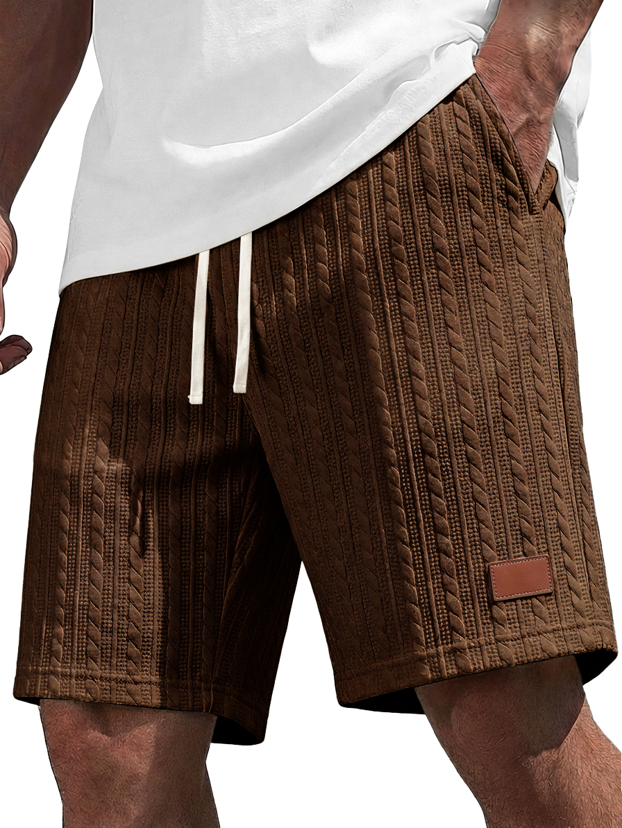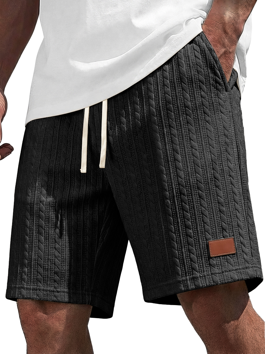 Men's Retro Casual Striped Jacquard Leather Label Shorts