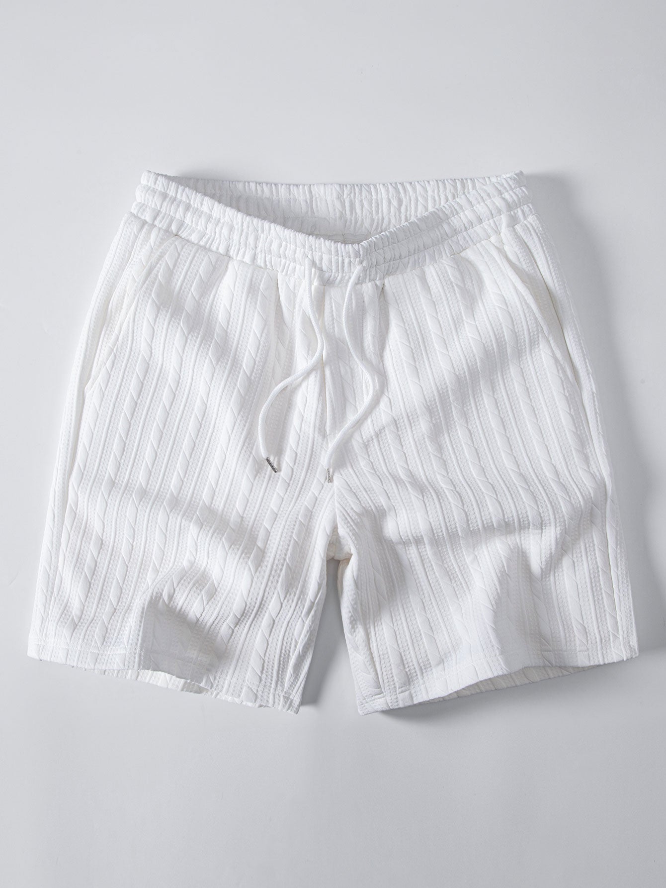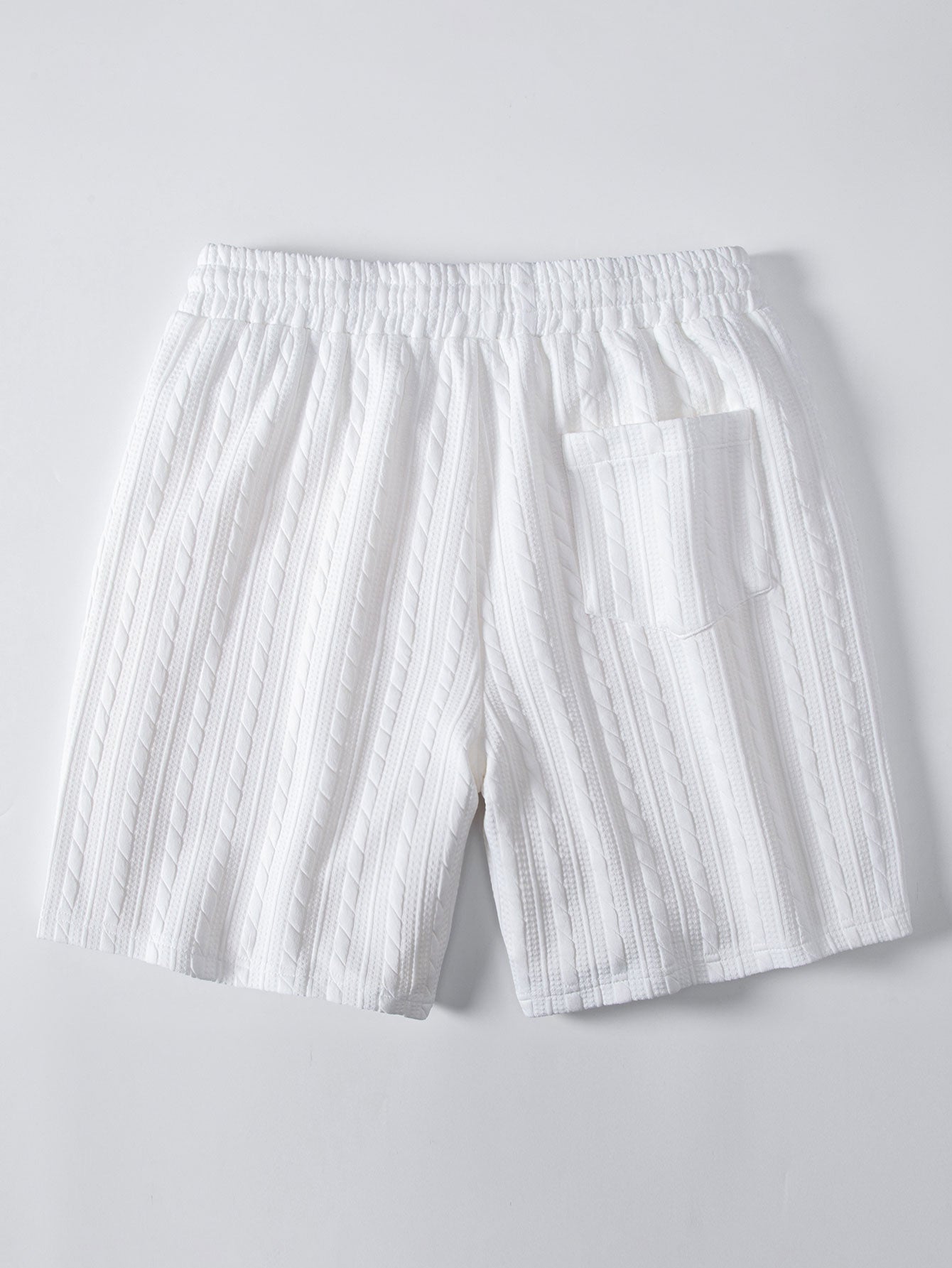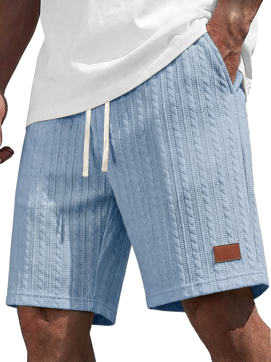 Men's Retro Casual Striped Jacquard Leather Label Shorts