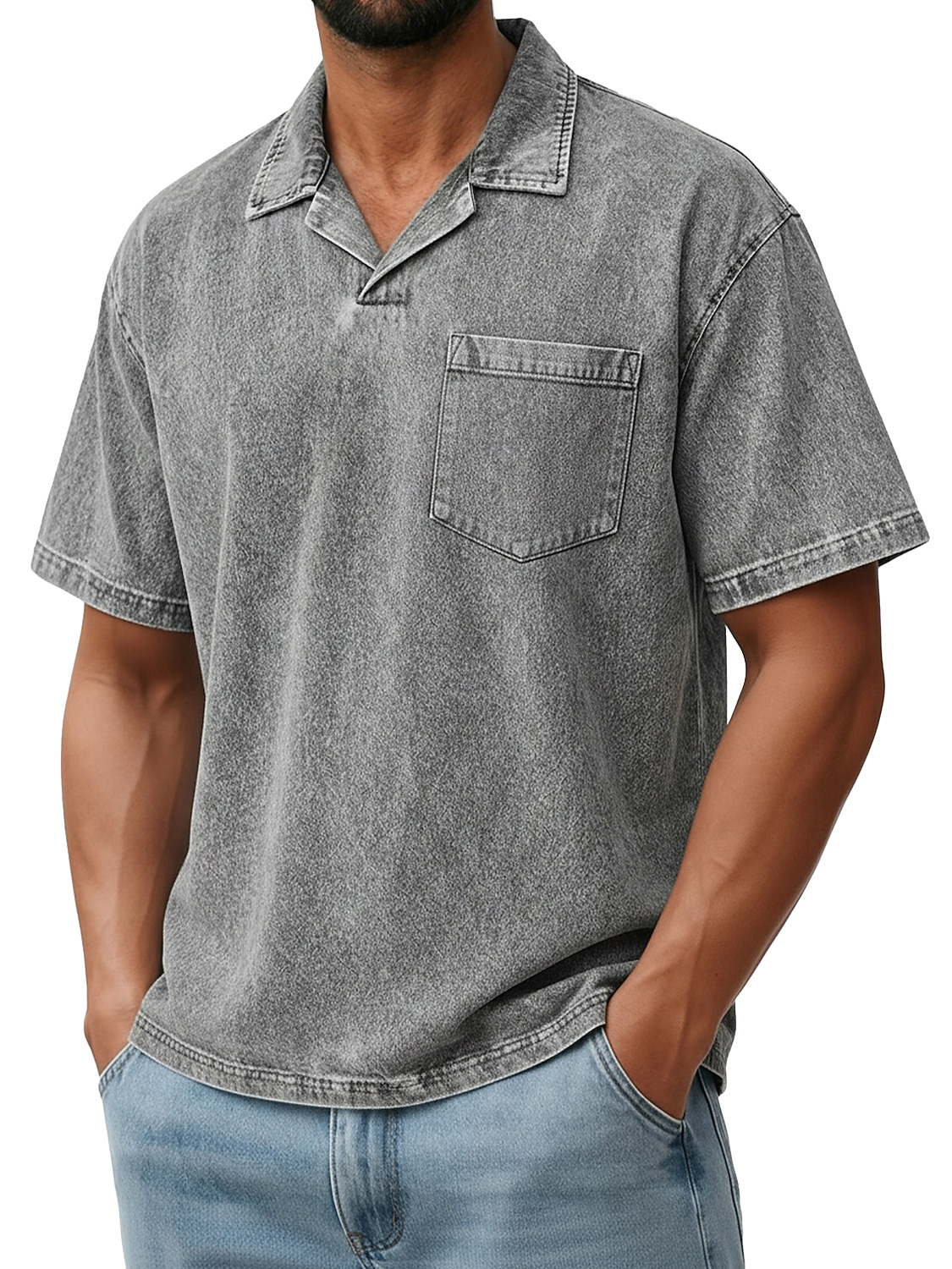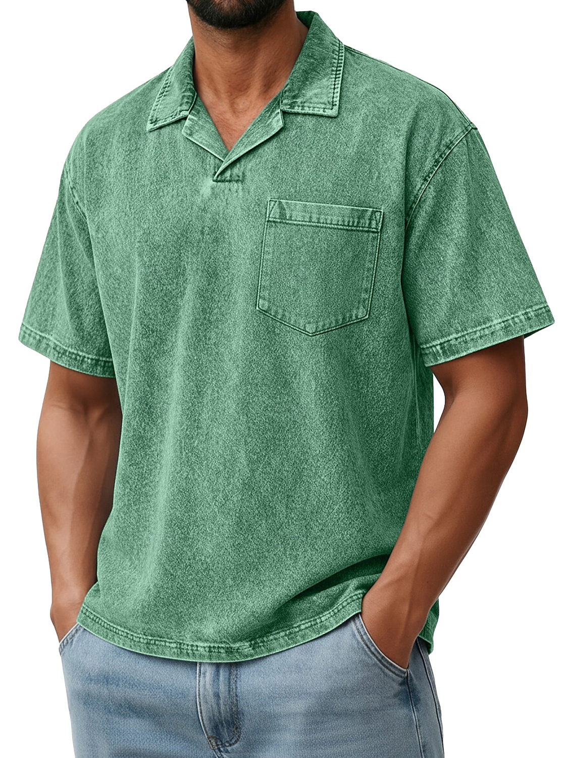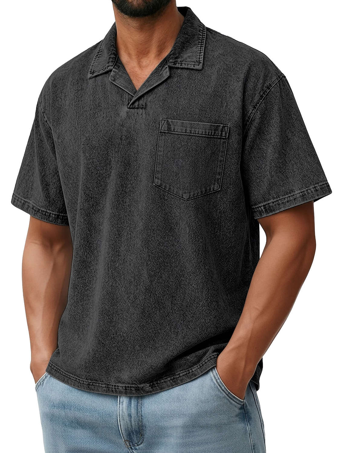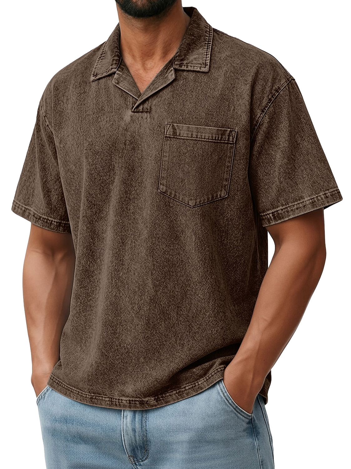 Men's Retro Collared Pocket Casual Short-Sleeve Polo Shirt