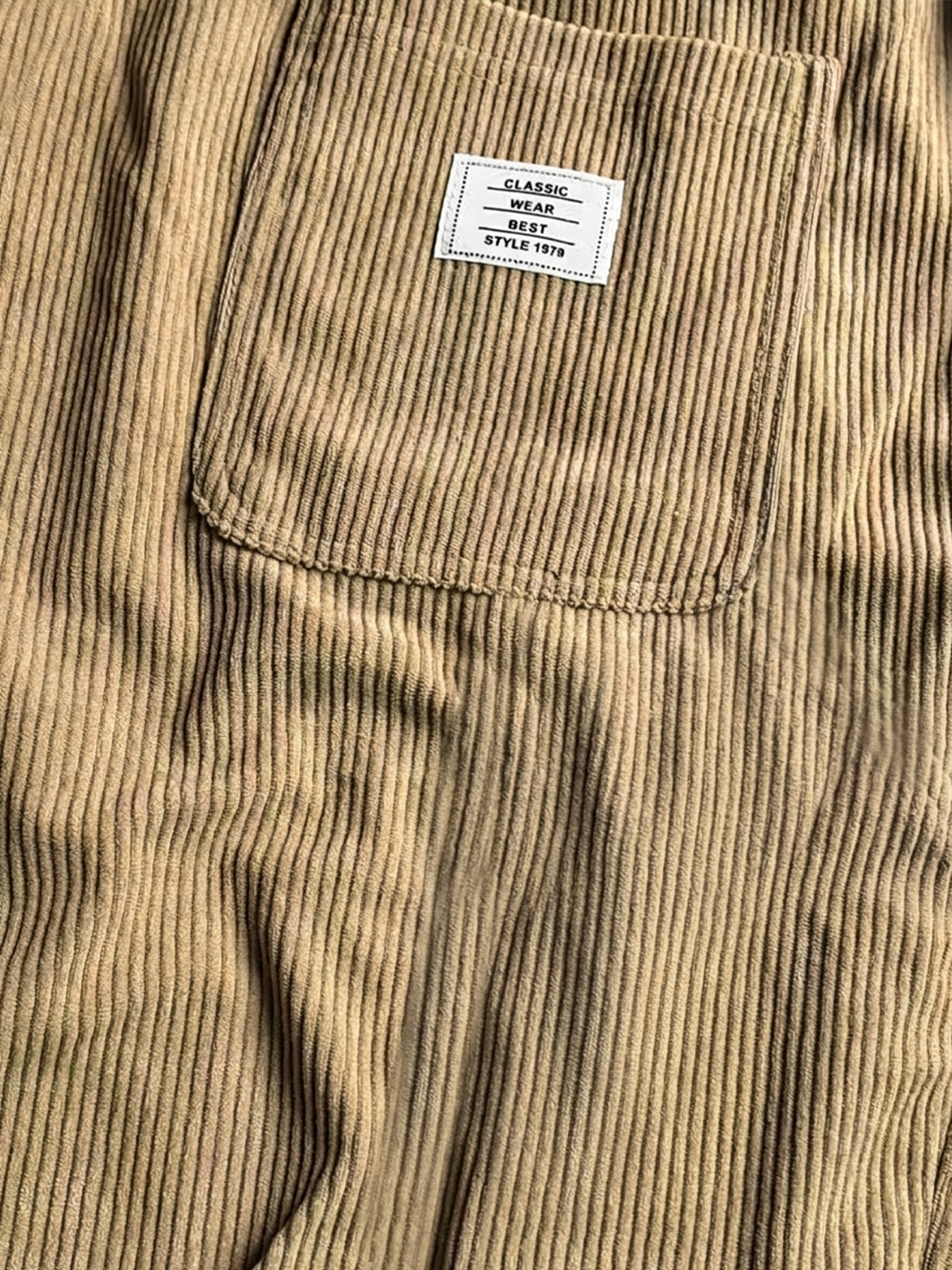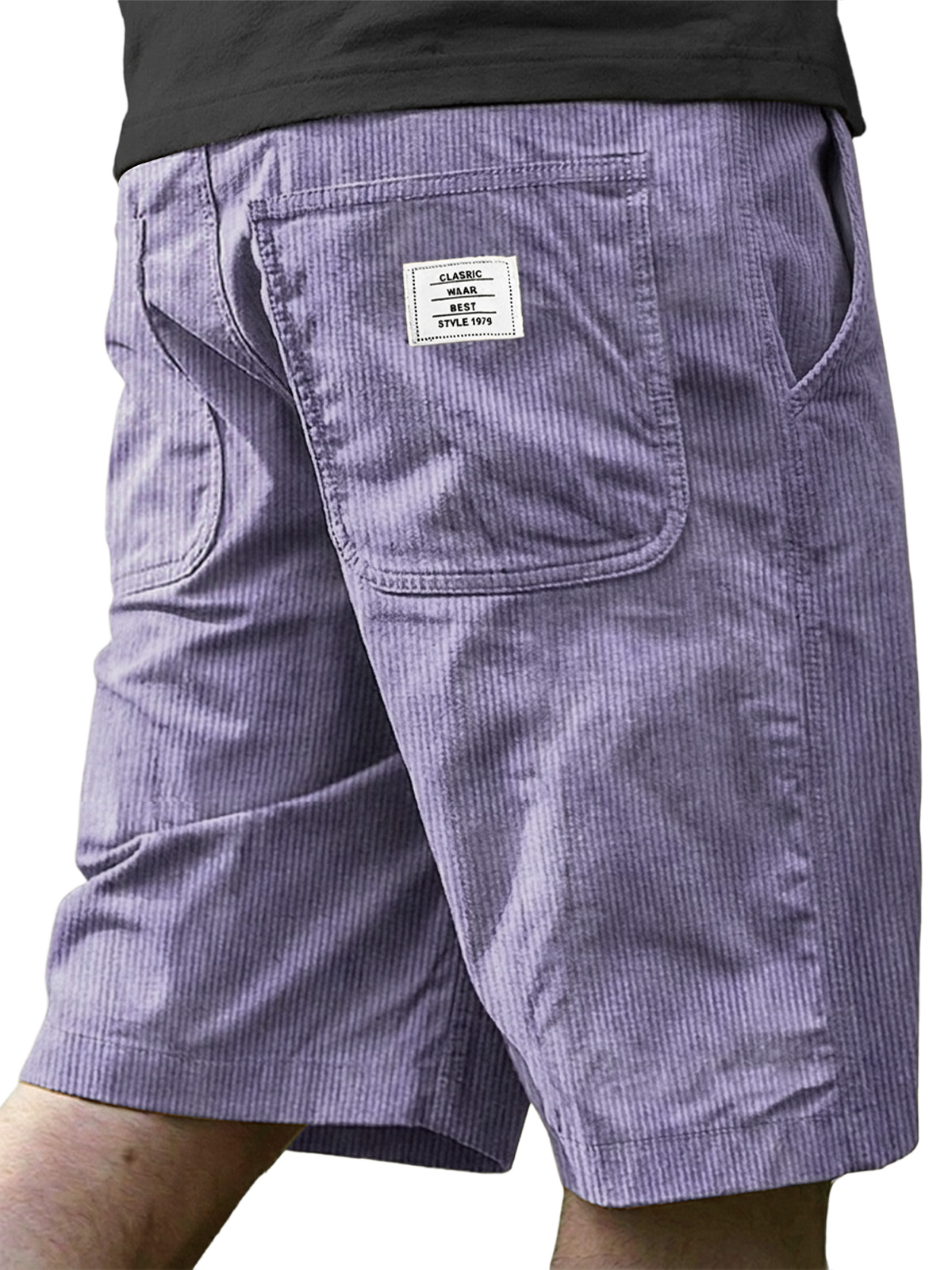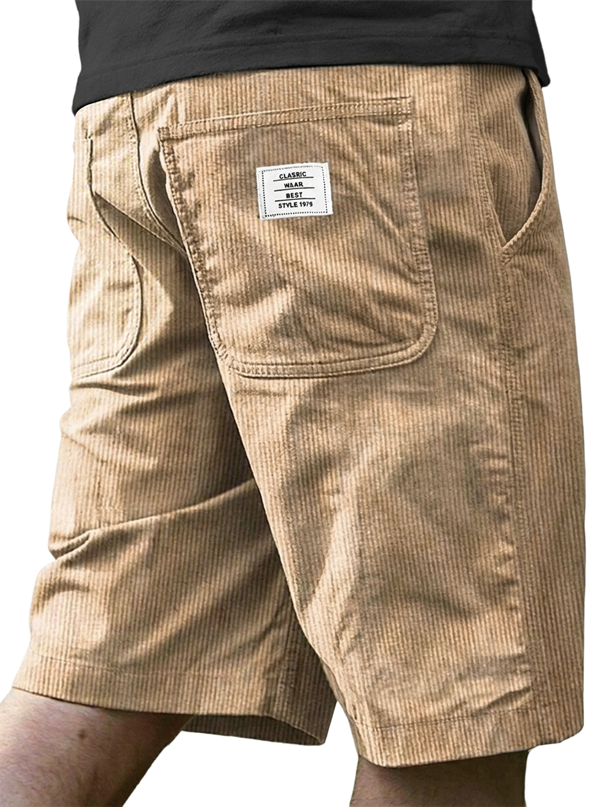 Men's Retro Corduroy Embroidered Logo Casual Shorts
