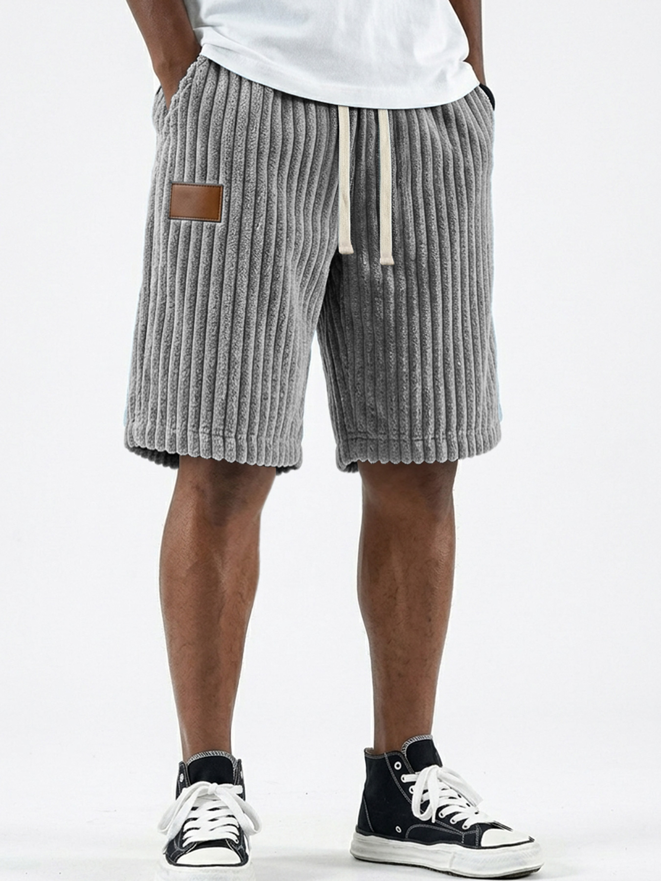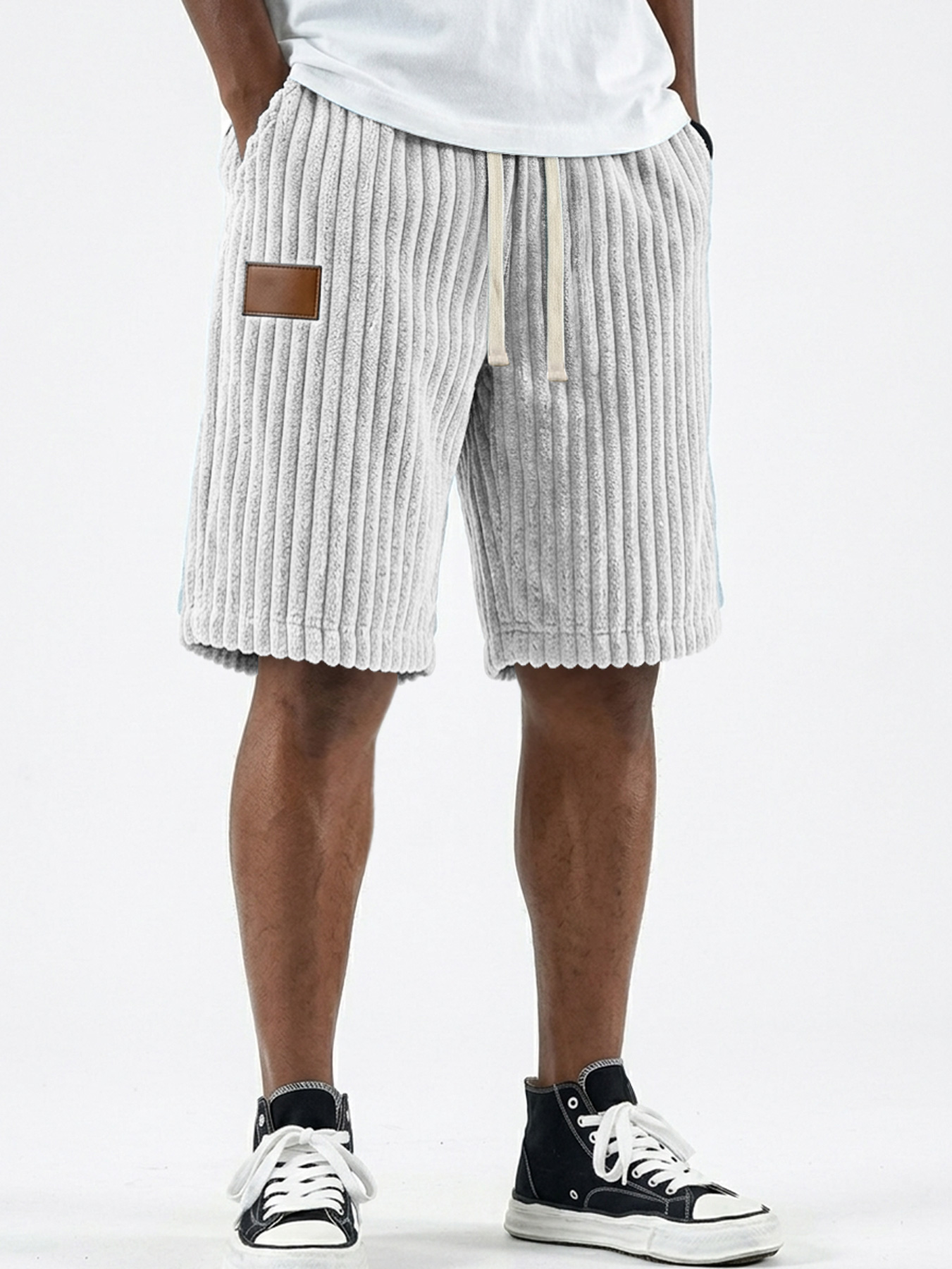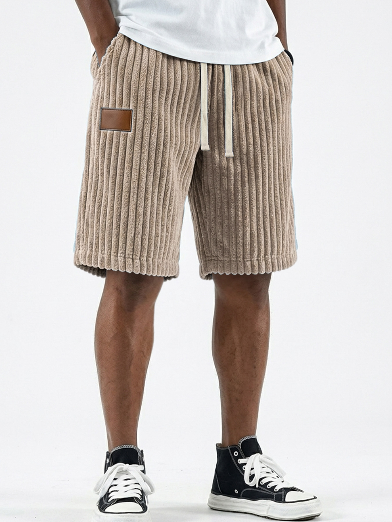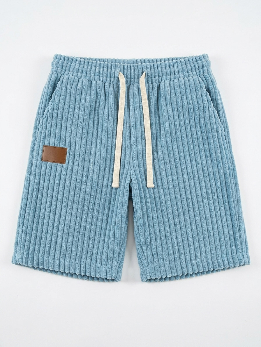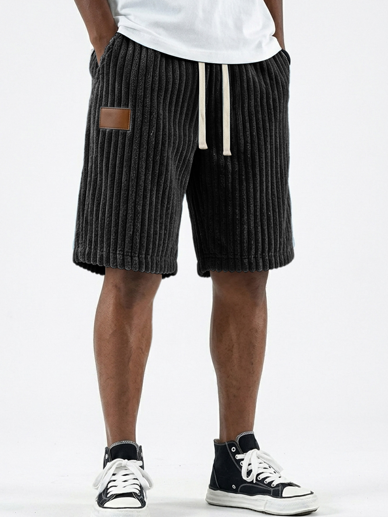 Men's Retro Corduroy Leather Label Casual Loose Shorts