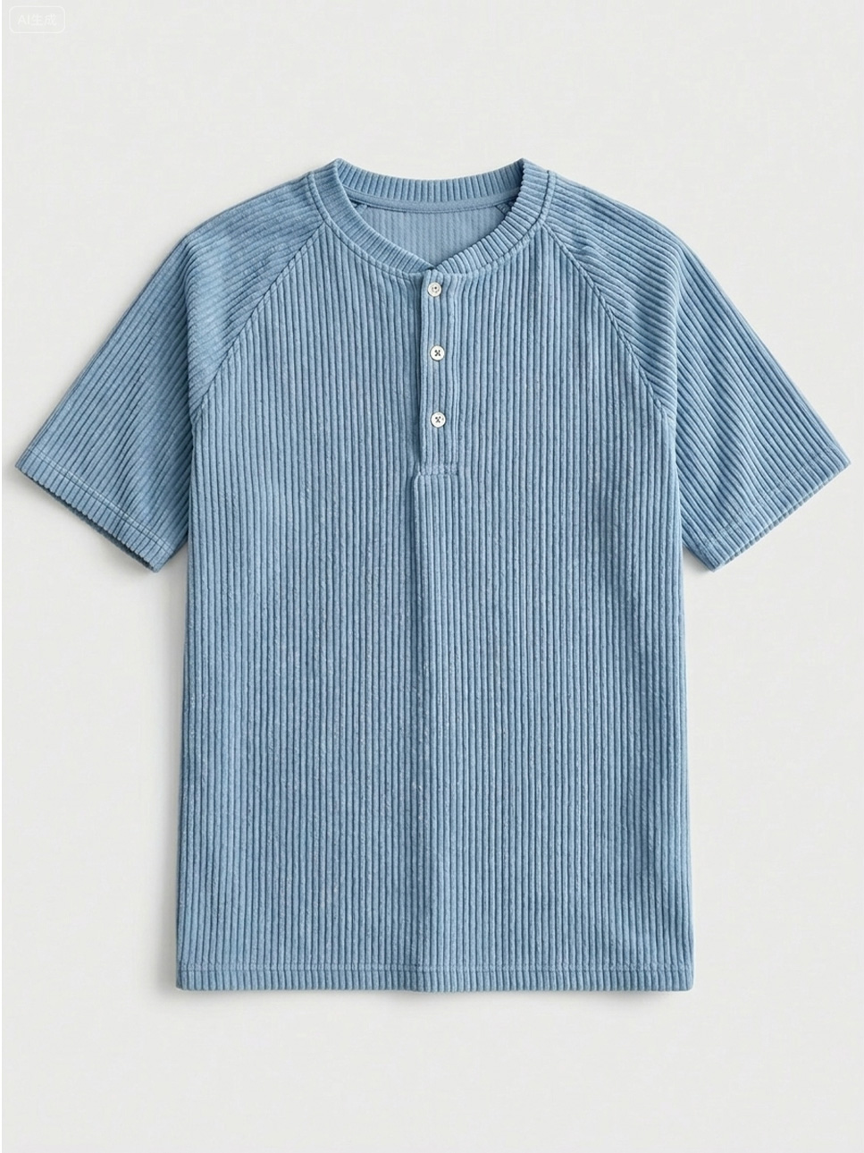 Men's Retro Corduroy Raglan Casual Short-Sleeve Henley Shirt