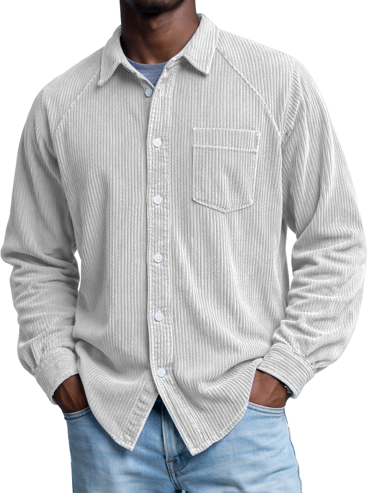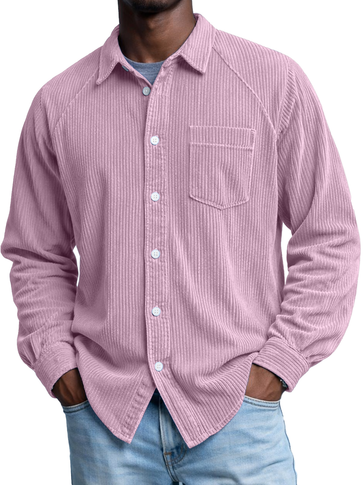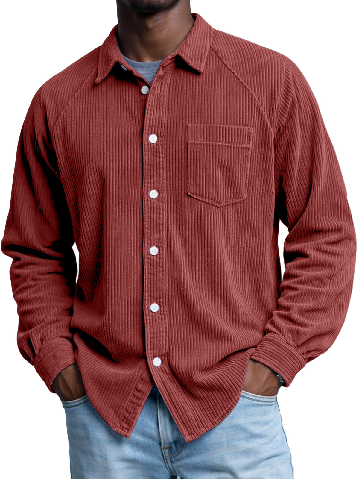 Men's Retro Corduroy Raglan Long-Sleeve Lapel Shirt