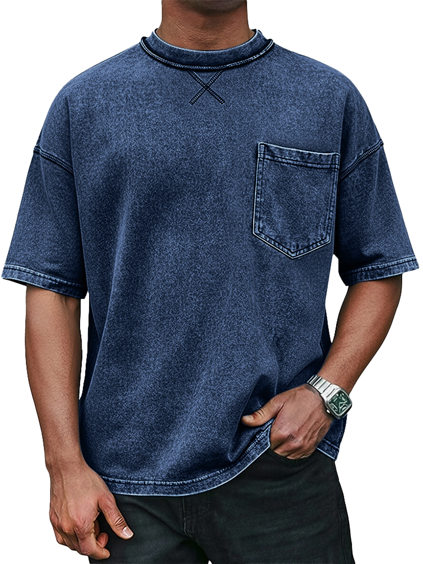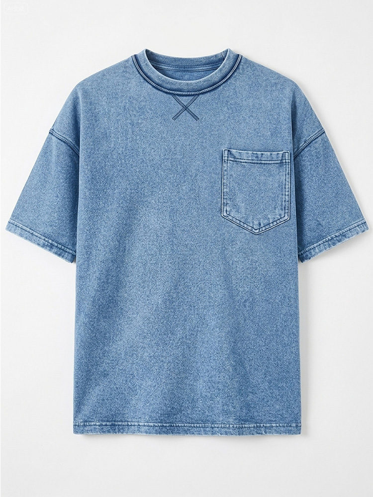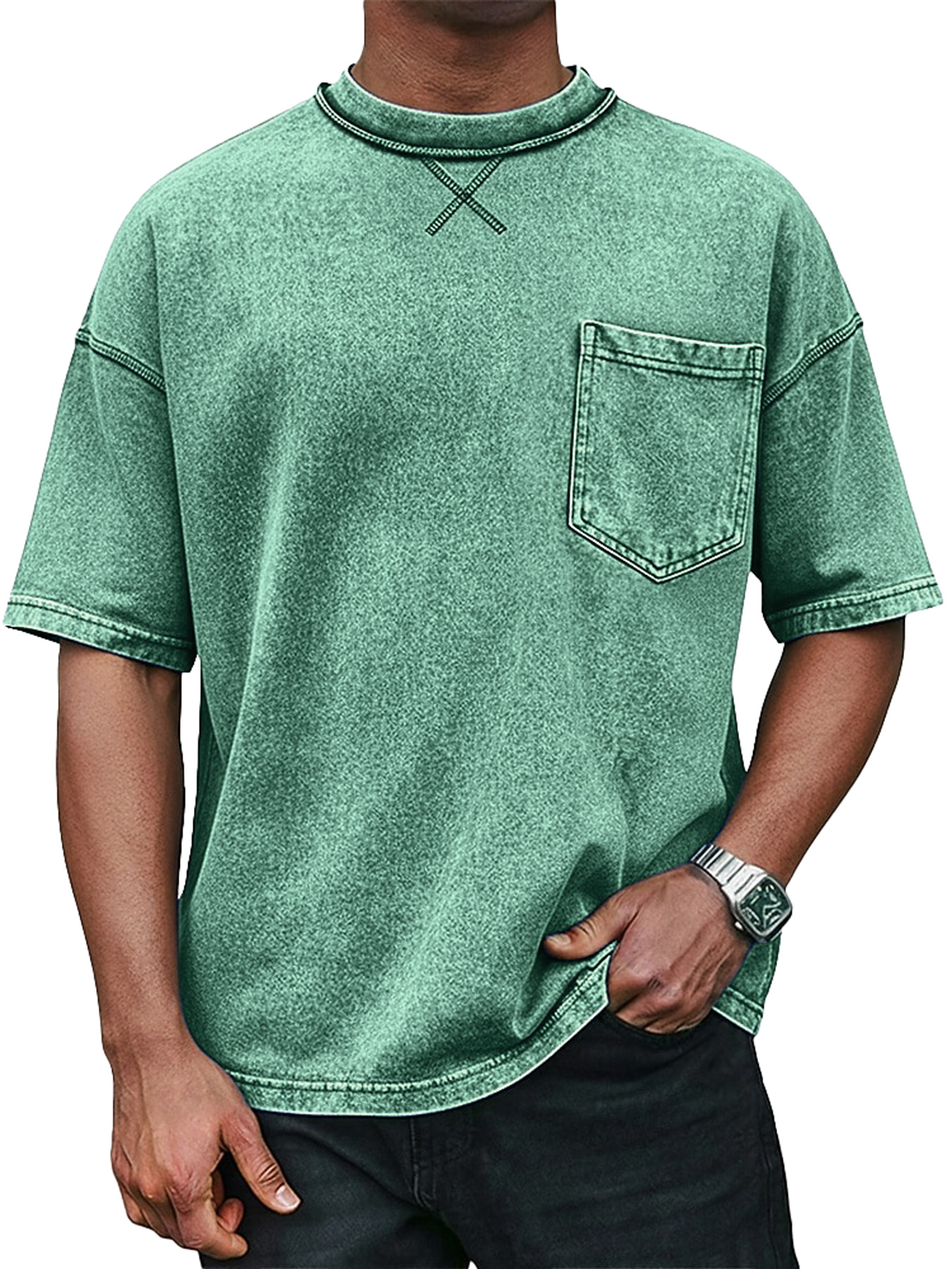 Men's Retro Crew Neck Crossover Design Casual Pocket Short-Sleeve T-Shirt