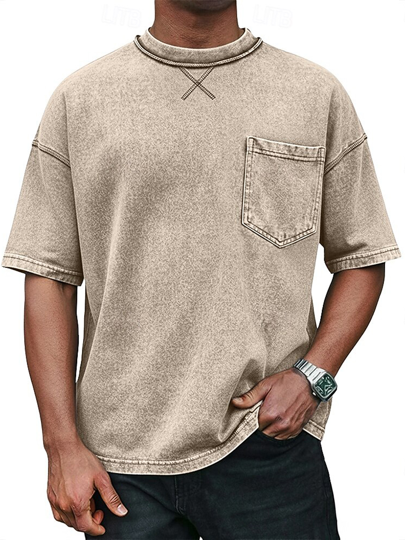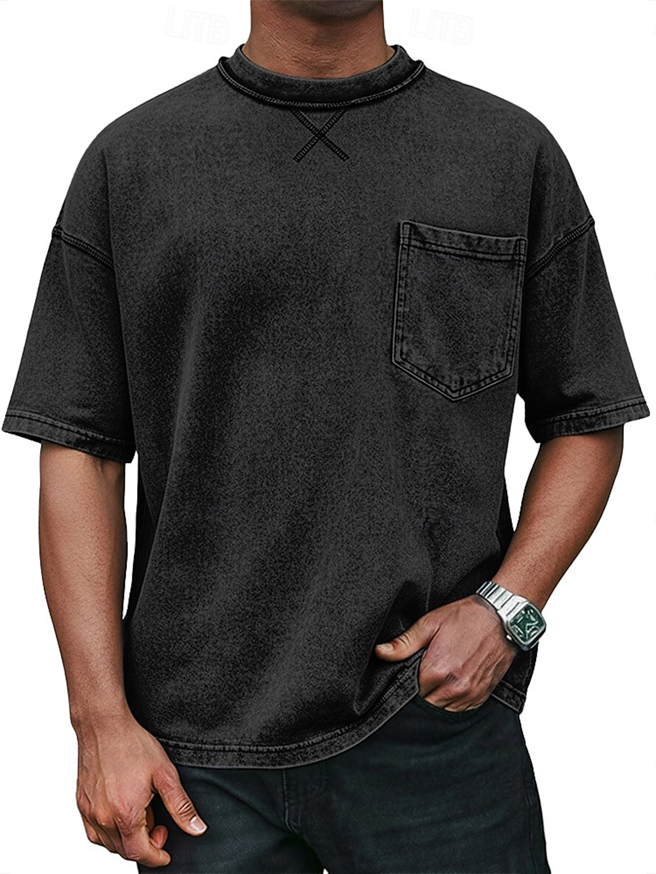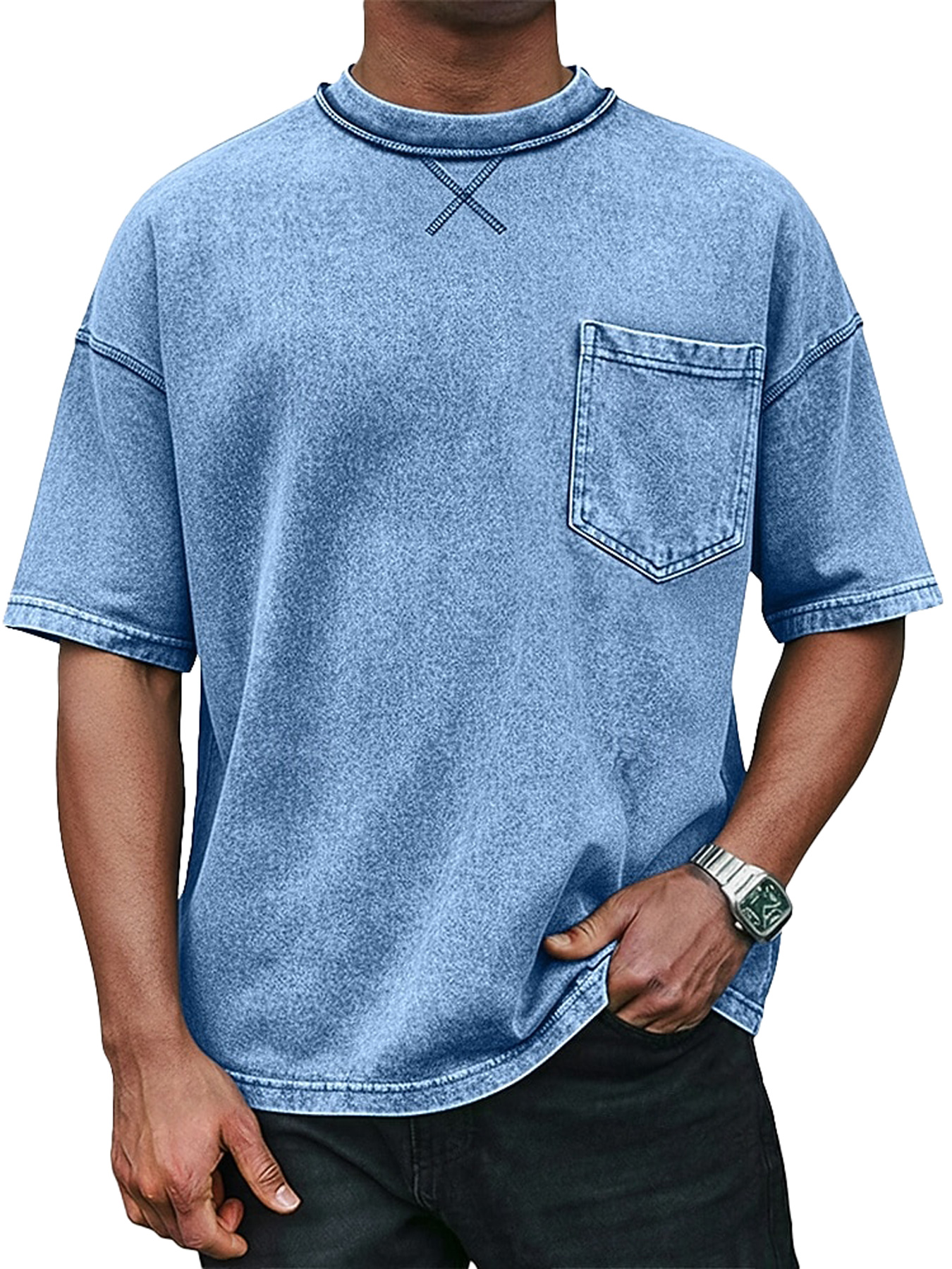 Men's Retro Crew Neck Crossover Design Casual Pocket Short-Sleeve T-Shirt
