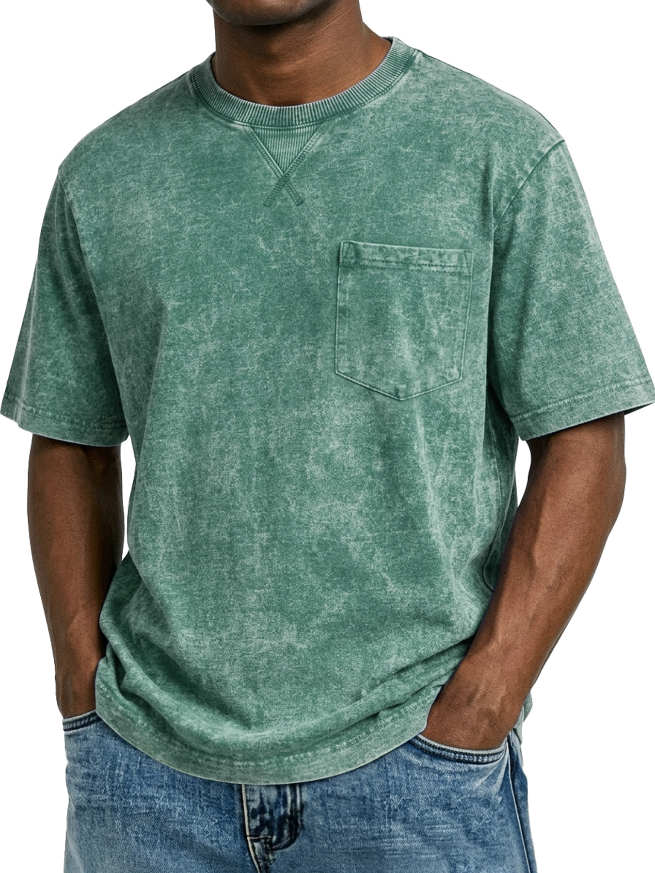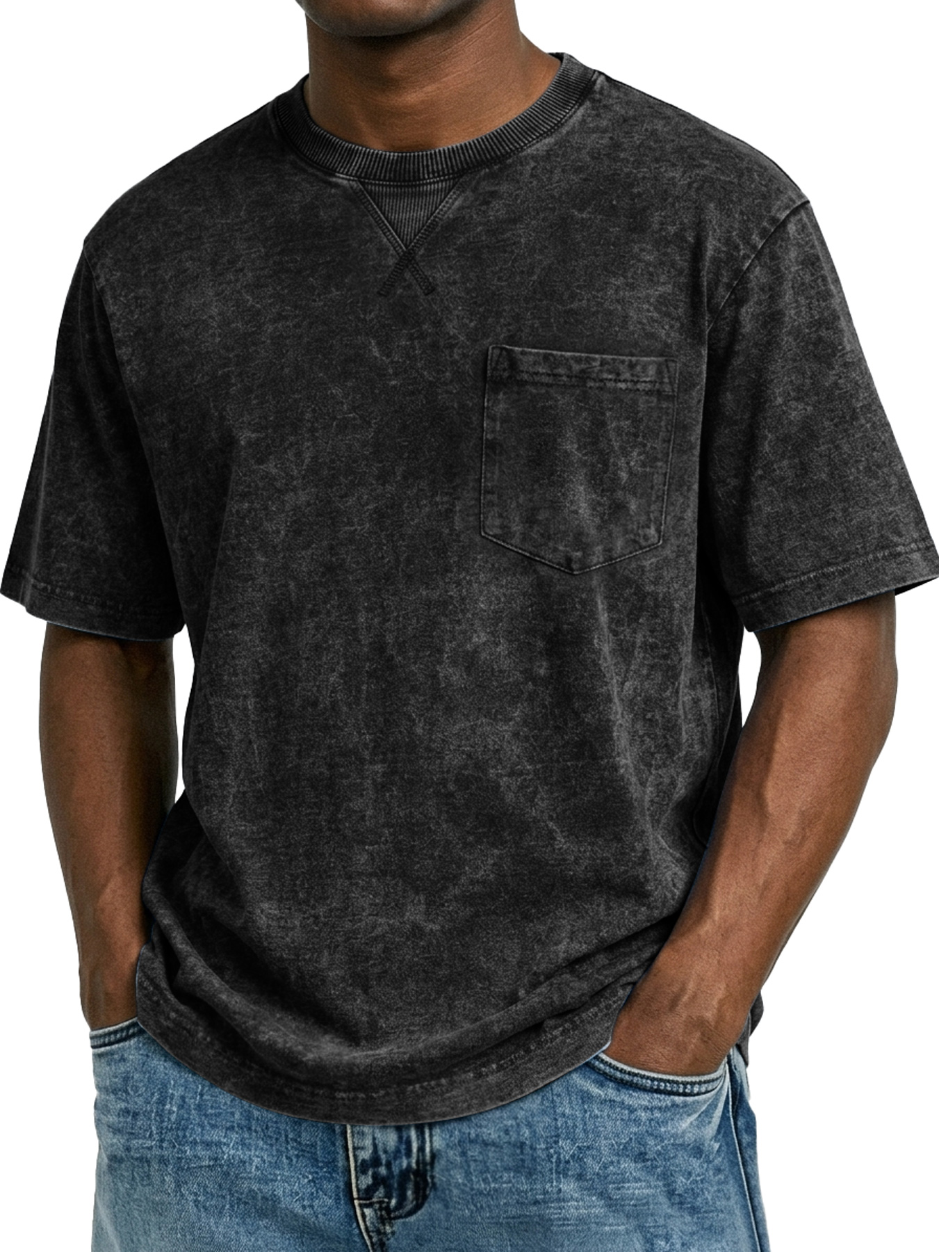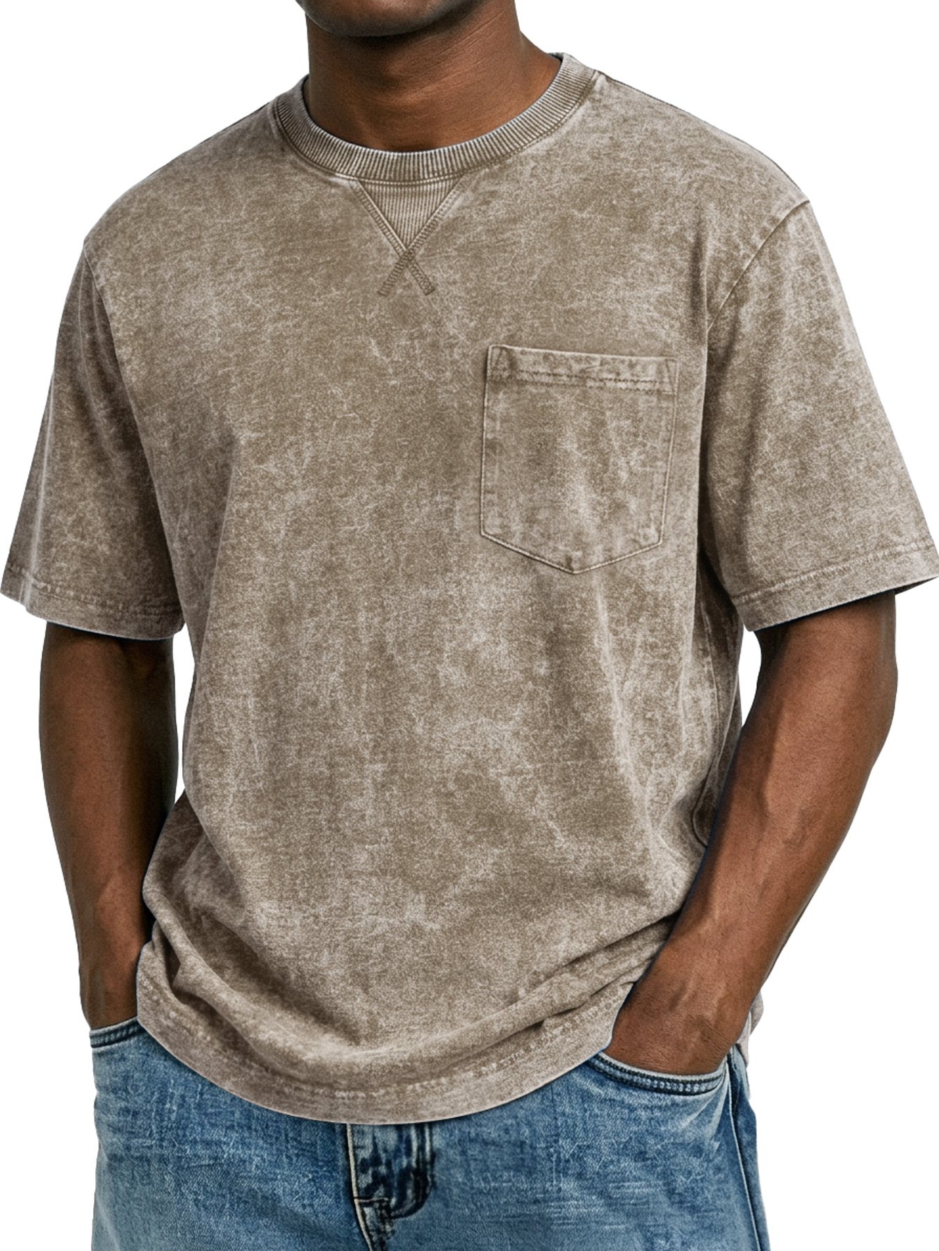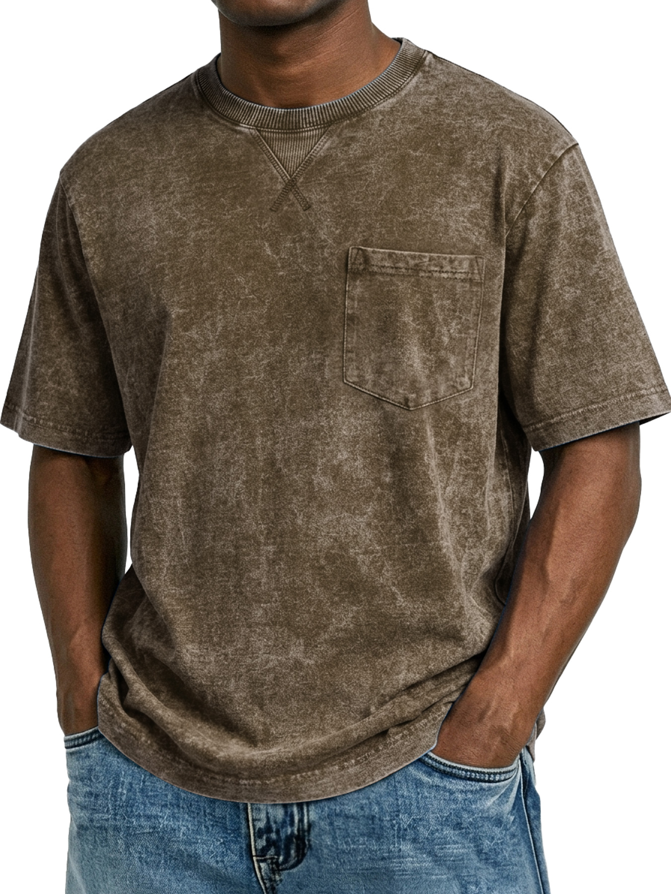 Men's Retro Cross-Strip Design Casual Crew Neck Pocket Short-Sleeve T-Shirt