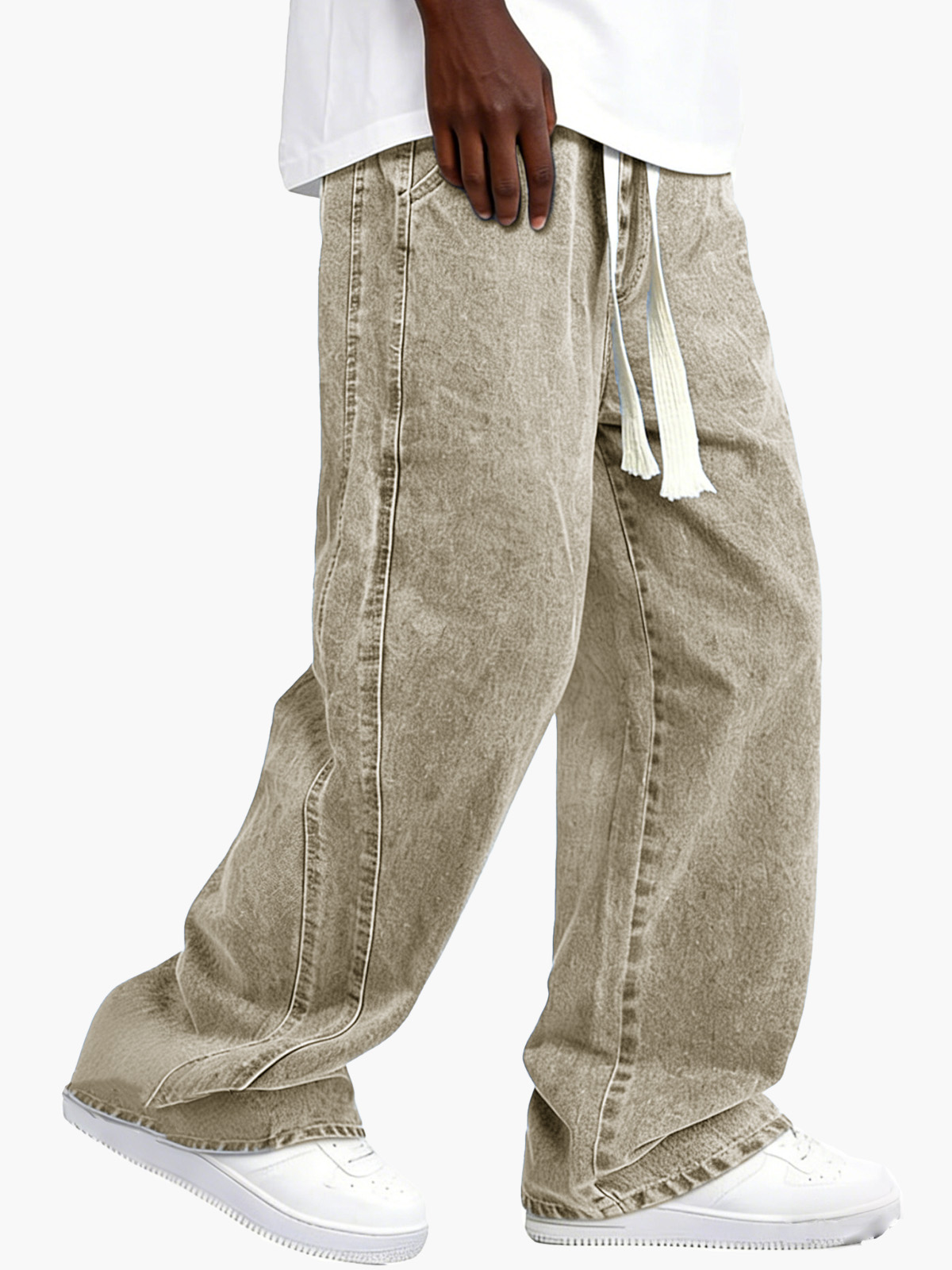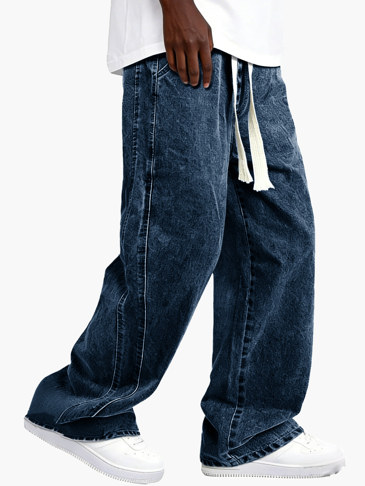 Men's Retro Distressed Elastic Waist Drawstring Loose Pocket Pants