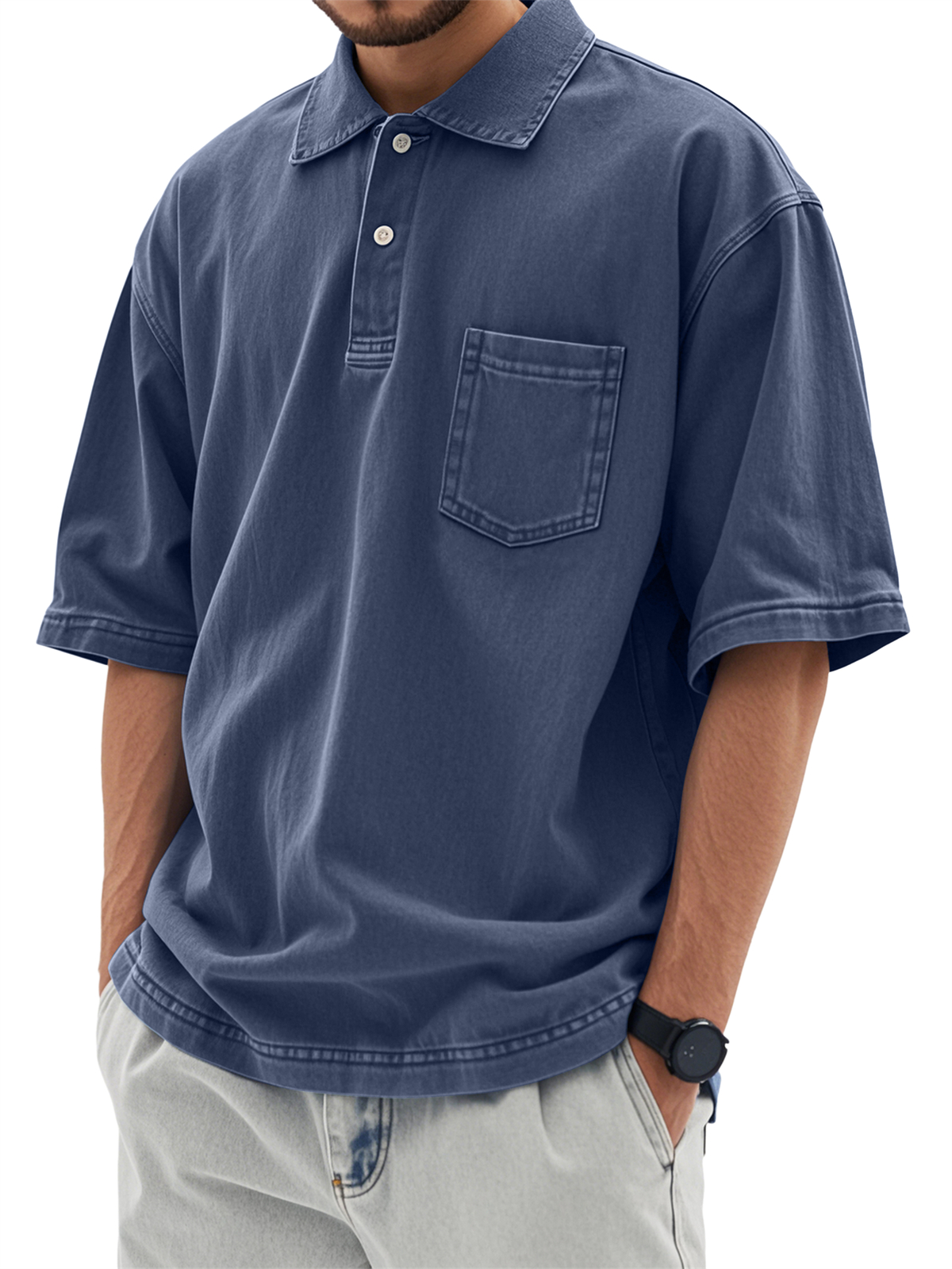 Men's Retro Distressed Washed Workwear Pocket Short-sleeved Polo Shirt