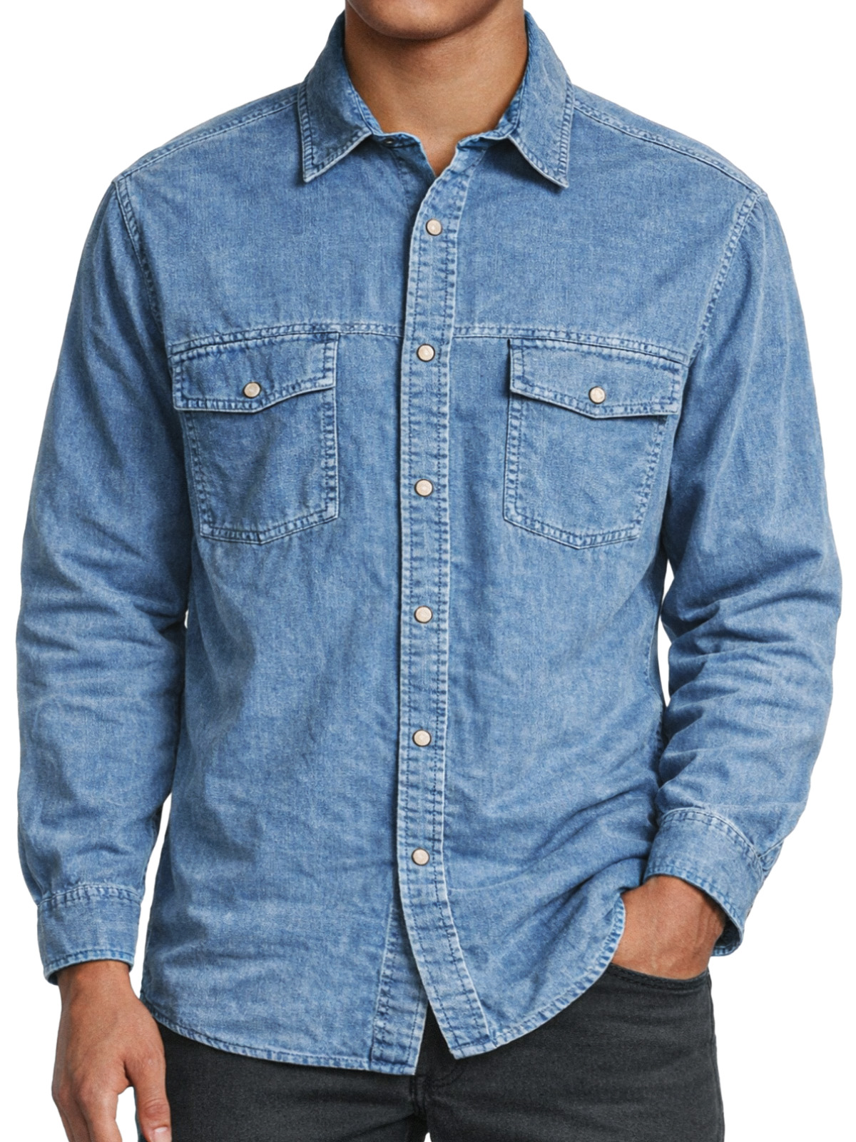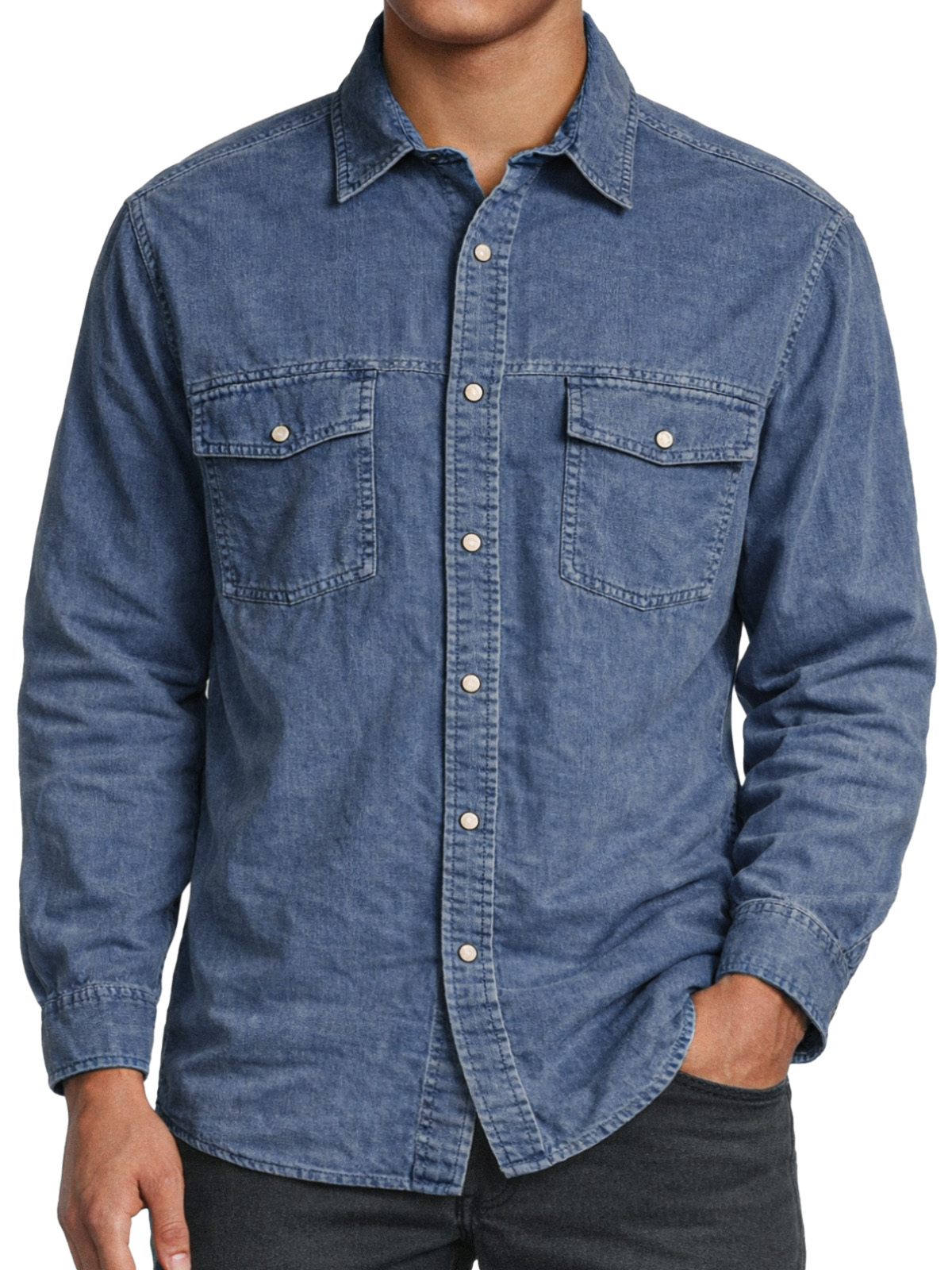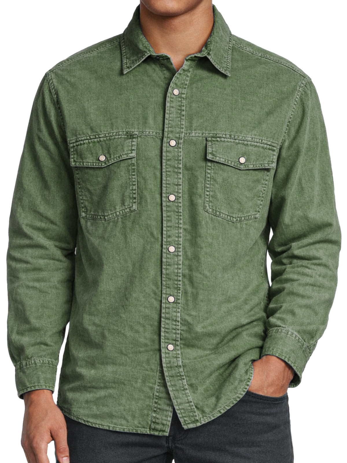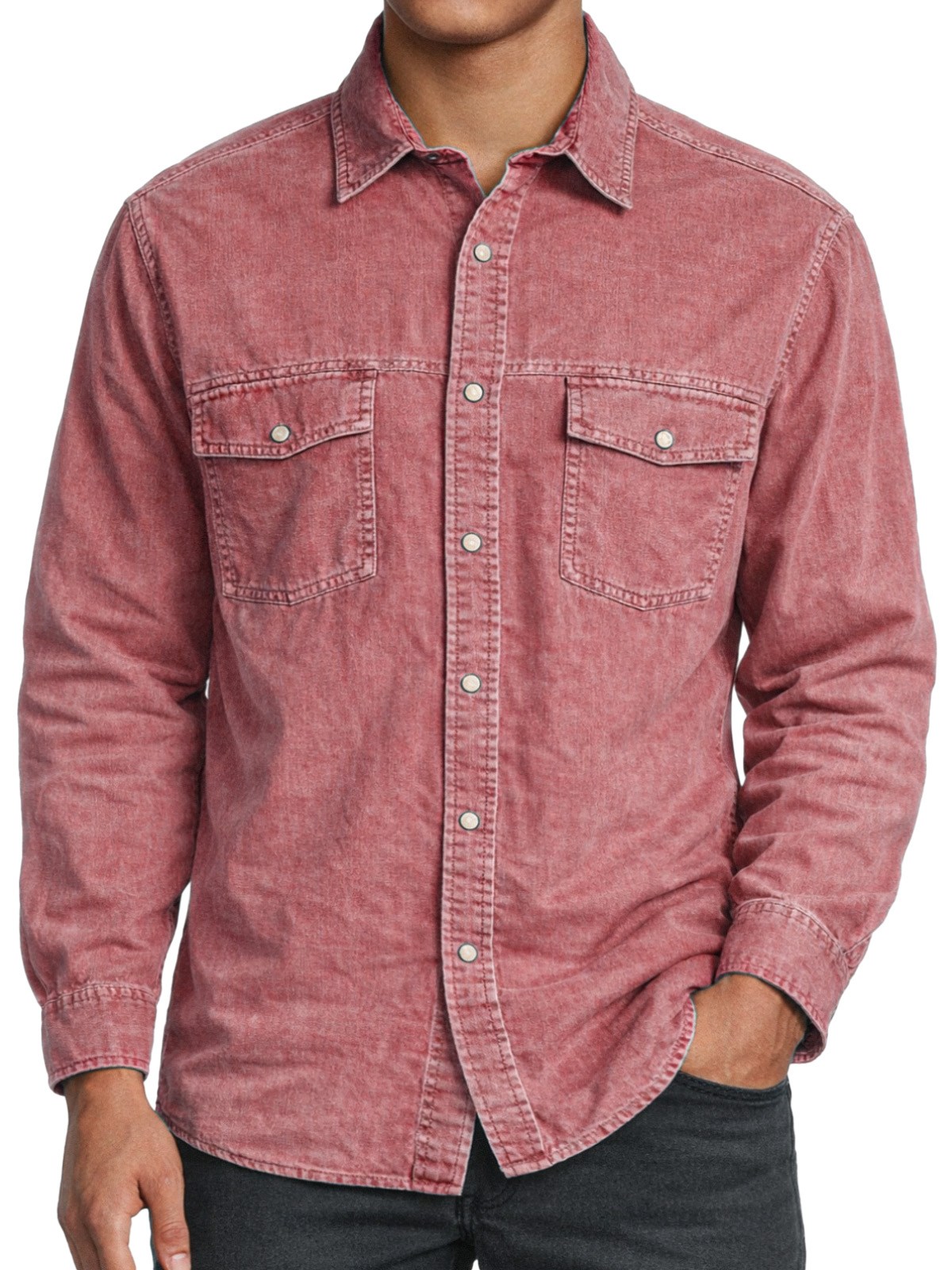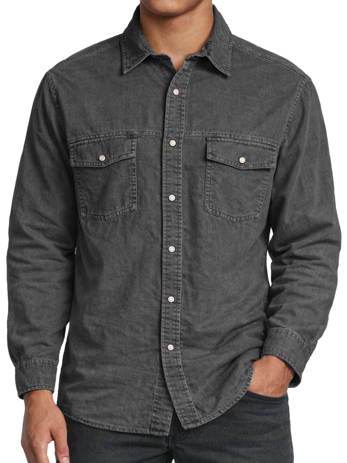 Men's Retro Double-pocket Collared Long-sleeved Shirt