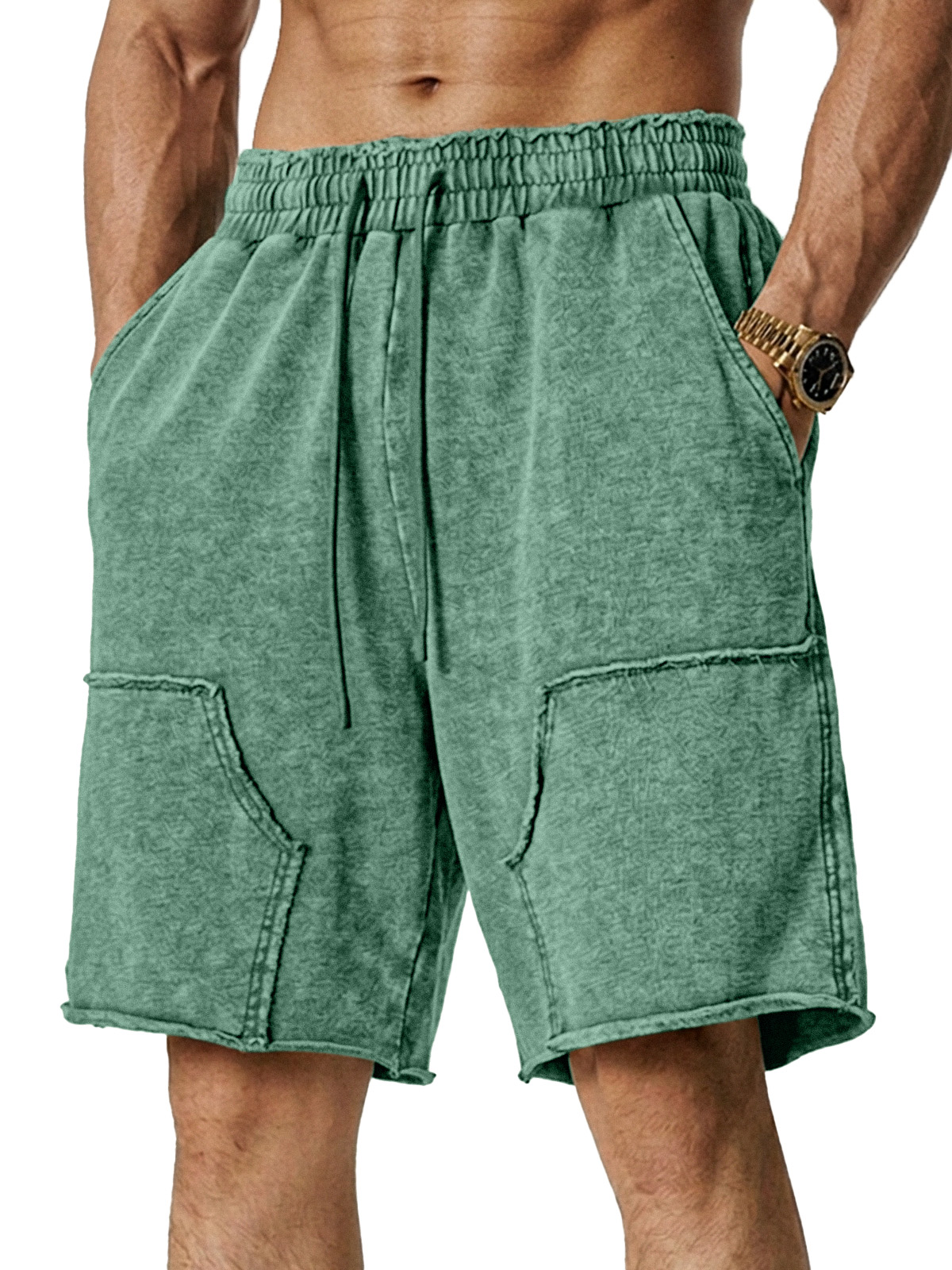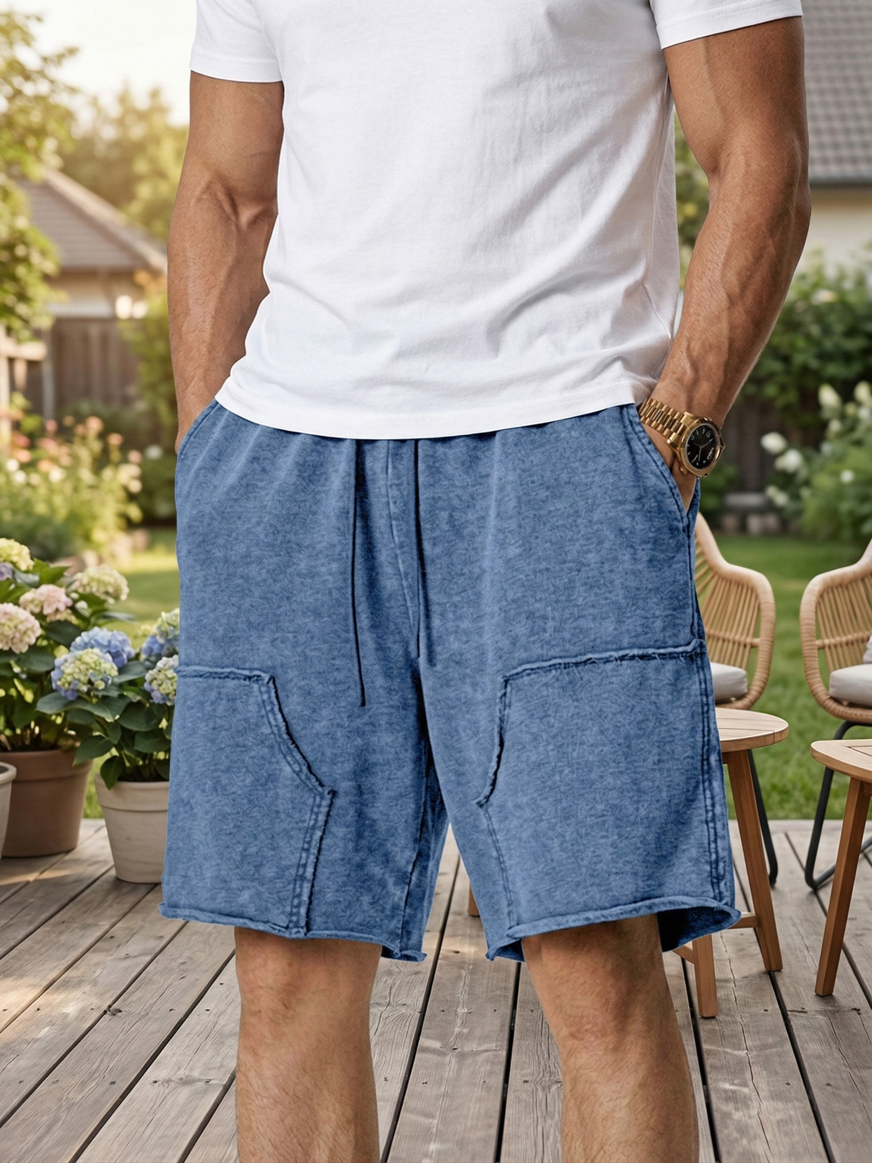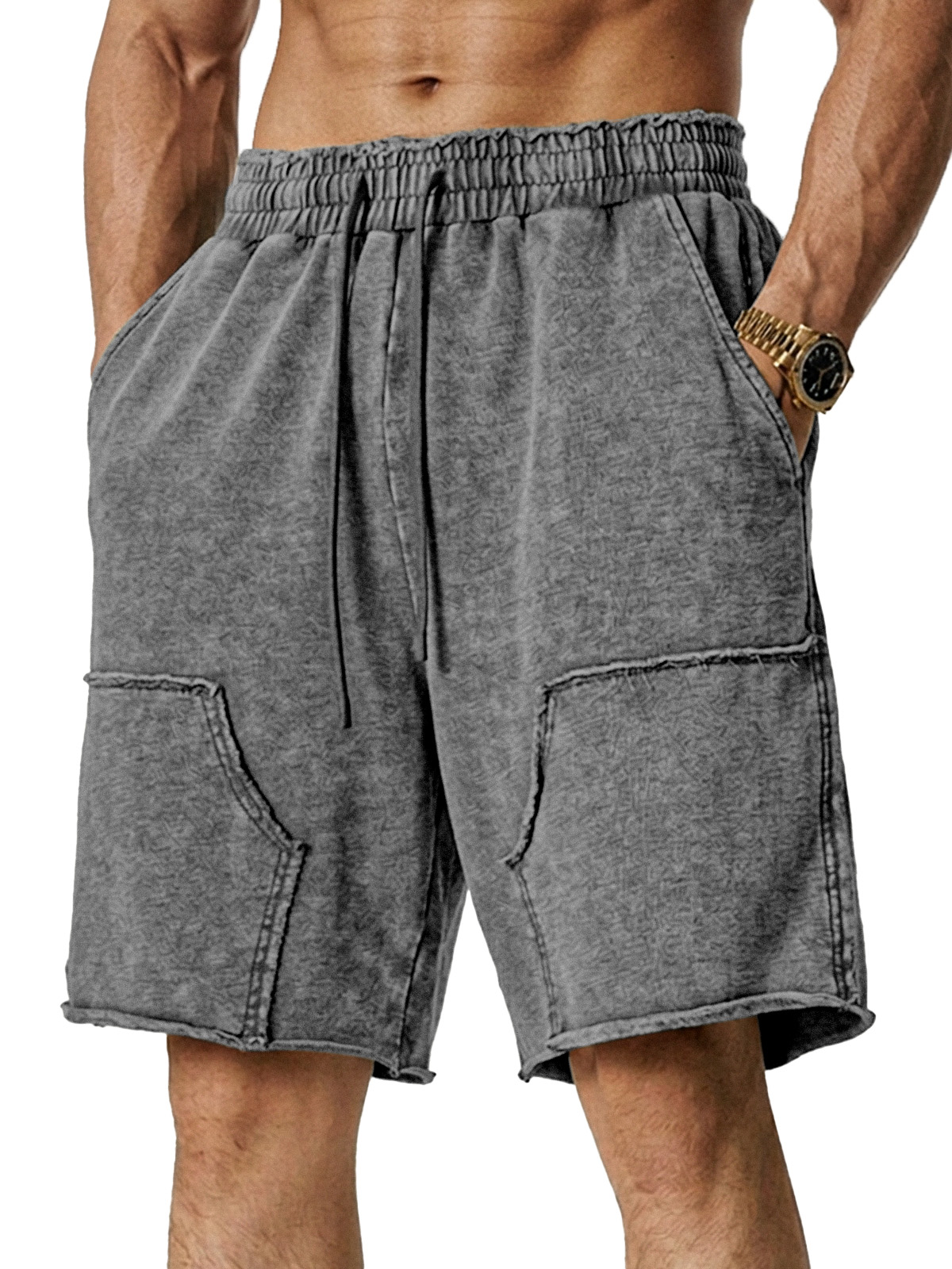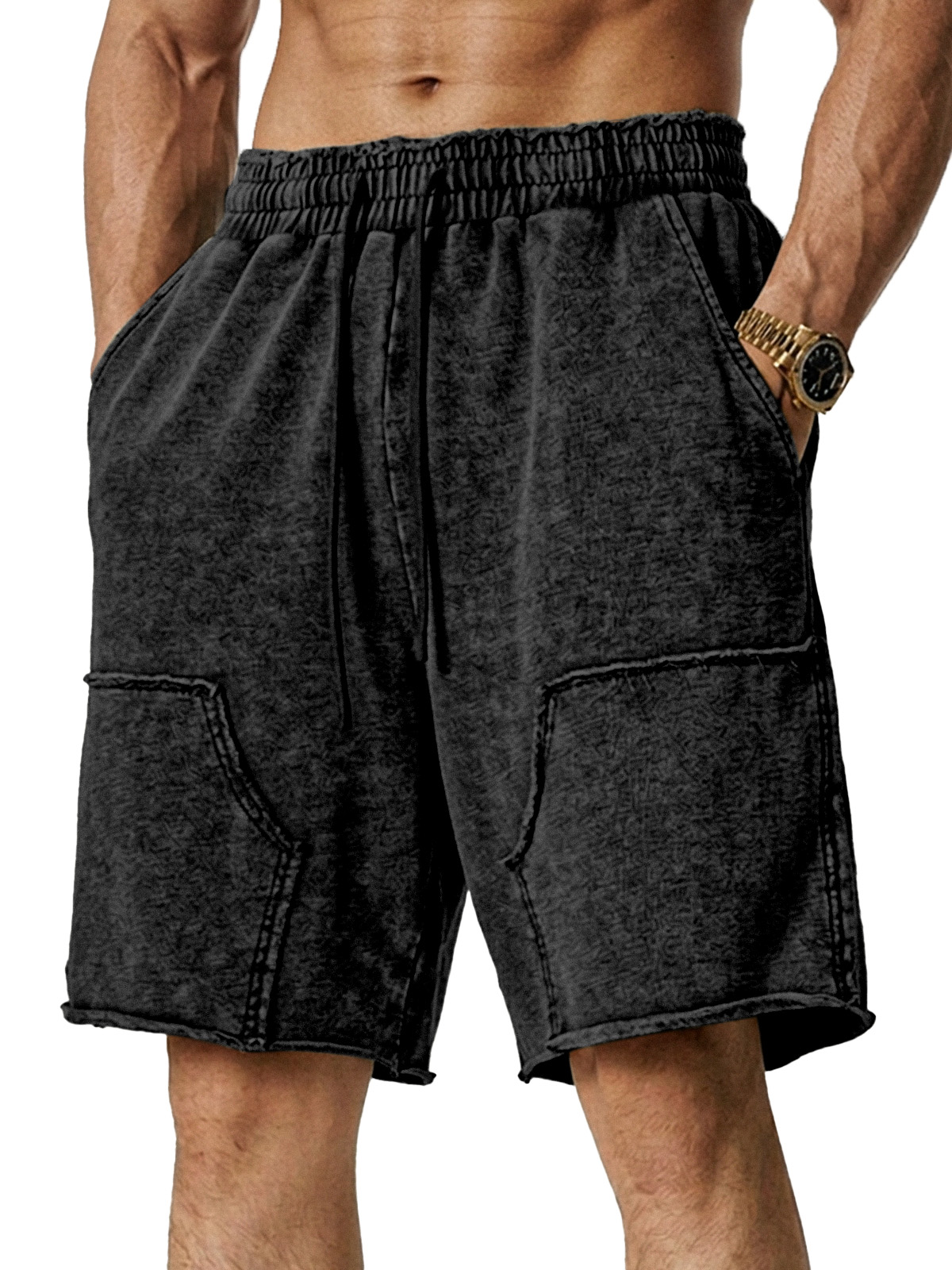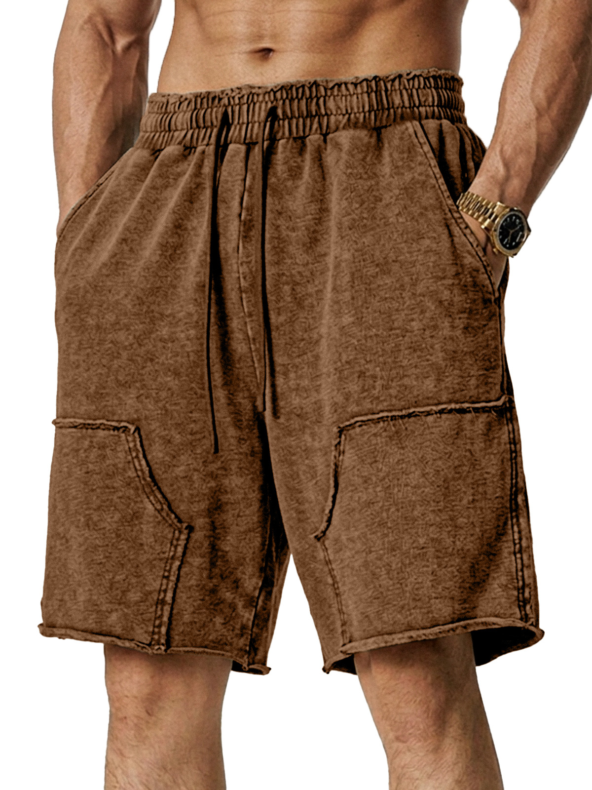 Men's Retro Loose Solid Color Stitching Design Casual Shorts
