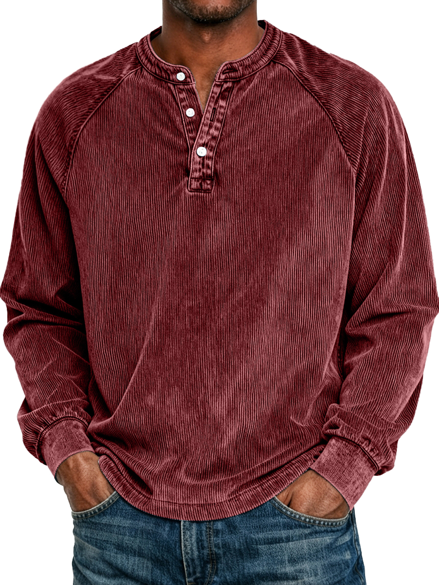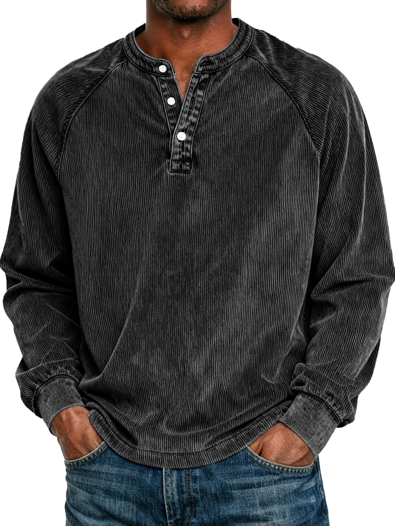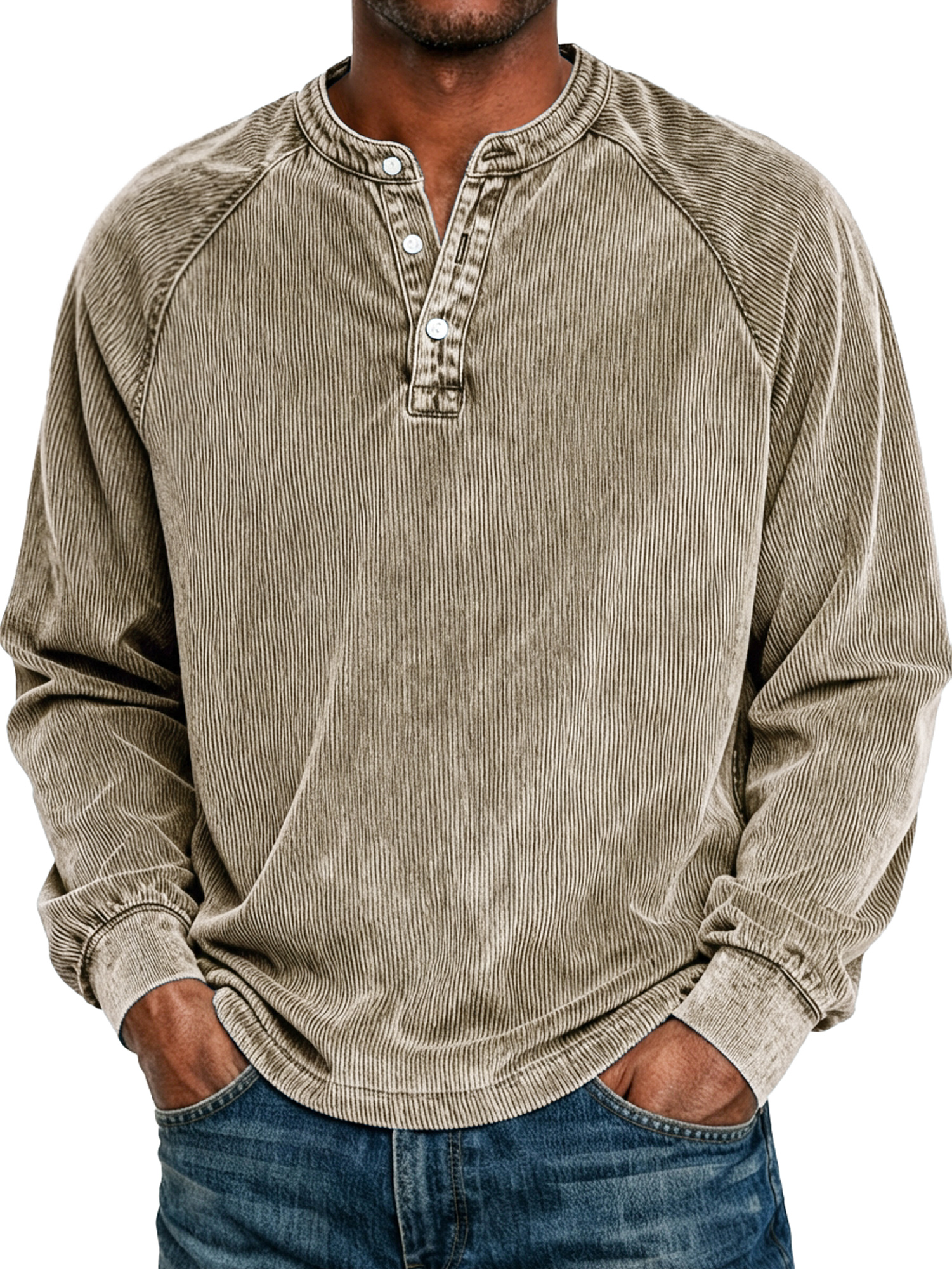 Men's Retro Raglan Corduroy Casual Long-Sleeve Henley Shirt