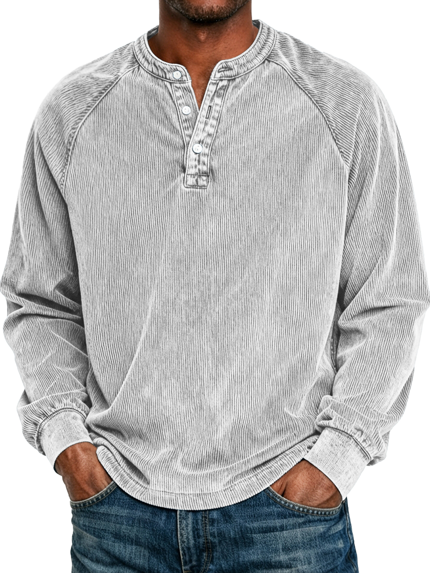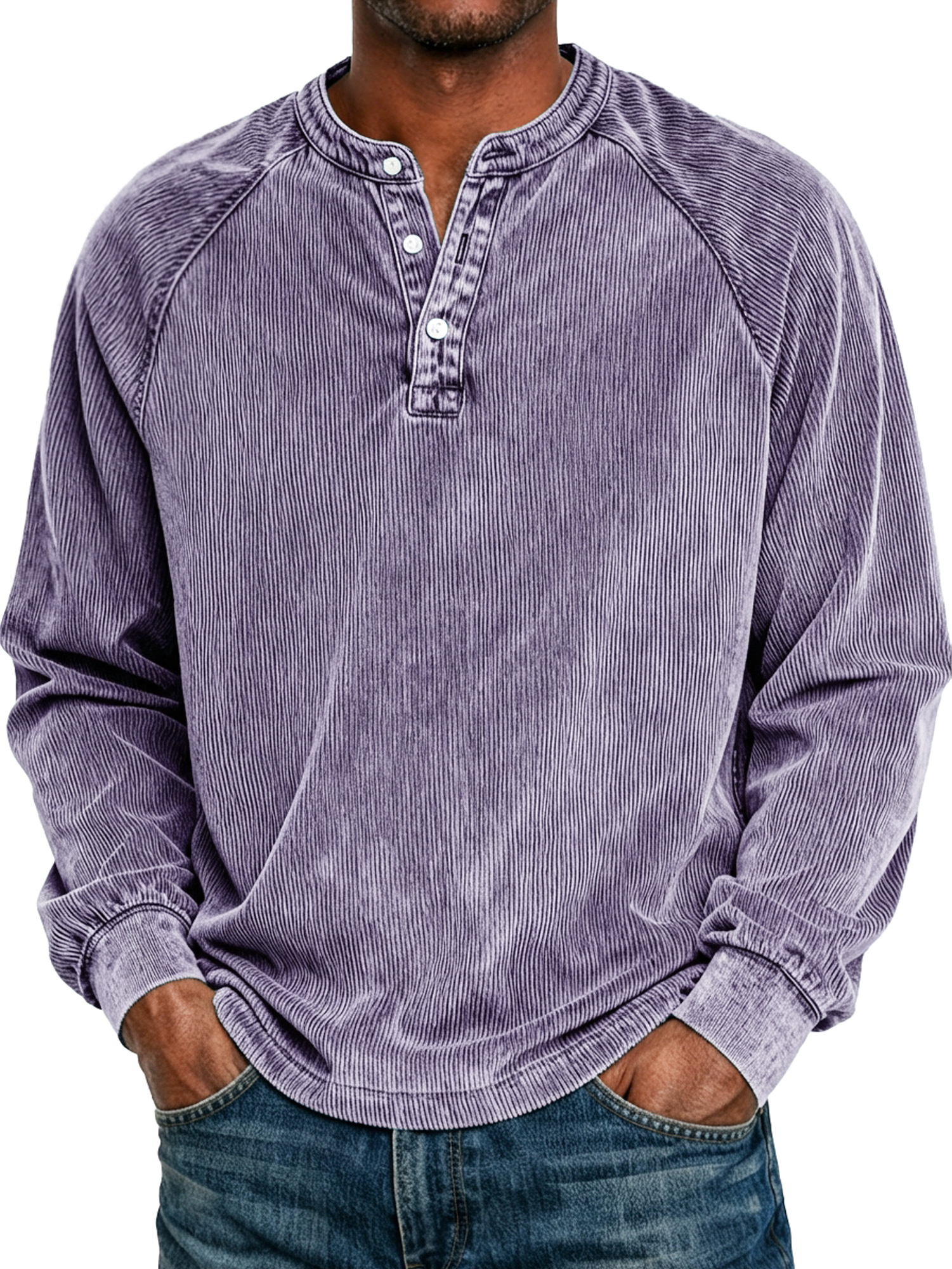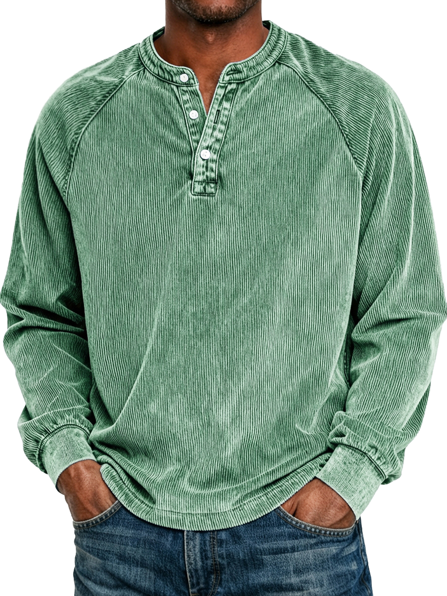 Men's Retro Raglan Corduroy Casual Long-Sleeve Henley Shirt