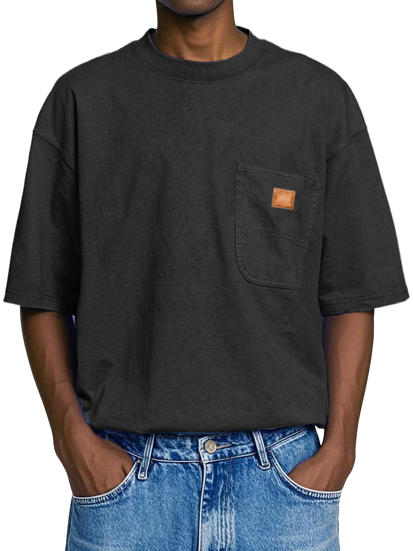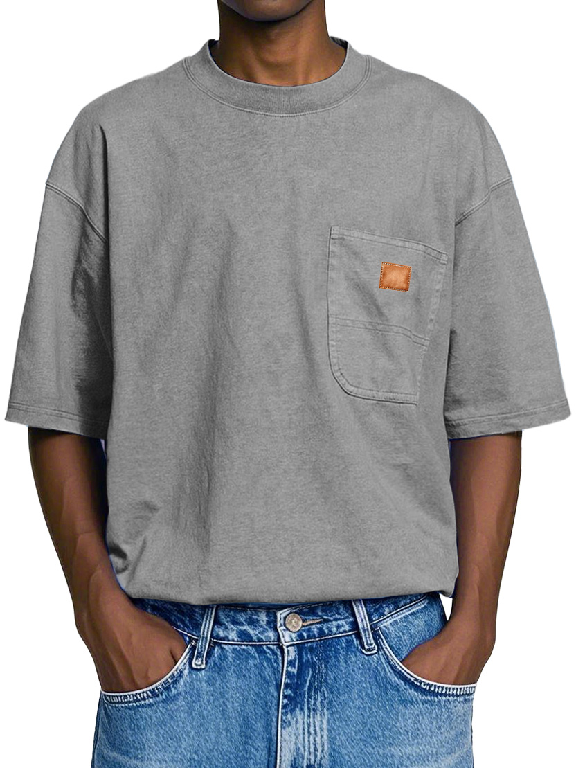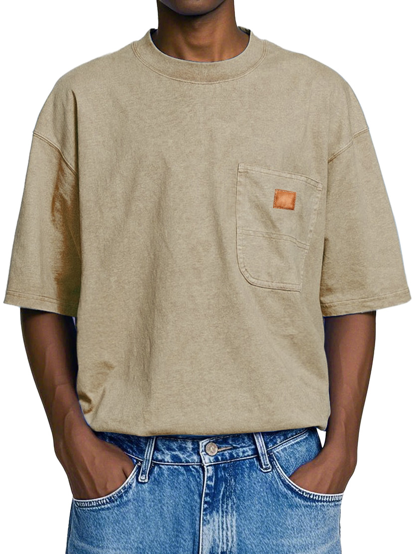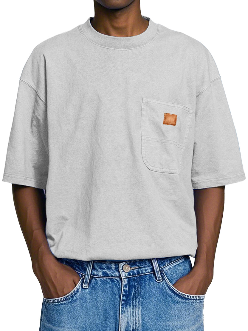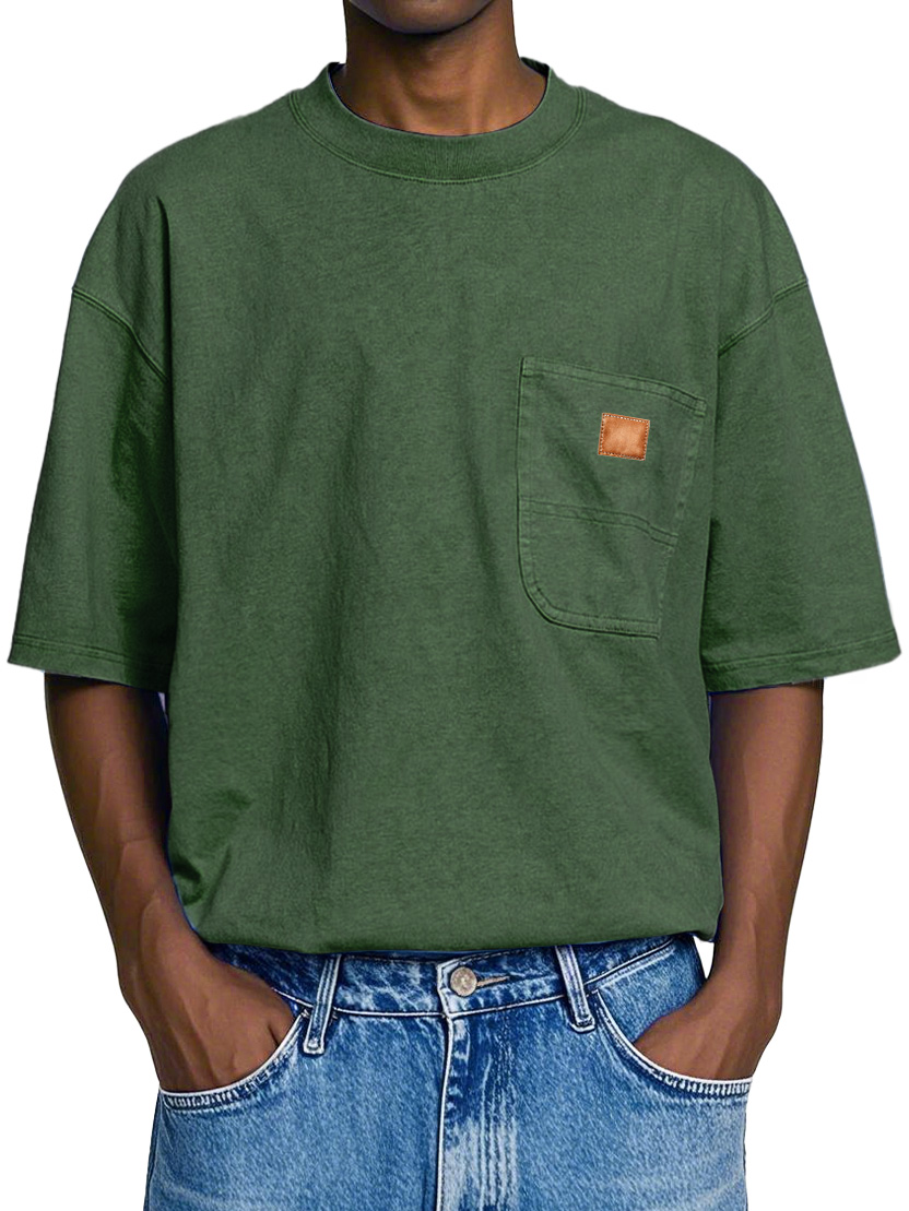 Men's Retro Round Neck Pocket Casual Workwear Short Sleeve T-Shirt