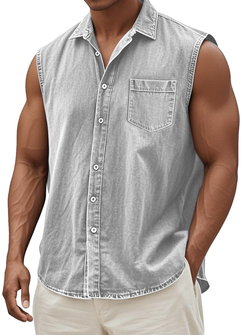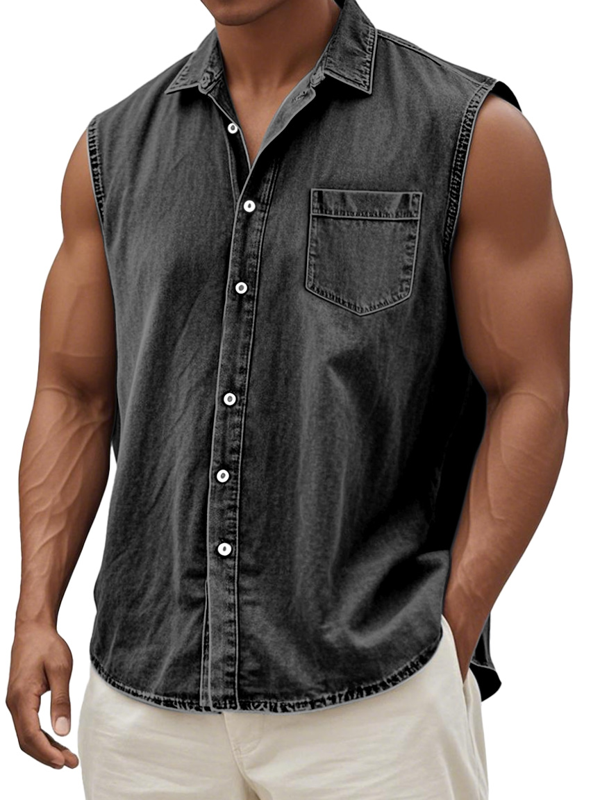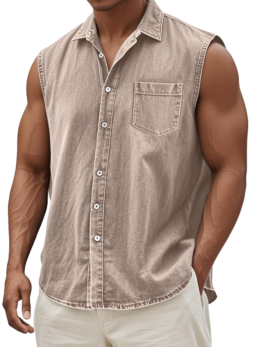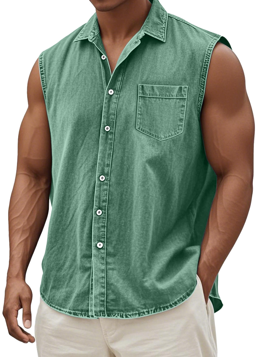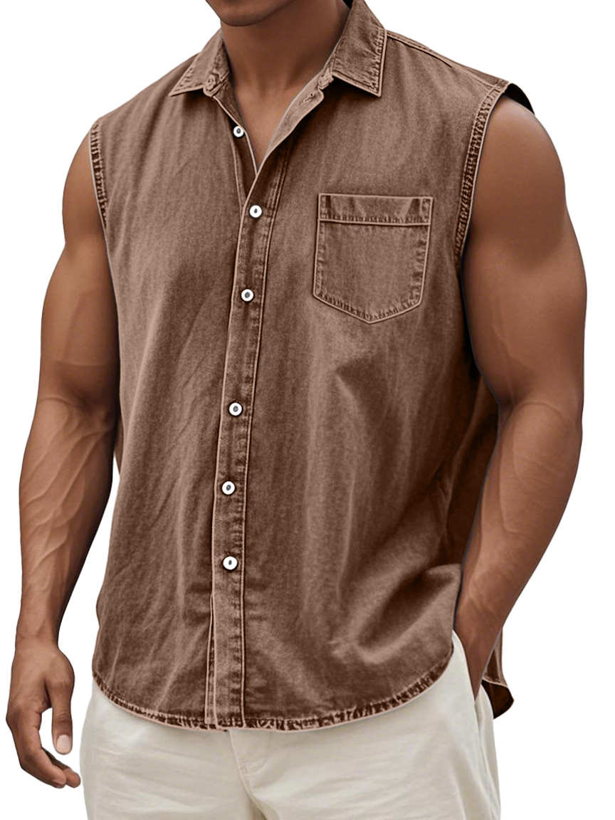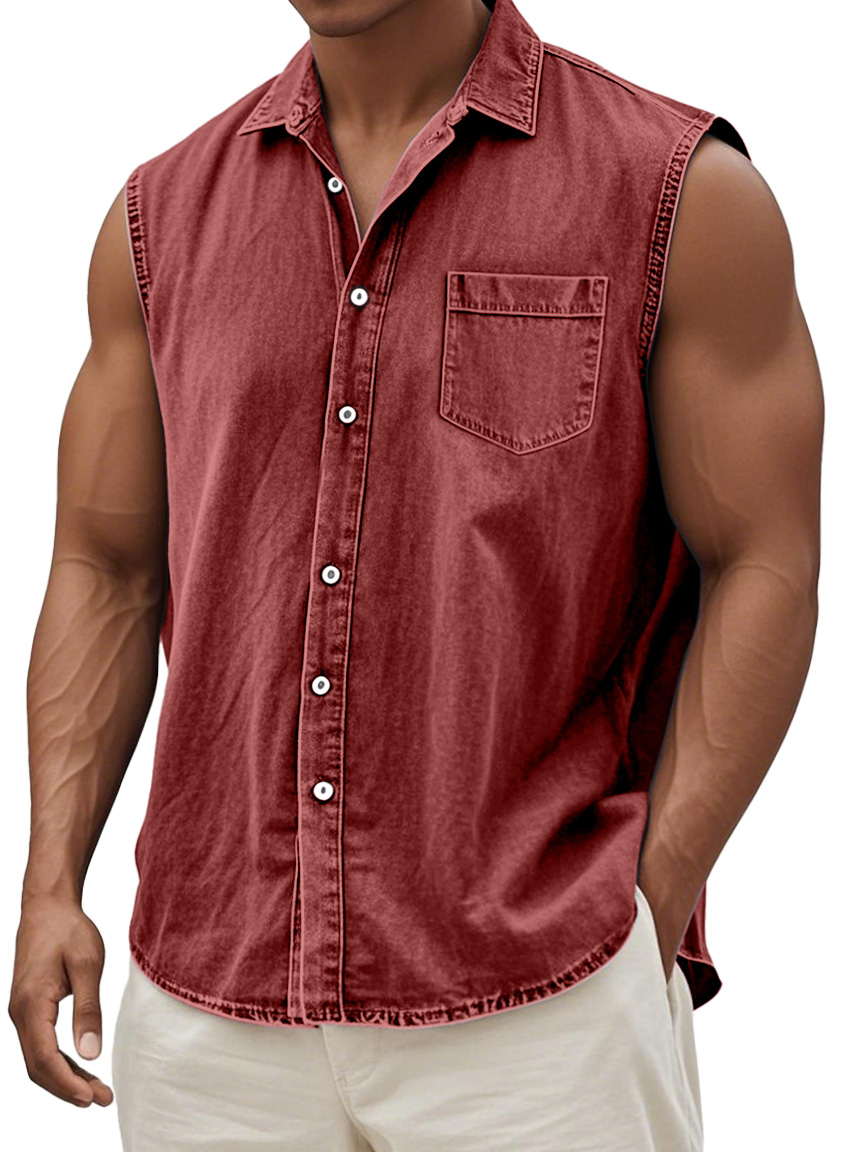 Men's Retro Solid Color Casual Comfortable Sleeveless Lapel Pocket Shirt