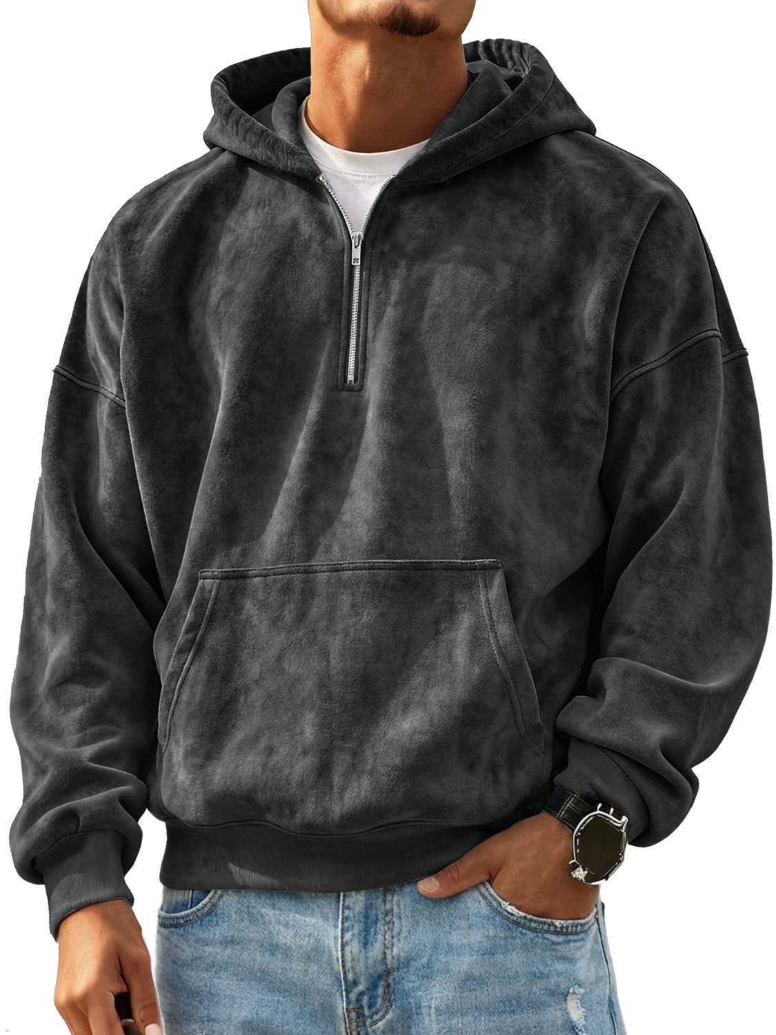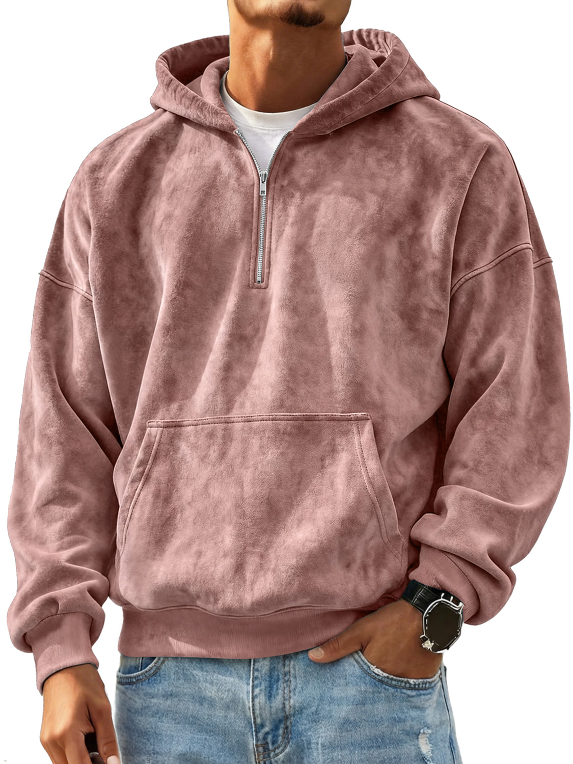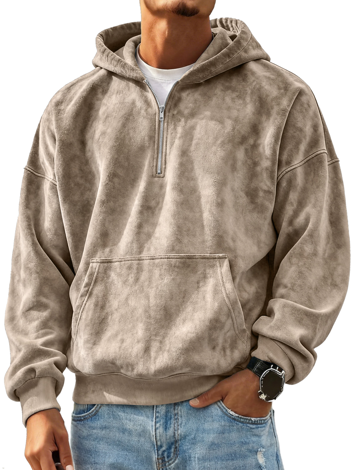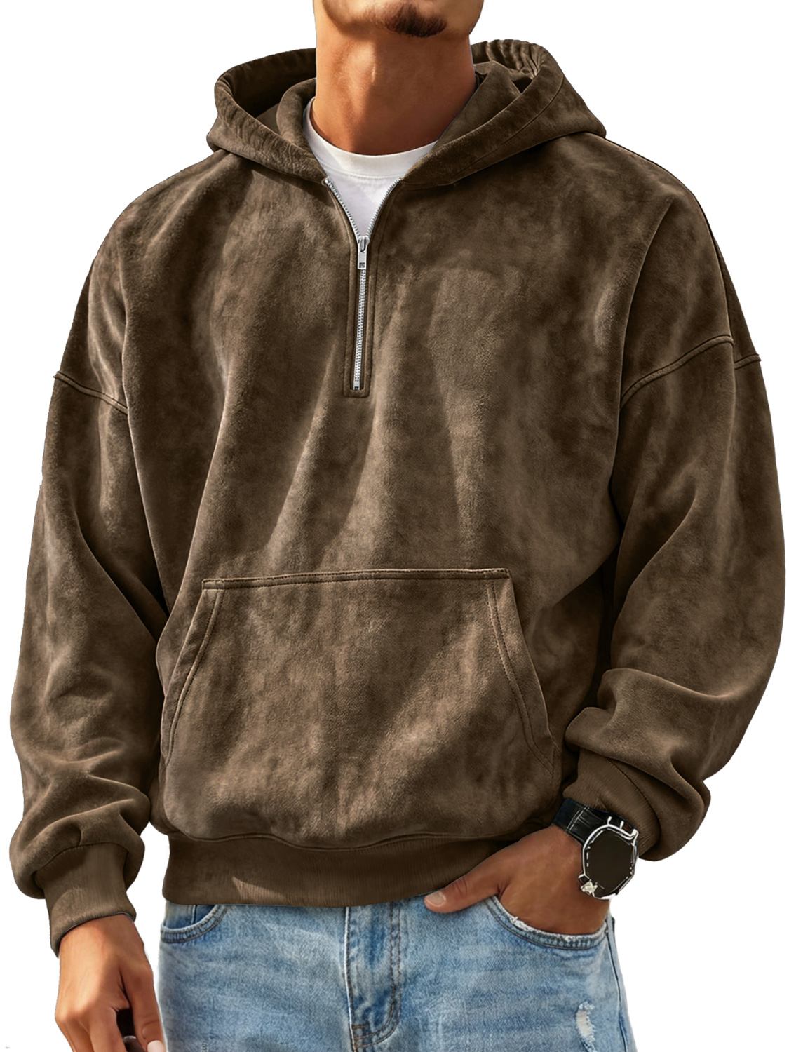 Men's Retro Suede Casual Zip-Up Hooded Sweatshirt