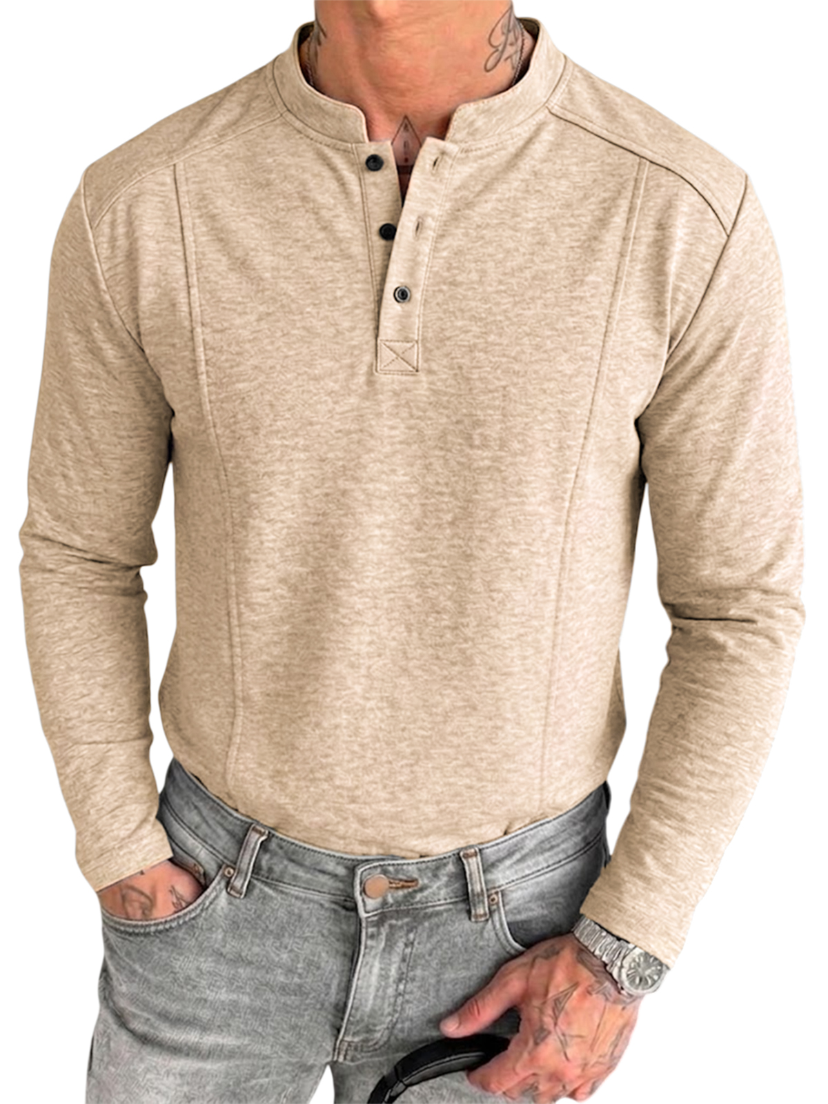 Men's Retro Textured Deconstructed Long-Sleeve Pullover Henley Shirt
