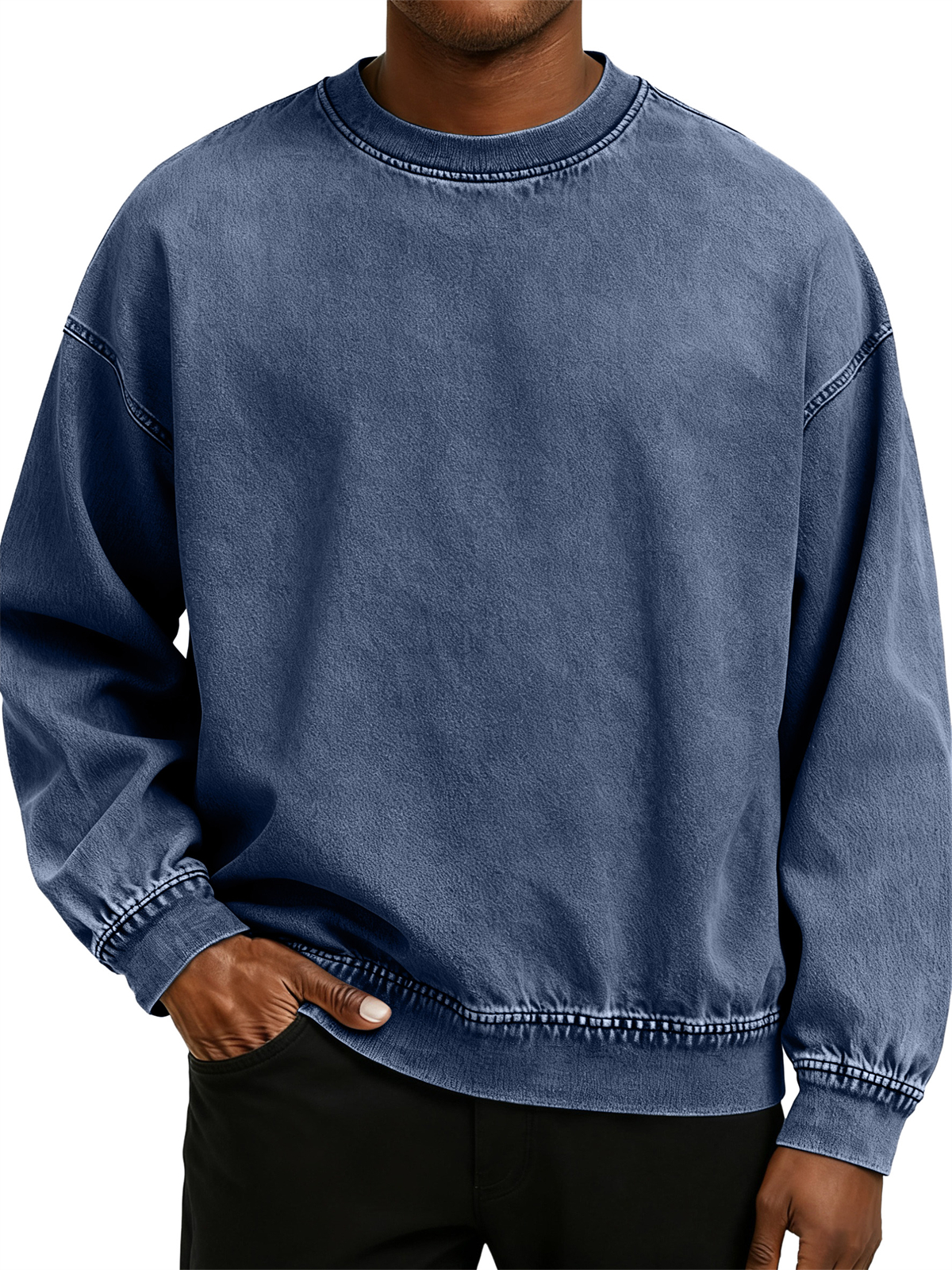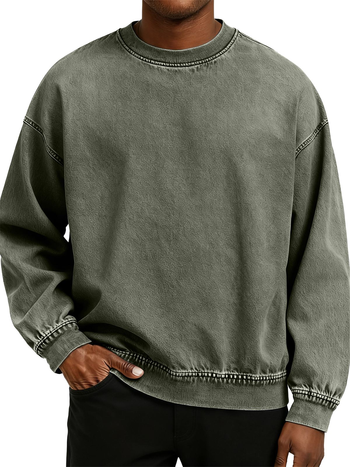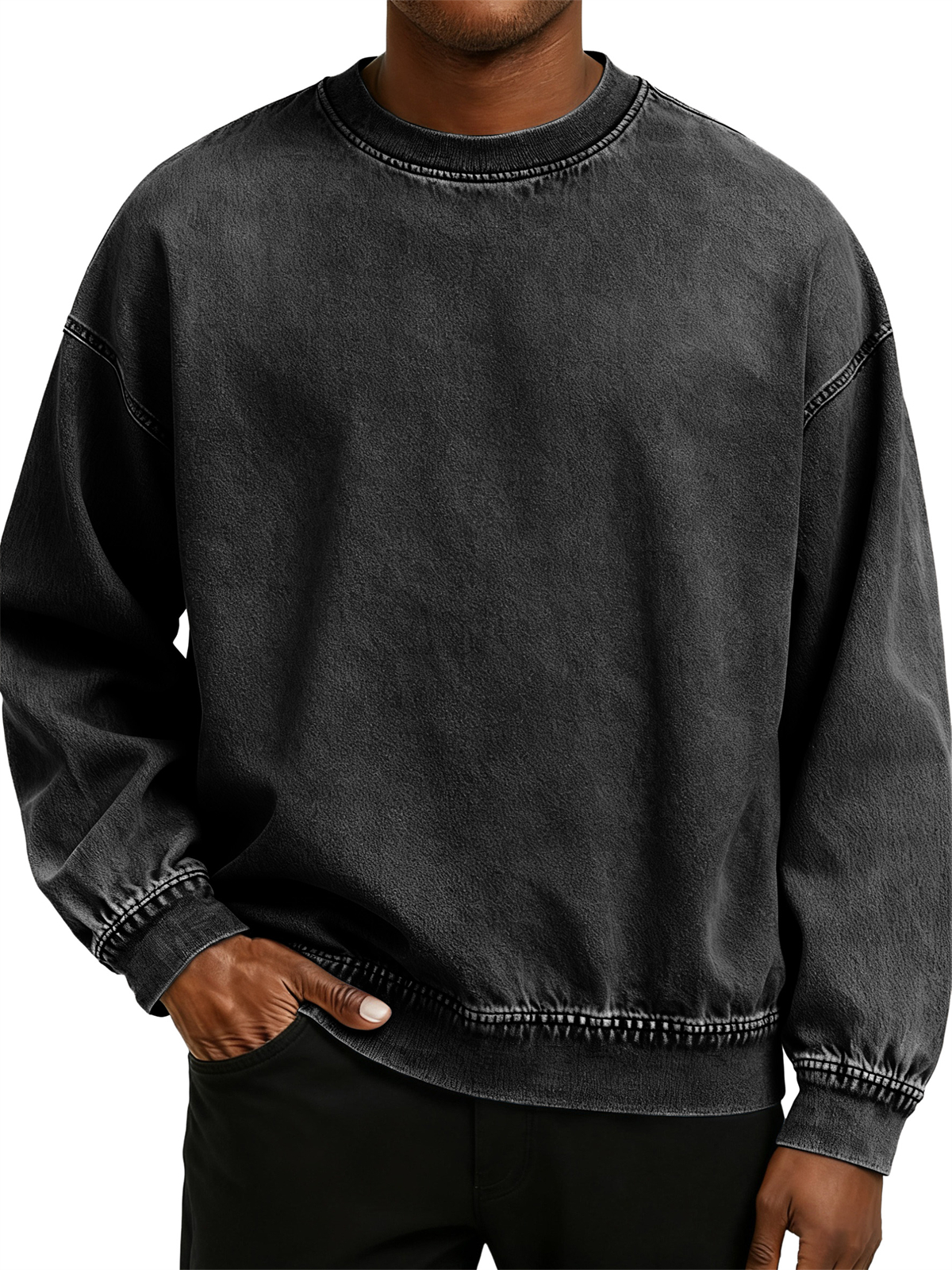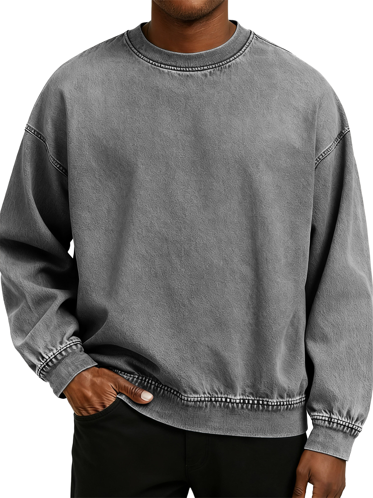 Men's Retro Washed Distressed Cotton Crew Neck Long Sleeve Sweatshirt